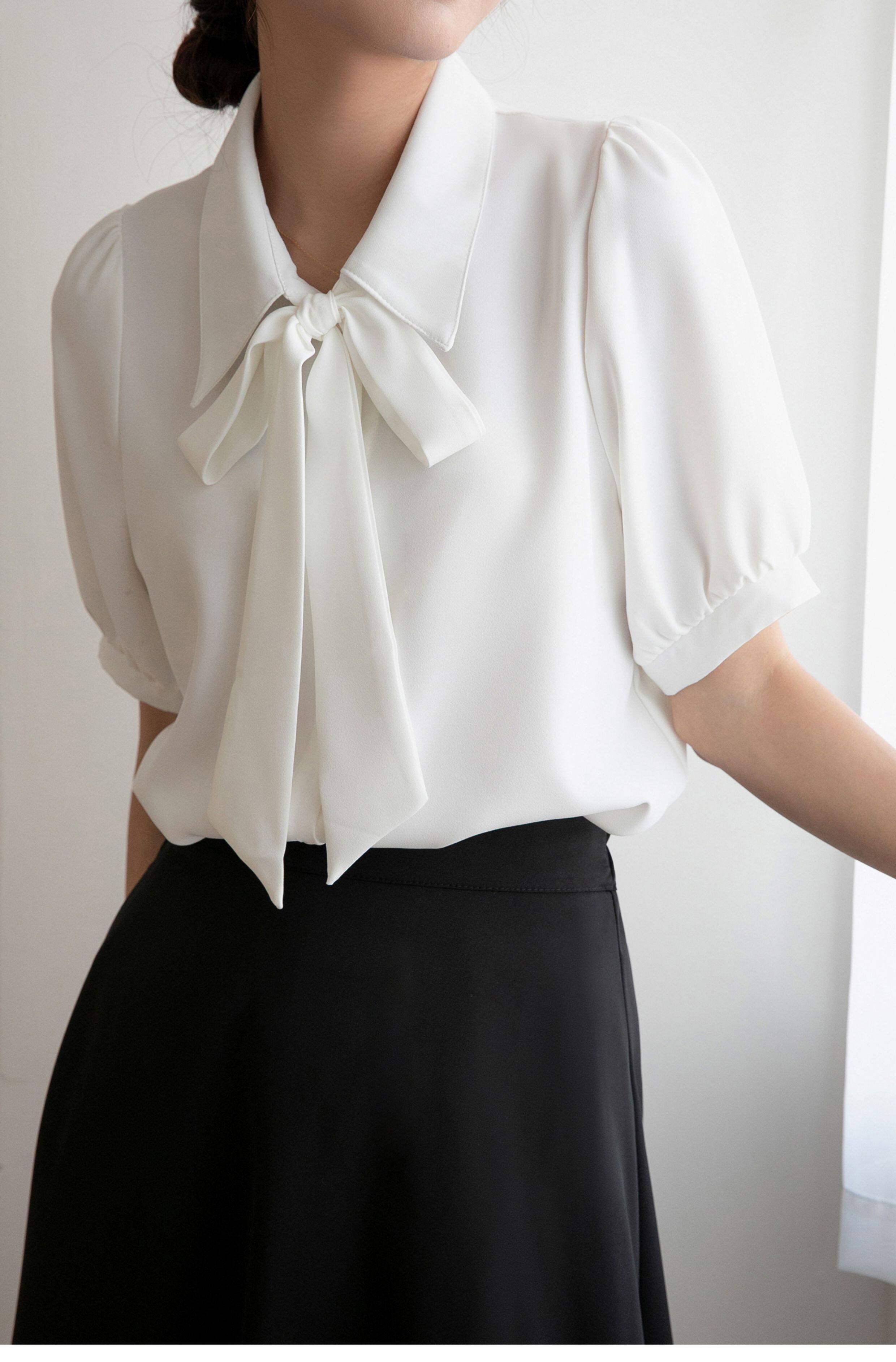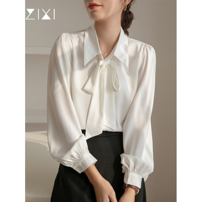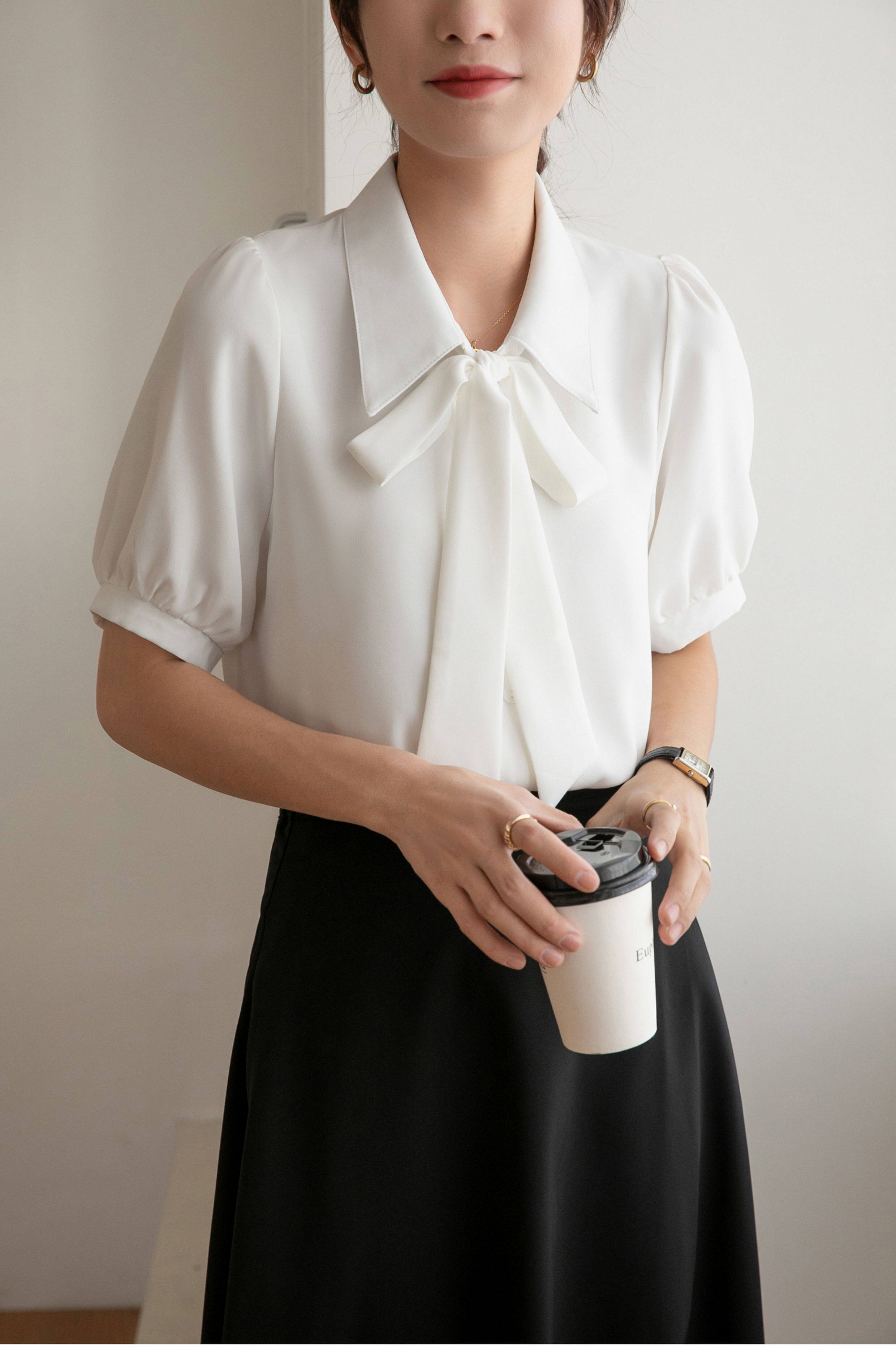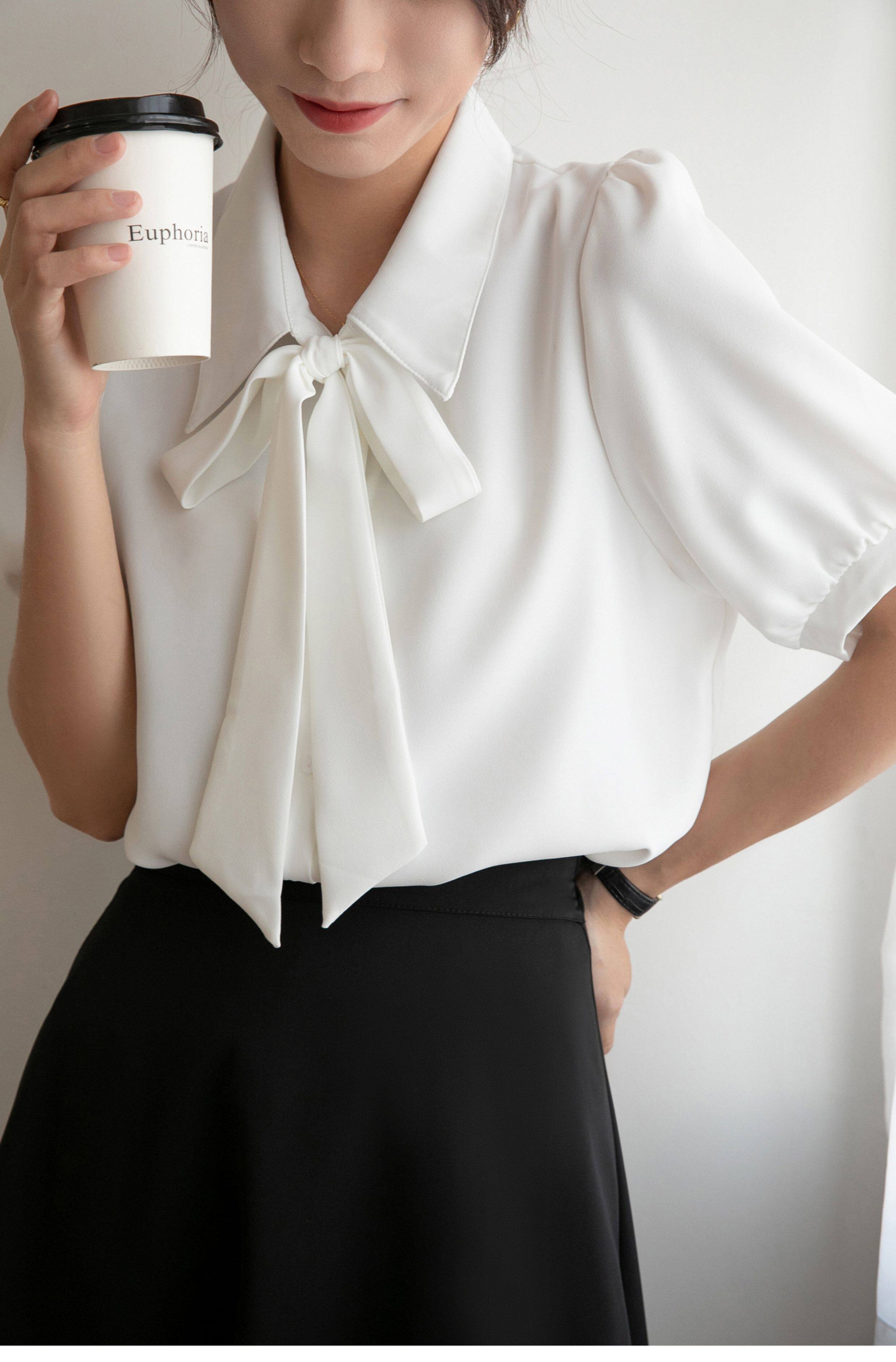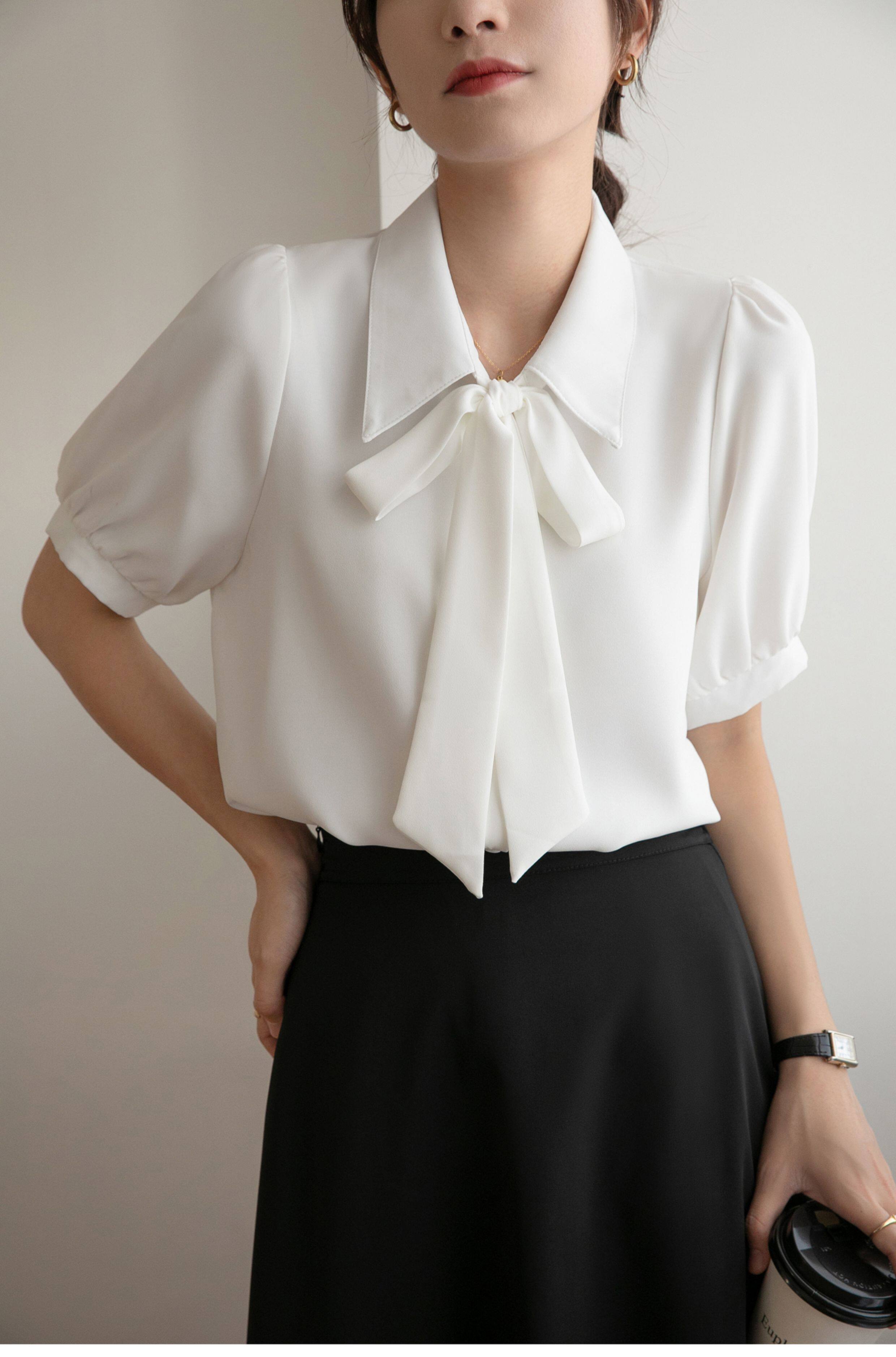 雪紡蝴蝶結襯衫女輕職場高級感長袖職業正裝面試白色襯衣上衣通勤