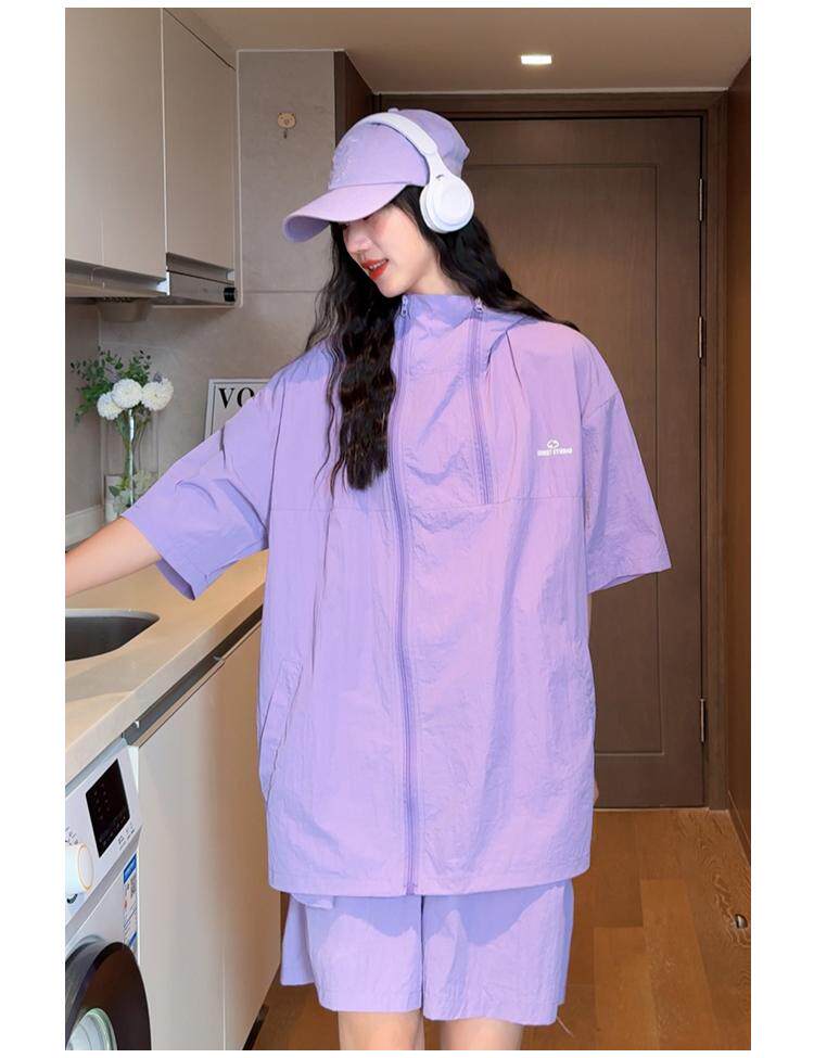 防紫外線輕薄透氣2024新款夏季防曬衣女運動套裝女寬鬆情侶三件套