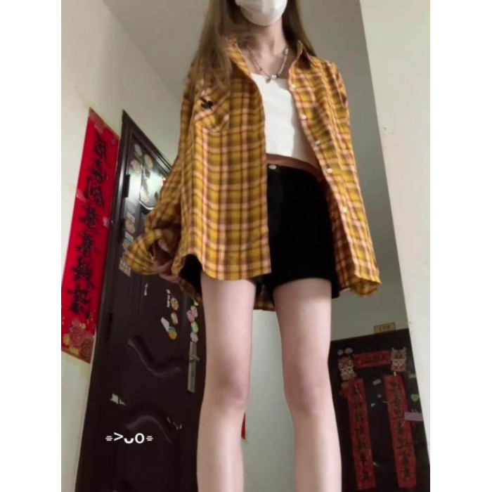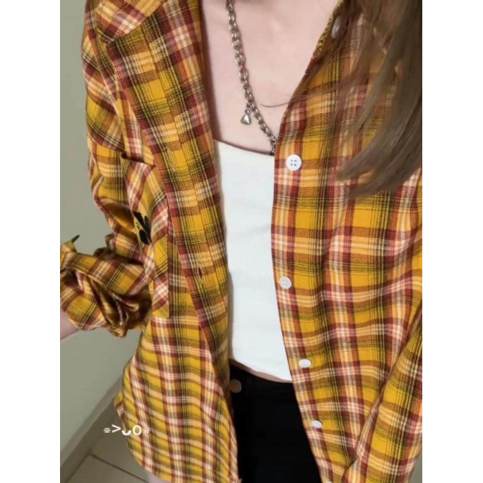 美式復古松弛感撞色格子襯衫外套女春秋學院風休閒百搭別致上衣潮