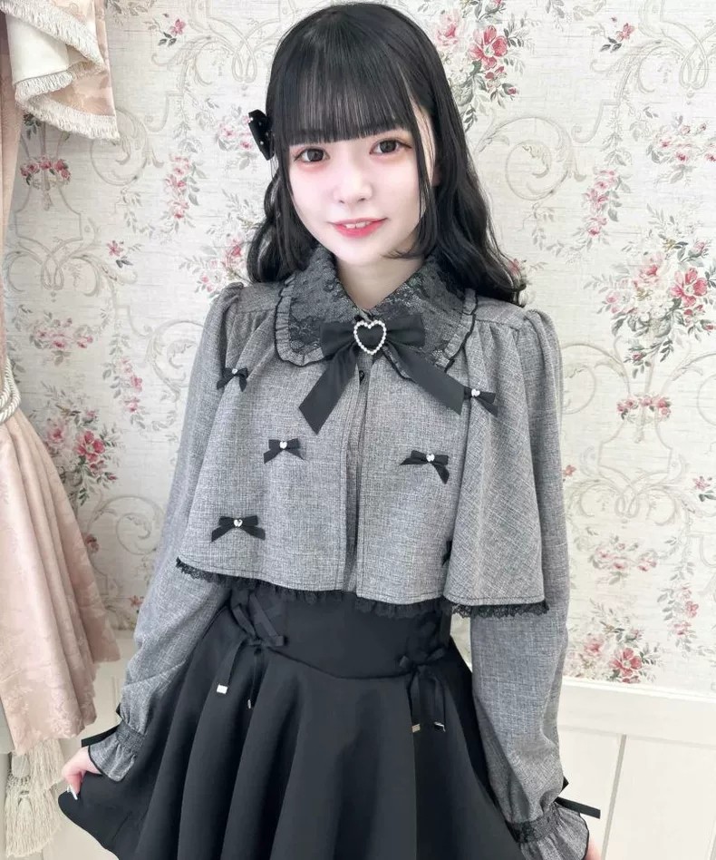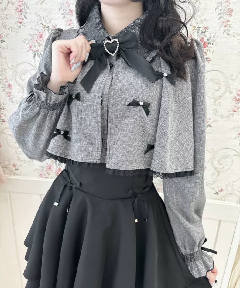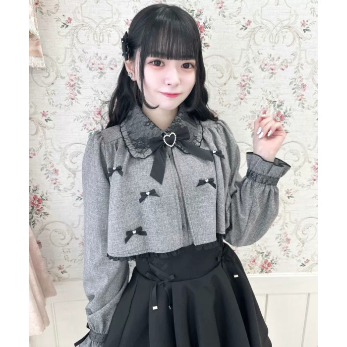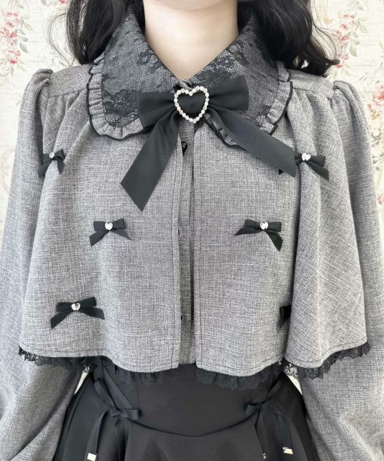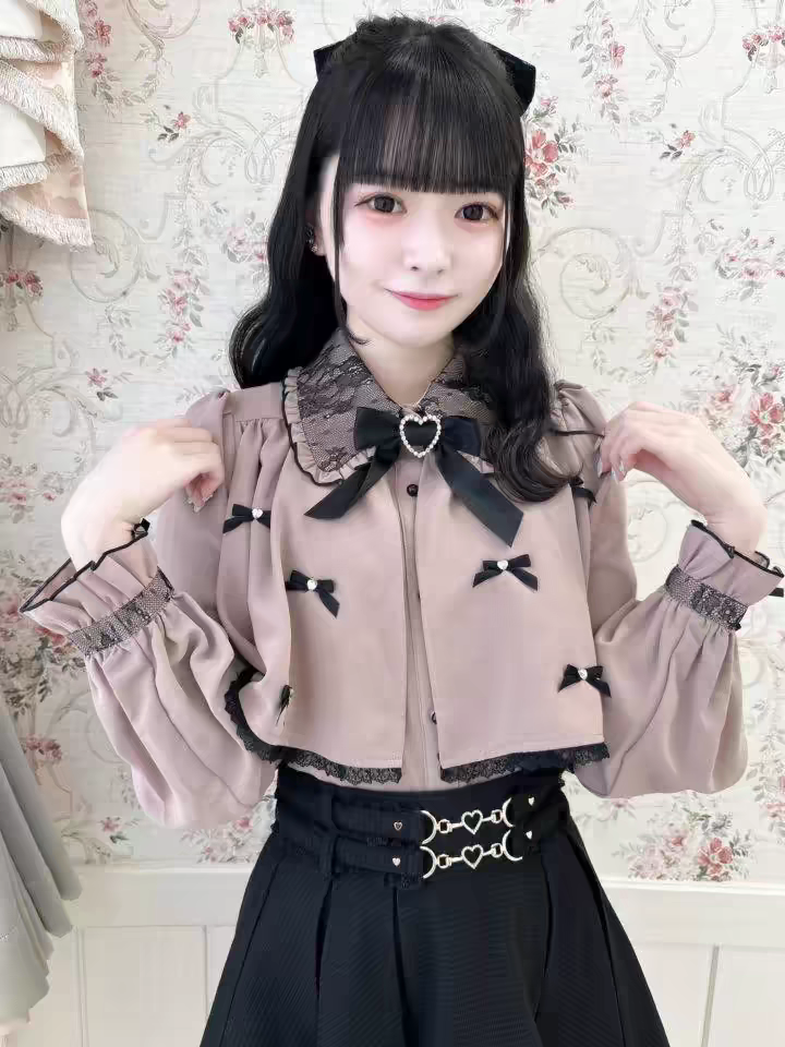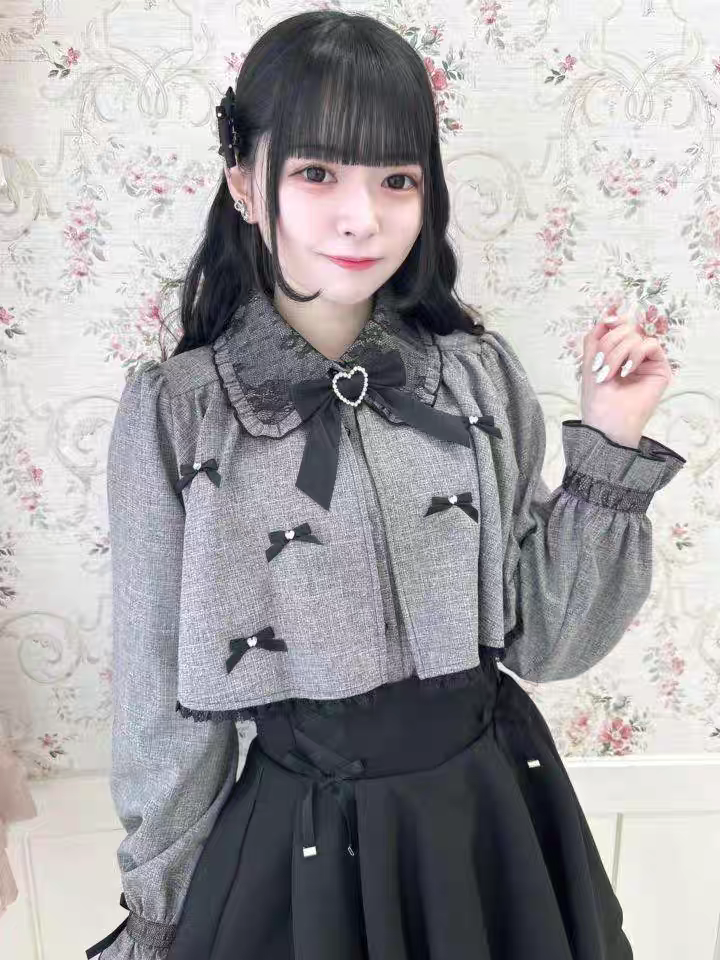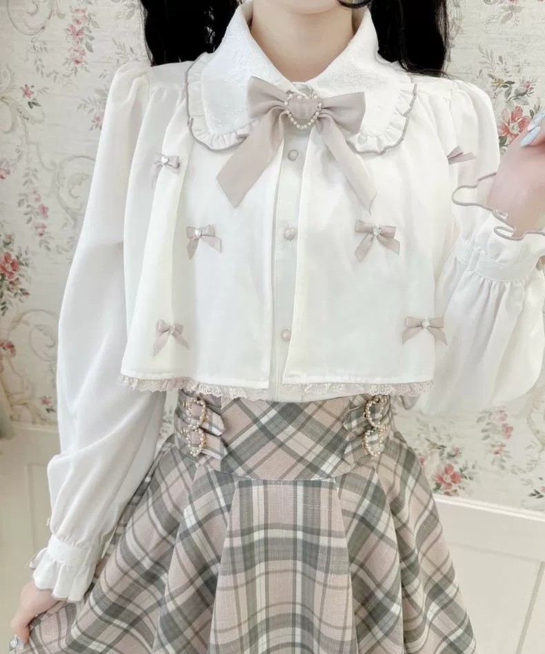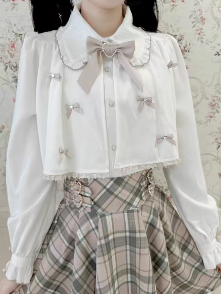 日系量産型新款可愛甜美短鬥篷披肩小領結育克娃娃領拼接1615襯衫