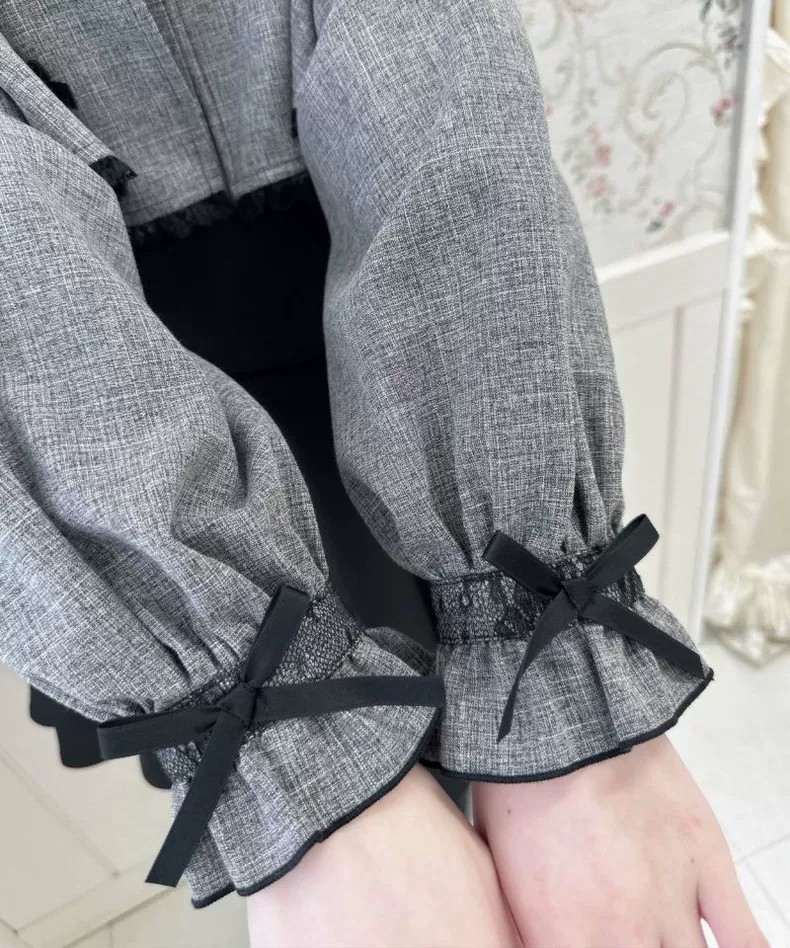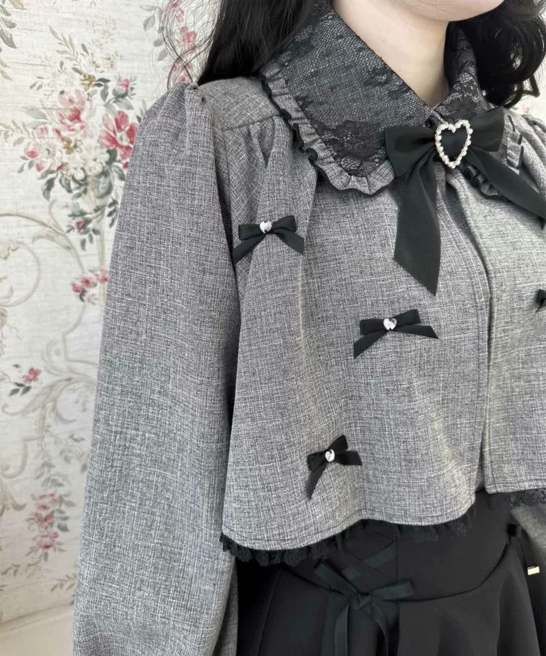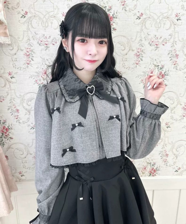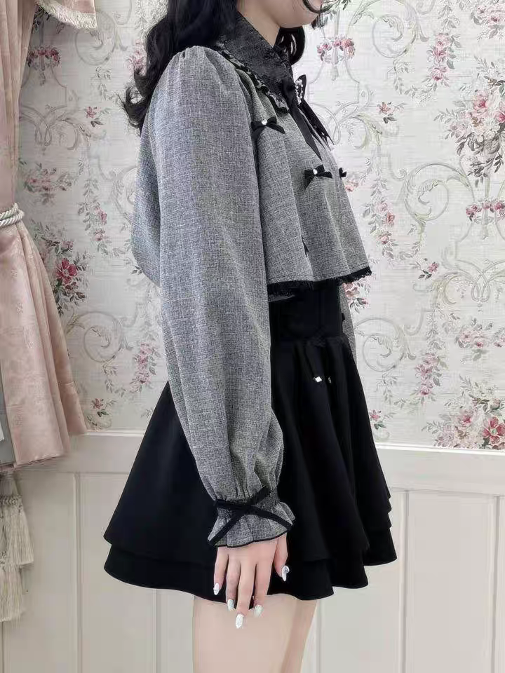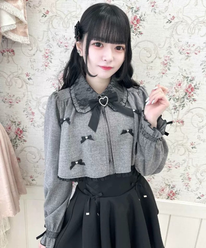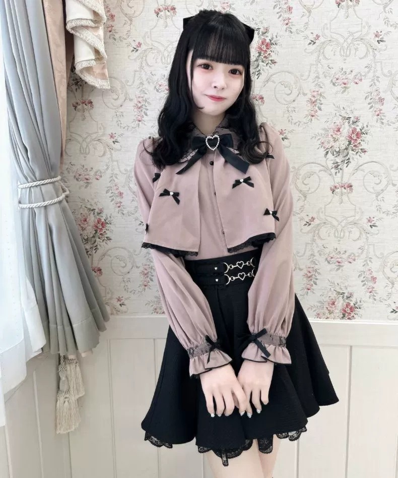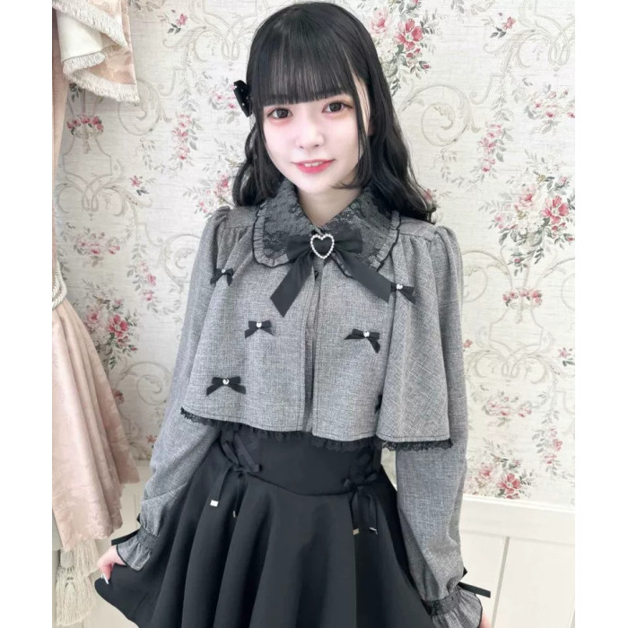 日系量産型新款可愛甜美短鬥篷披肩小領結育克娃娃領拼接1615襯衫