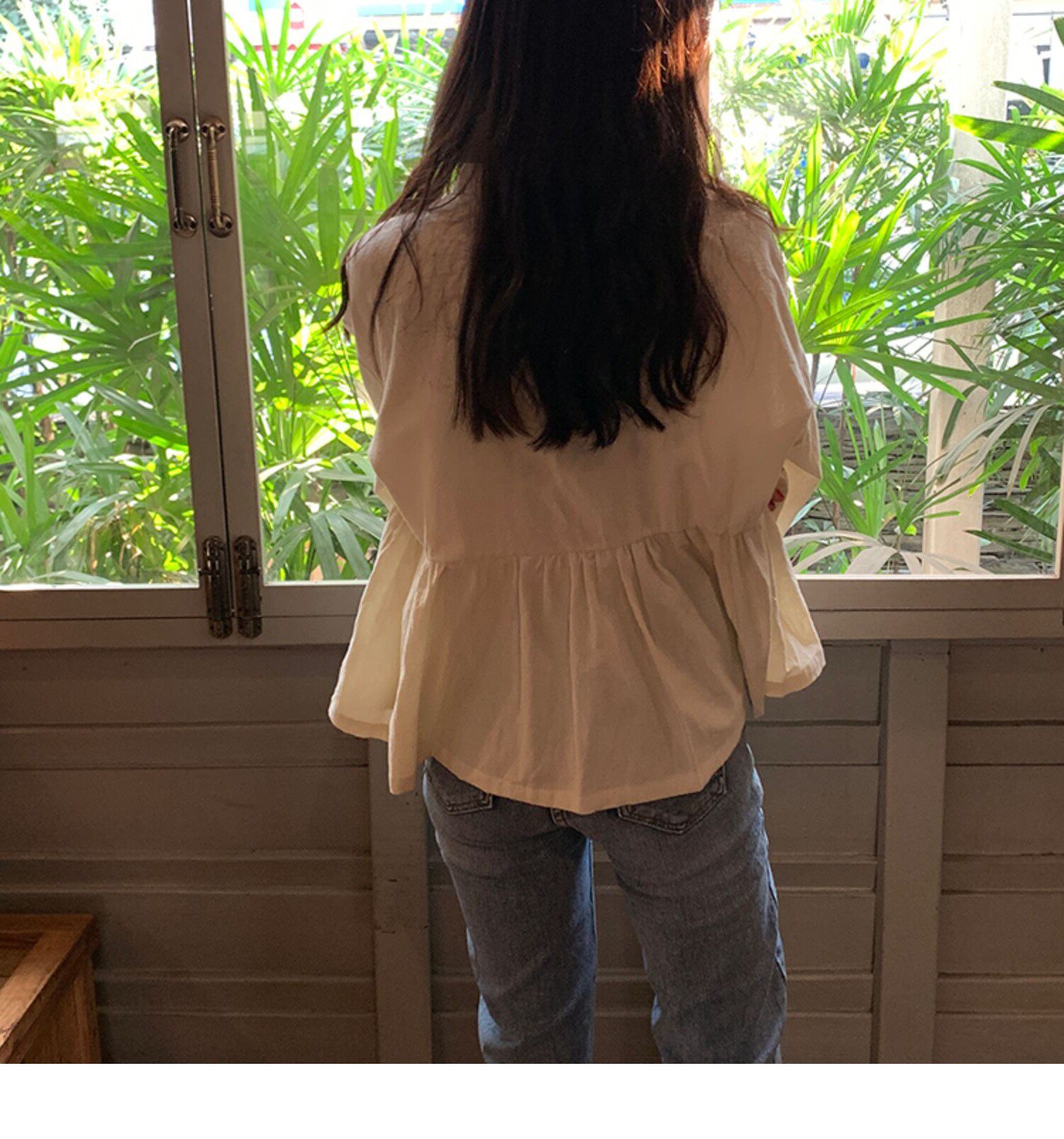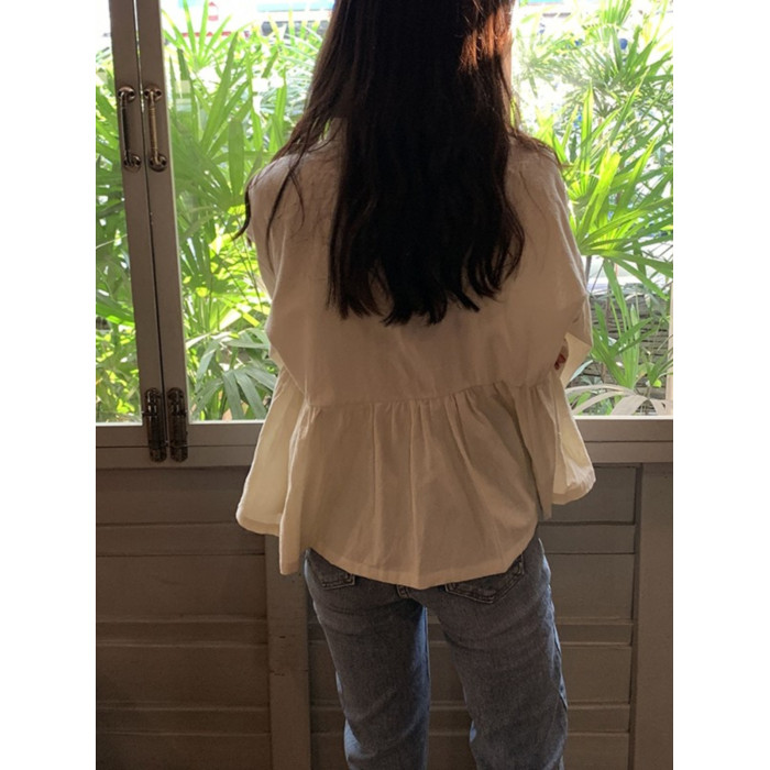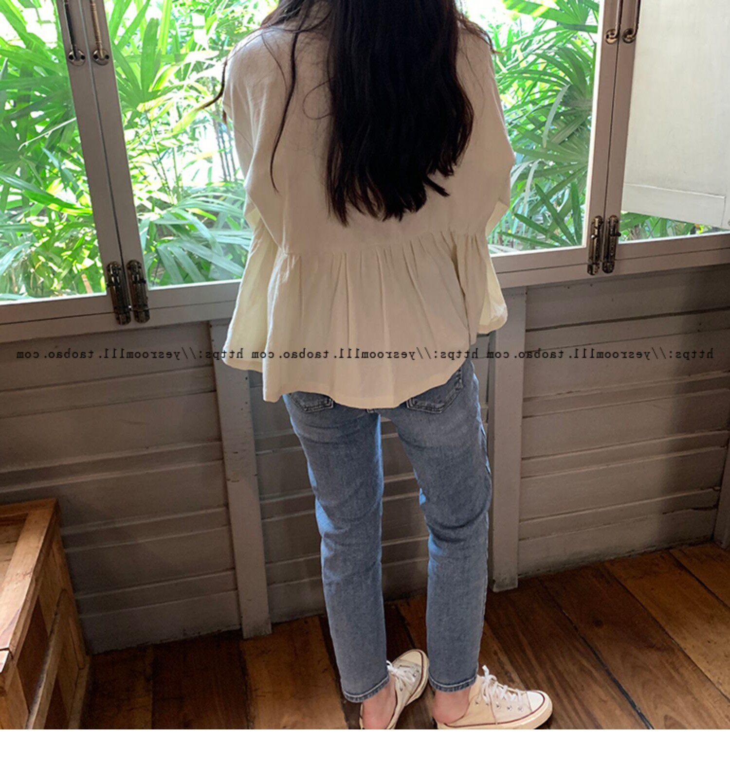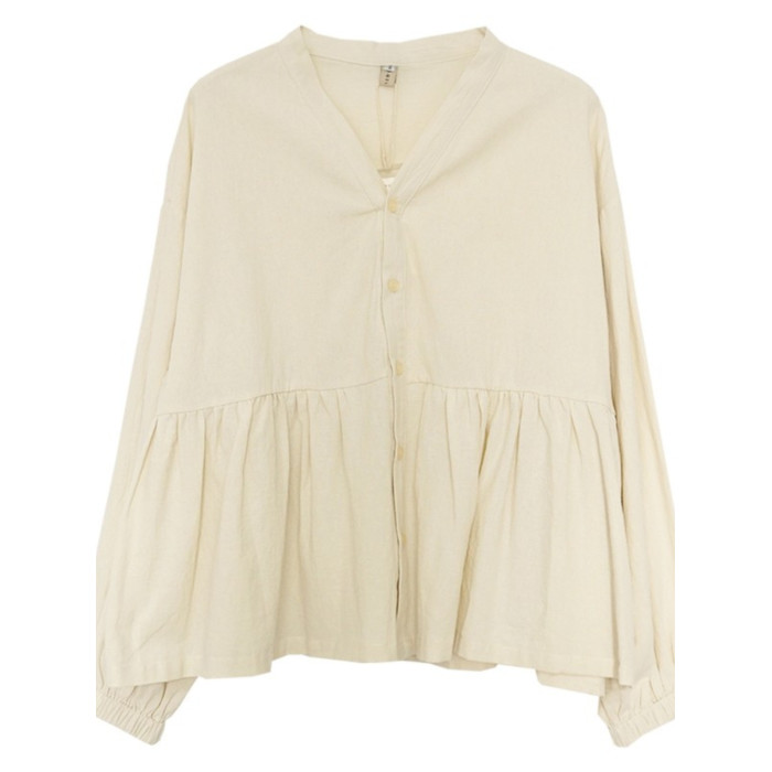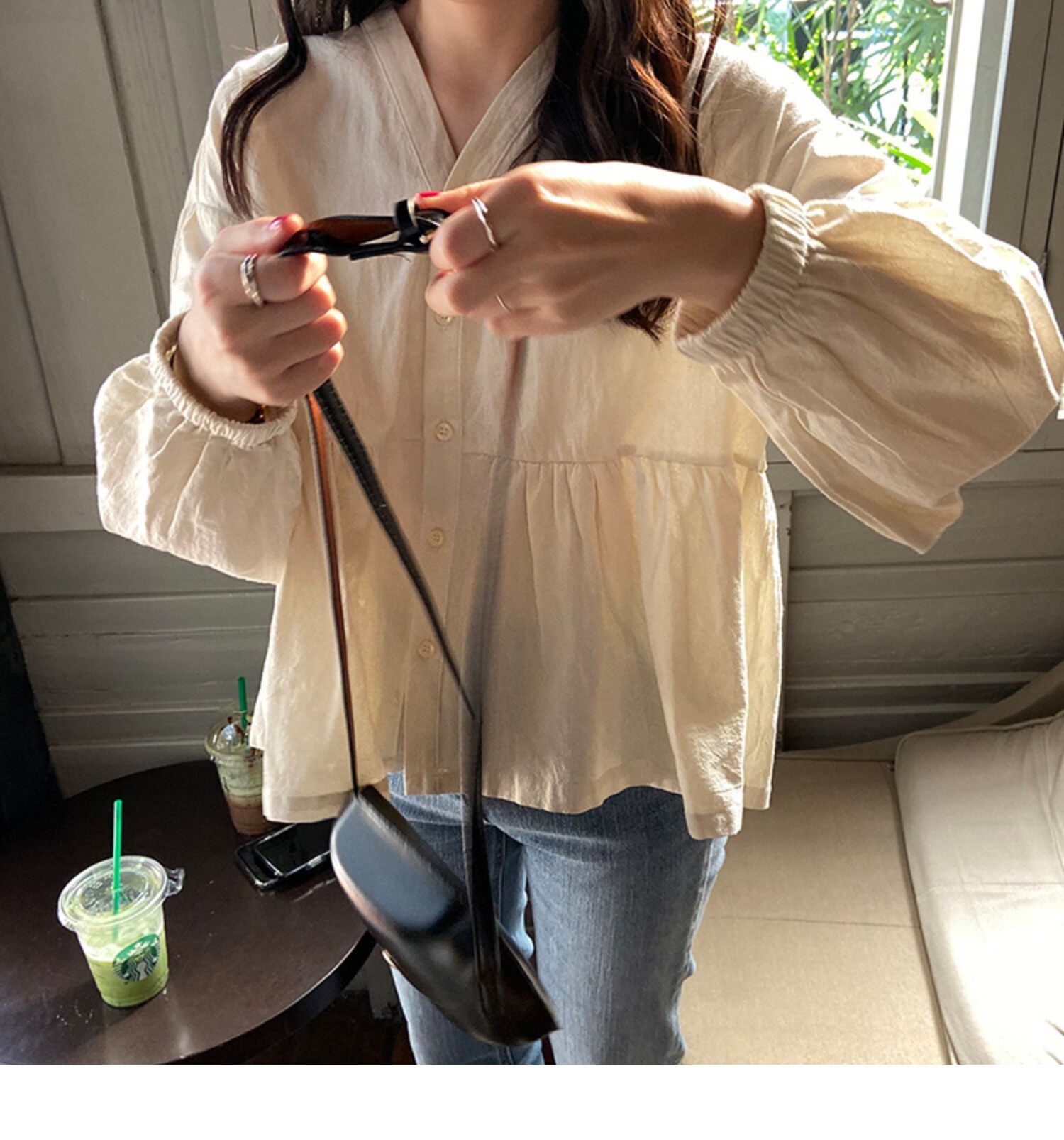 溫柔韓系寬鬆V領杏色襯衫ins百搭設計感2026早春款排釦長袖娃娃衫