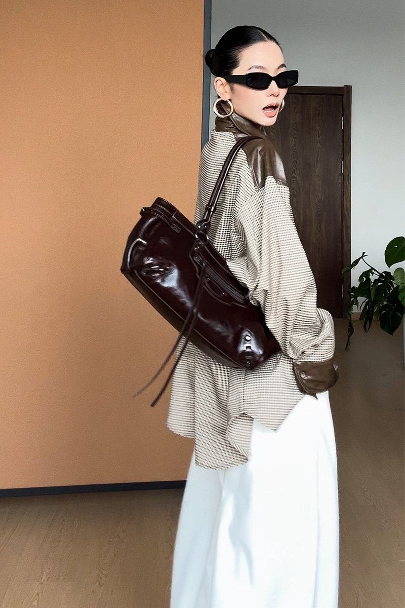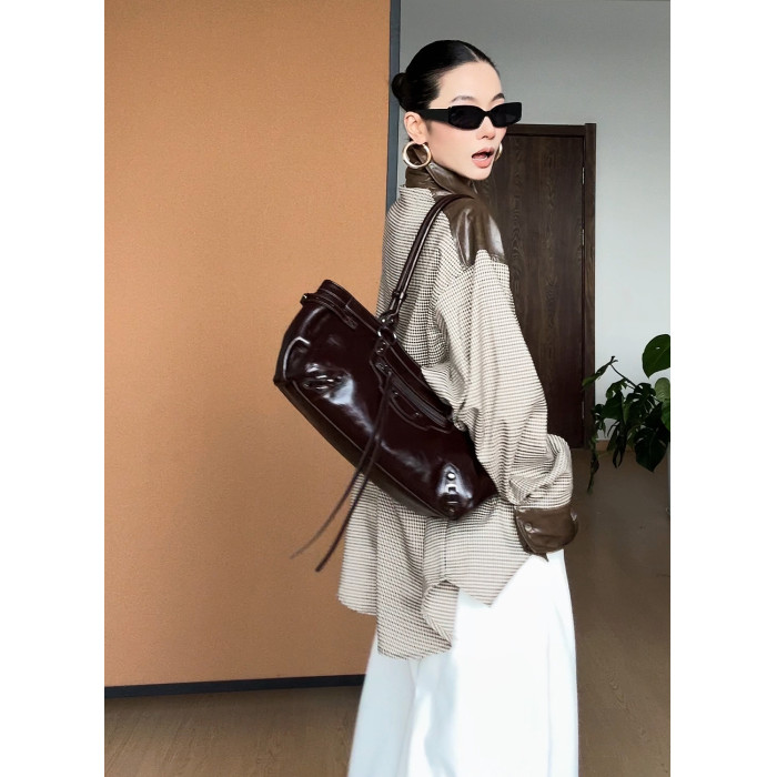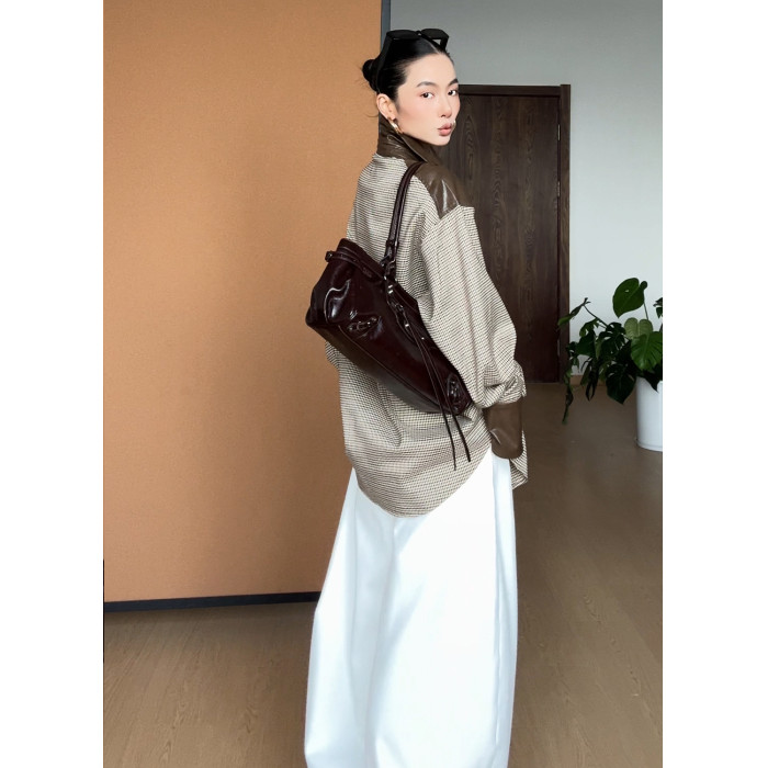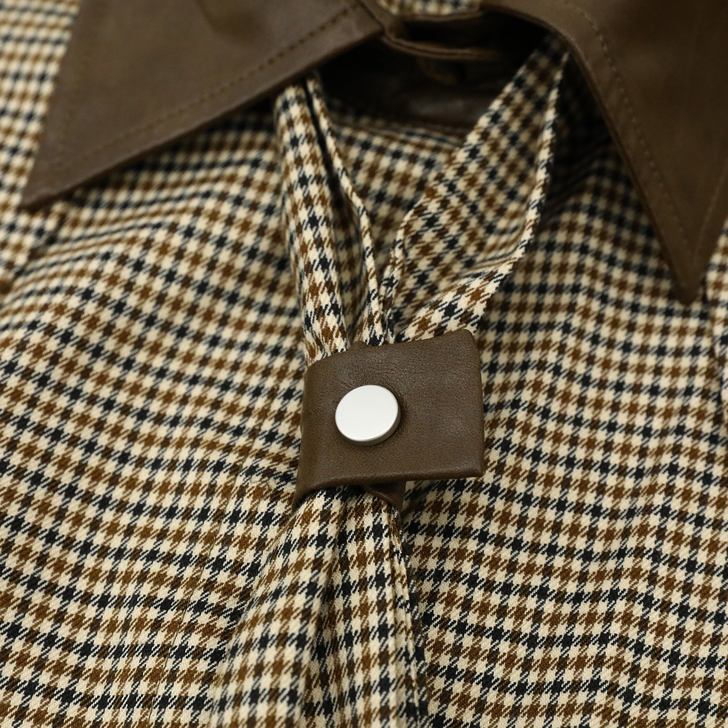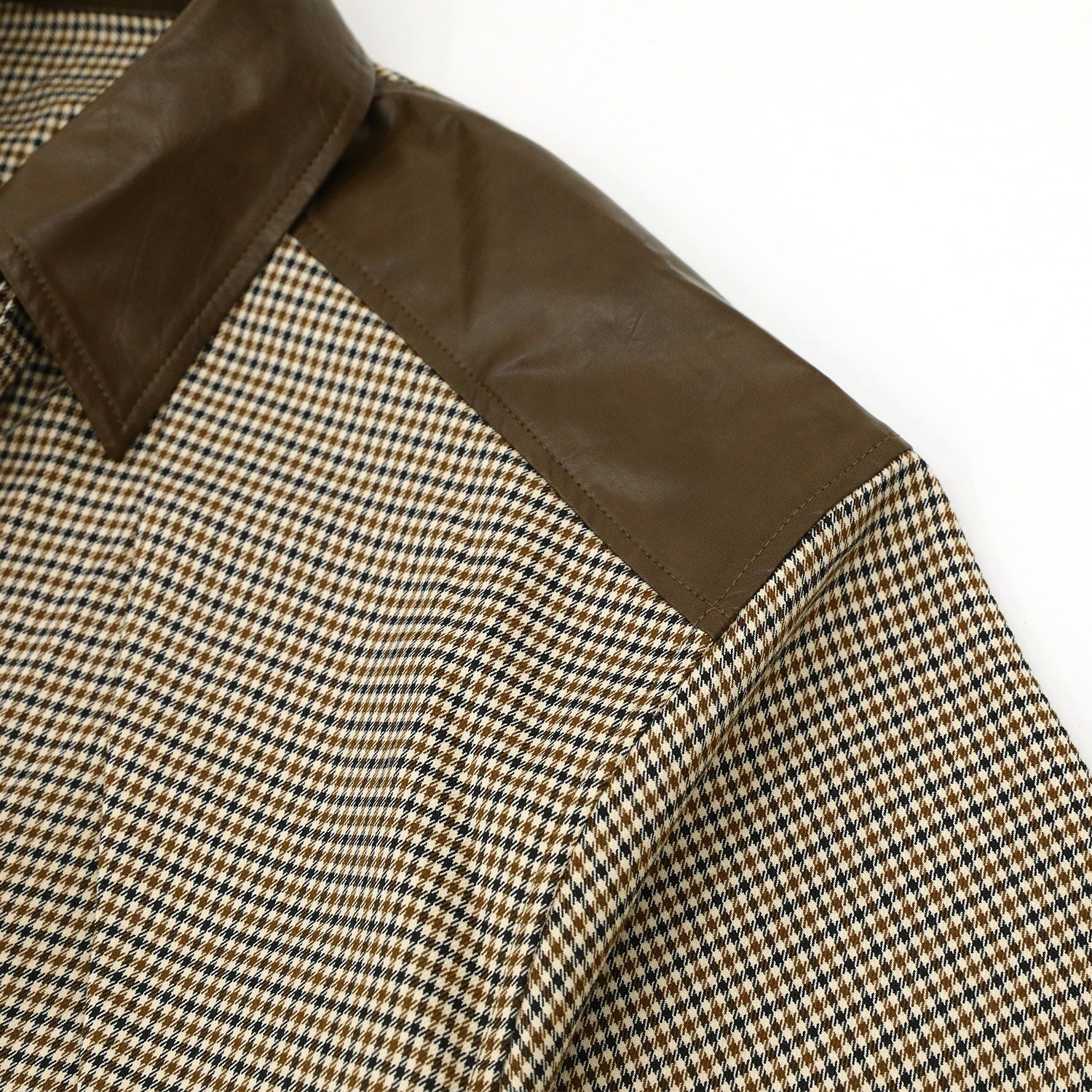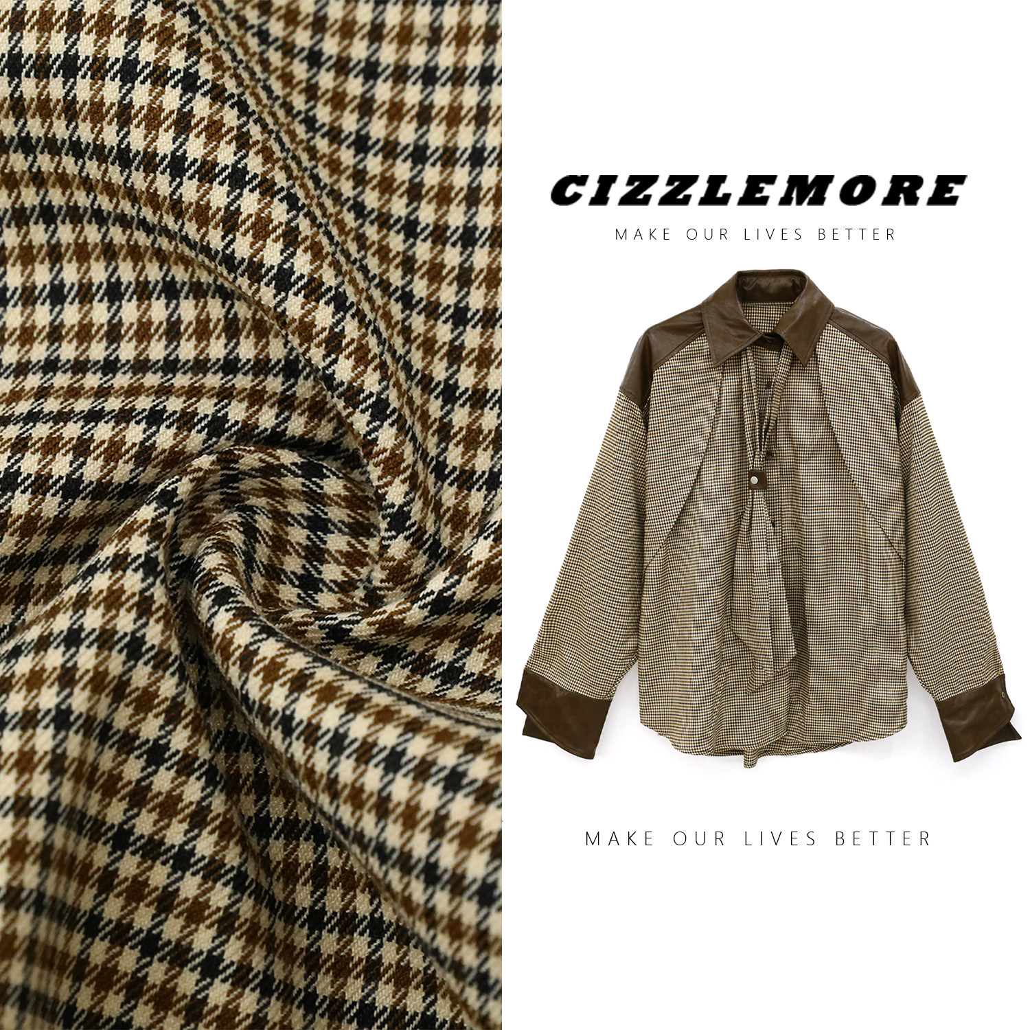 CIZZLEMORE【自由循跡】設計款美拉德撞色拼皮千鳥格領帶式襯衫