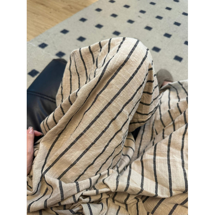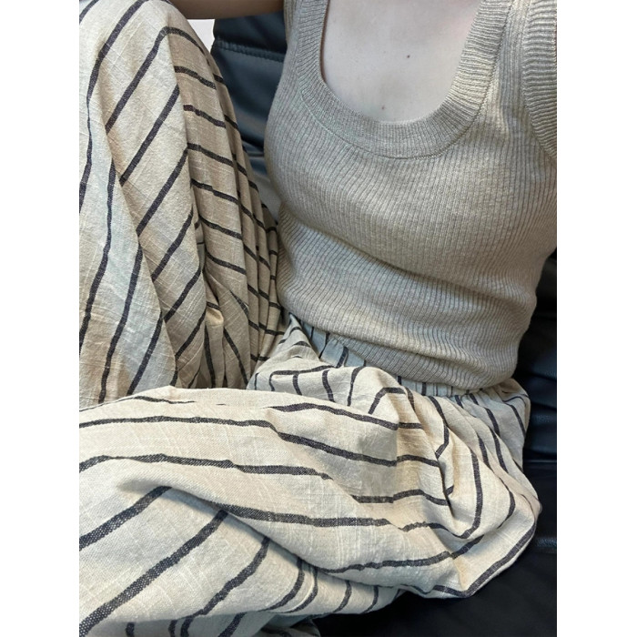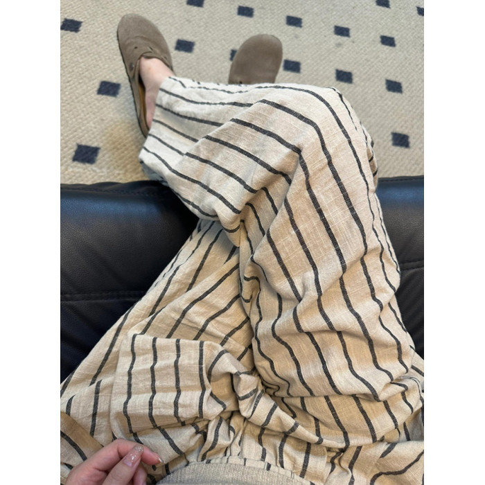 日系棉麻條紋褲女夏季山本褲慵懶休閒松弛感褲子涼涼褲亞麻濶腿褲