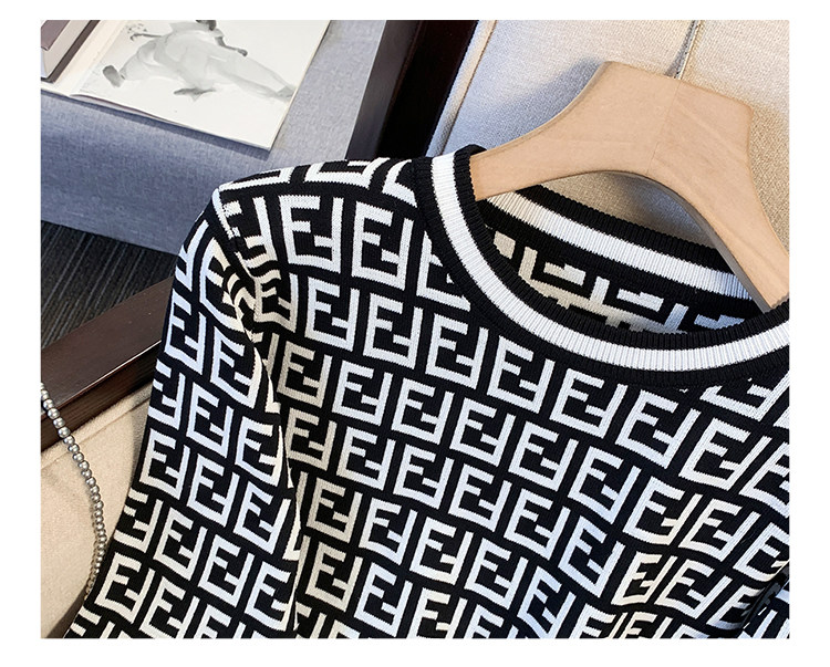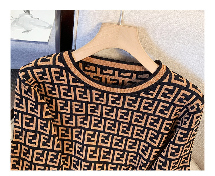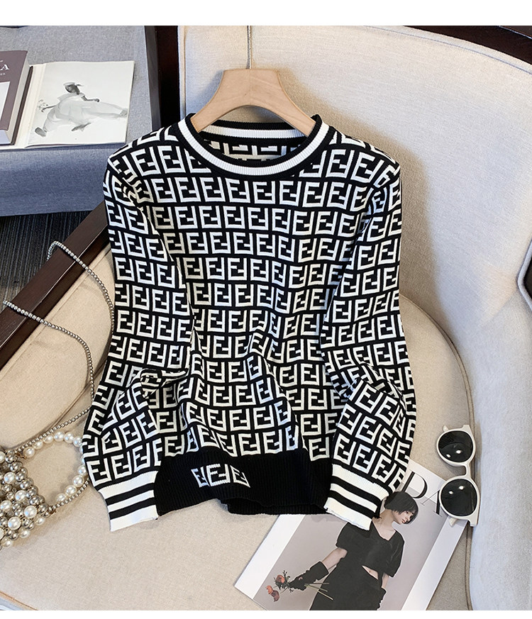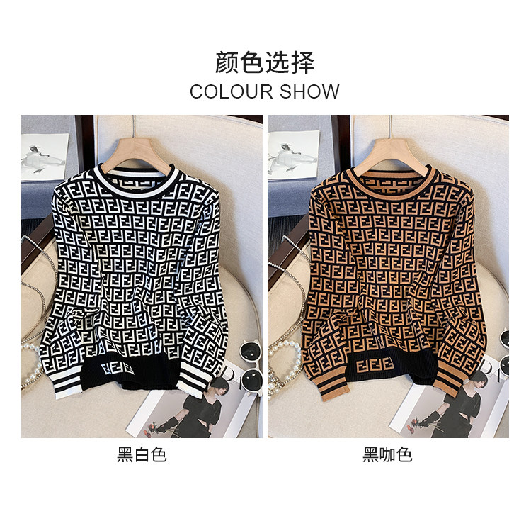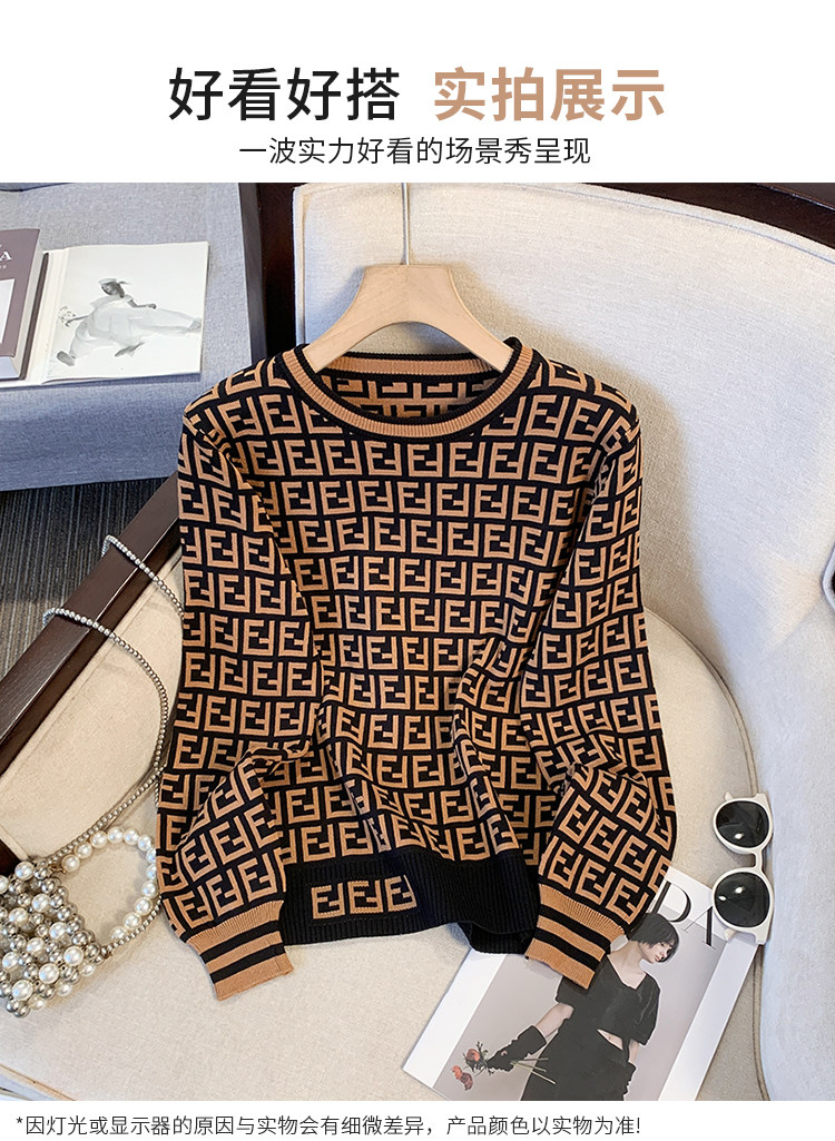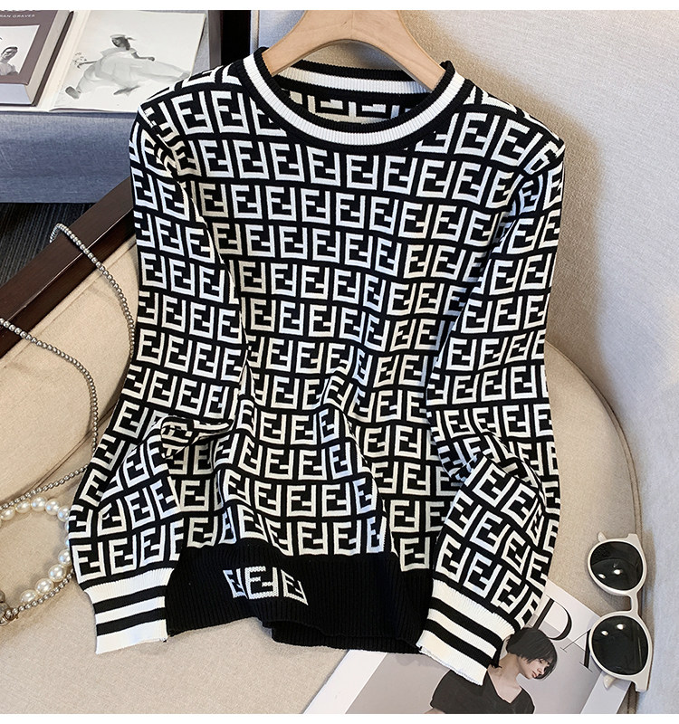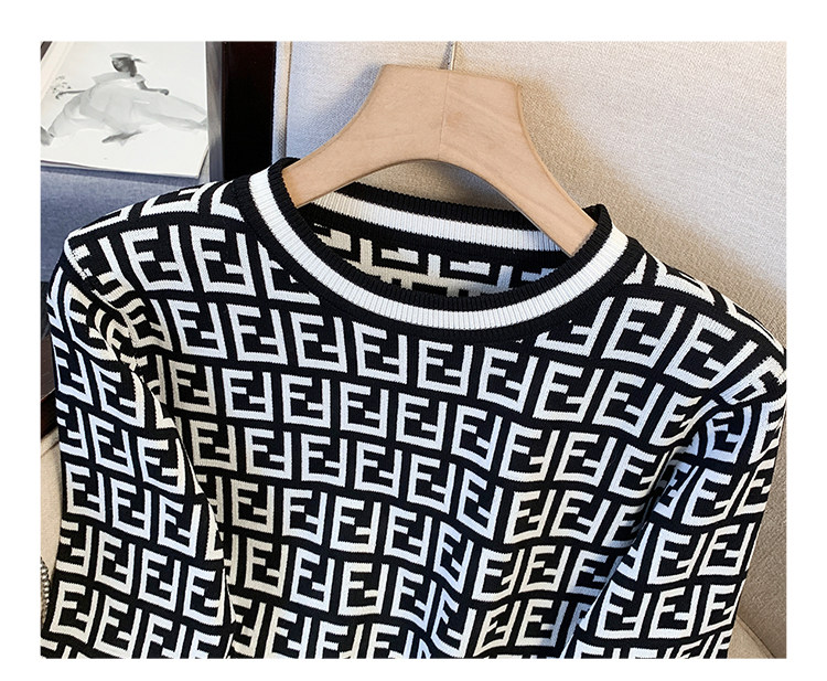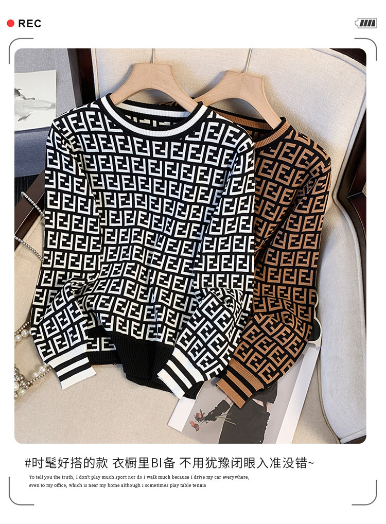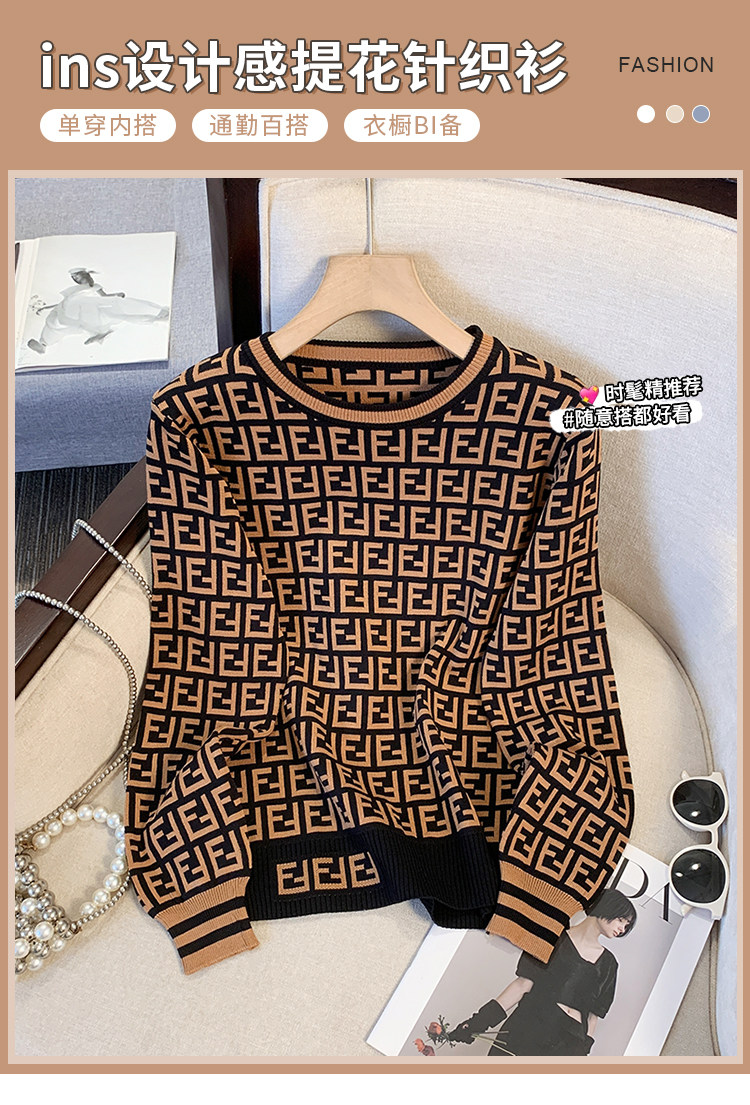 撿漏歐貨撞色提花長袖針織衫女生秋冬內搭圓領輕奢高級感打底毛衣