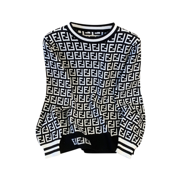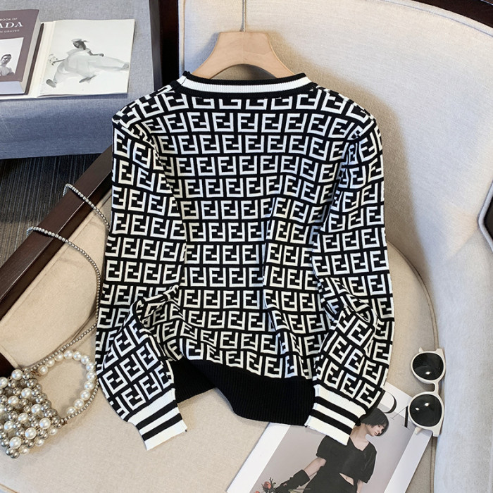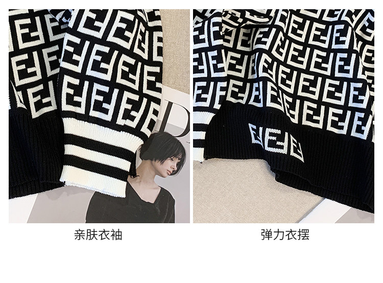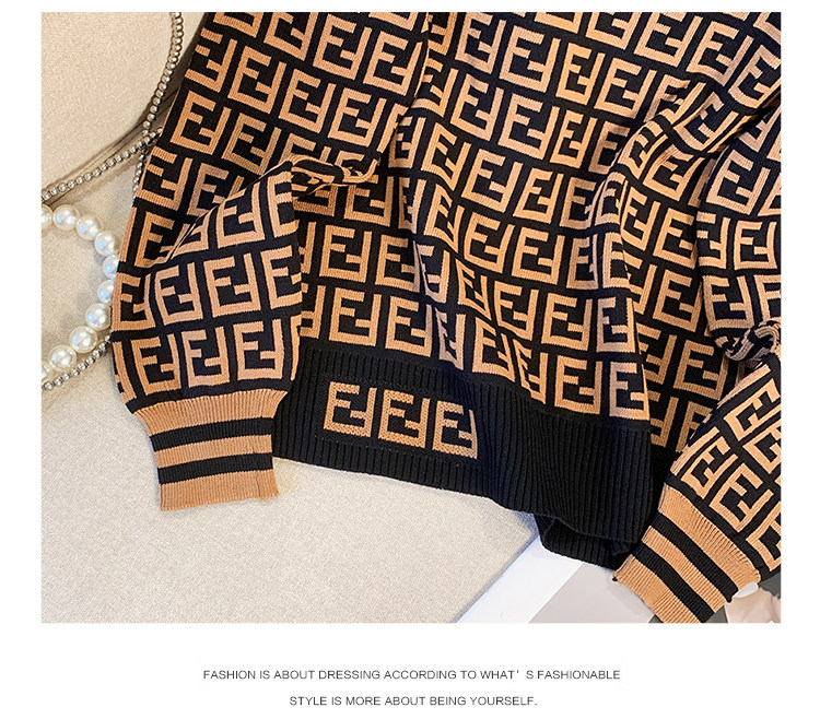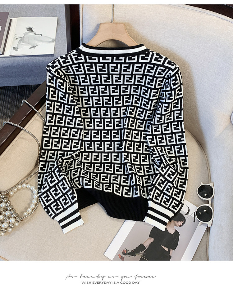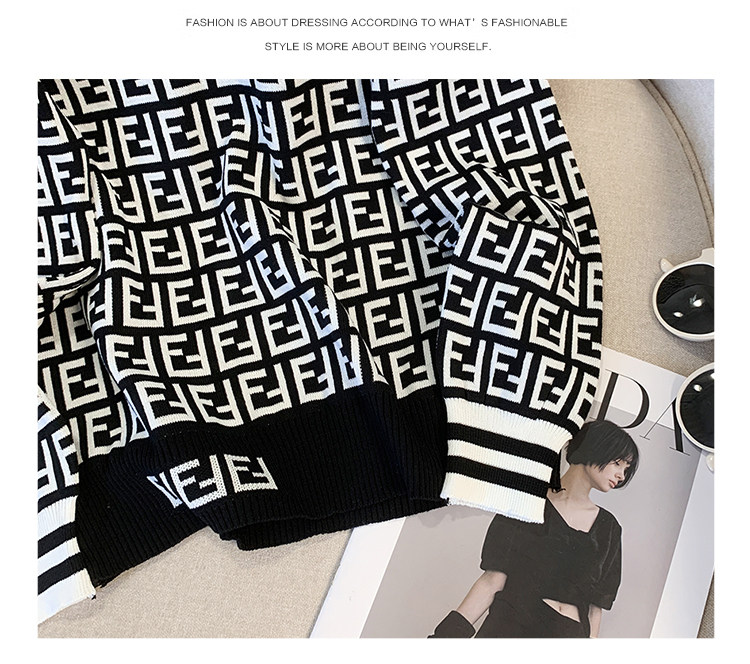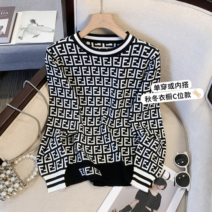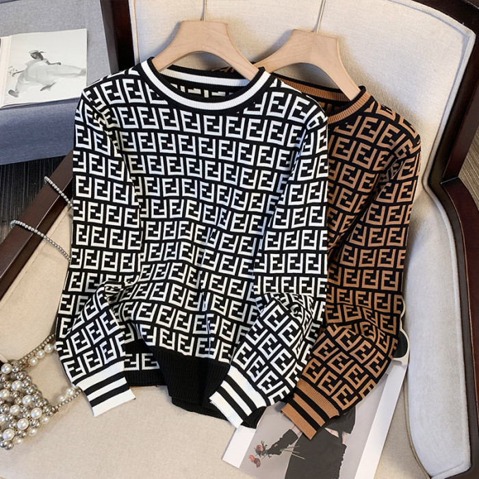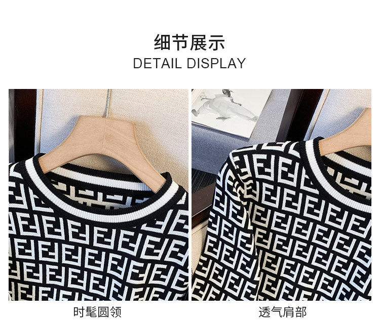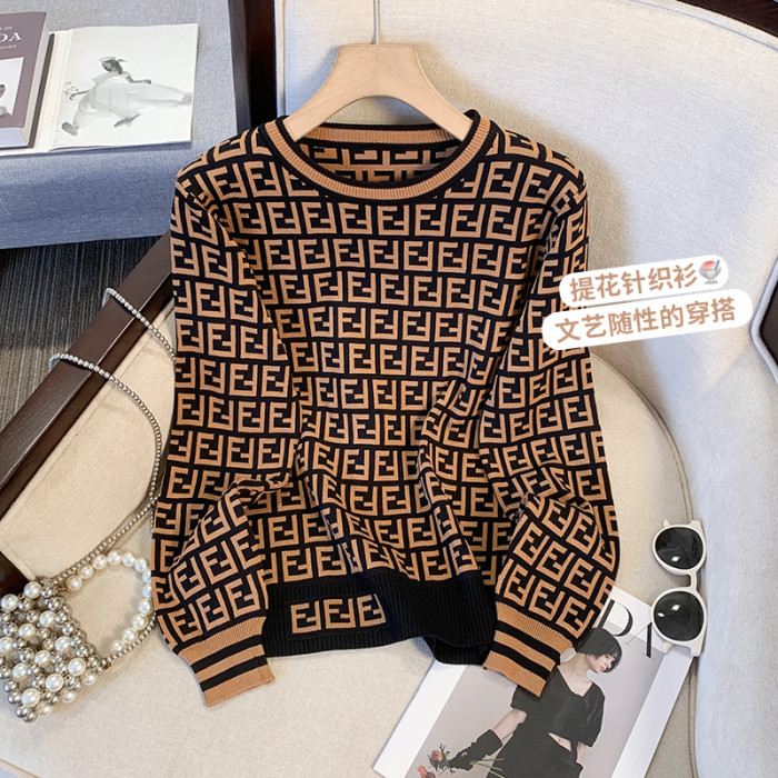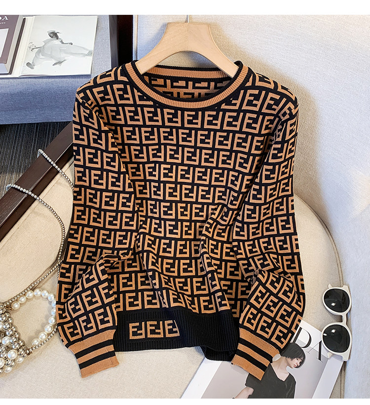 撿漏歐貨撞色提花長袖針織衫女生秋冬內搭圓領輕奢高級感打底毛衣
