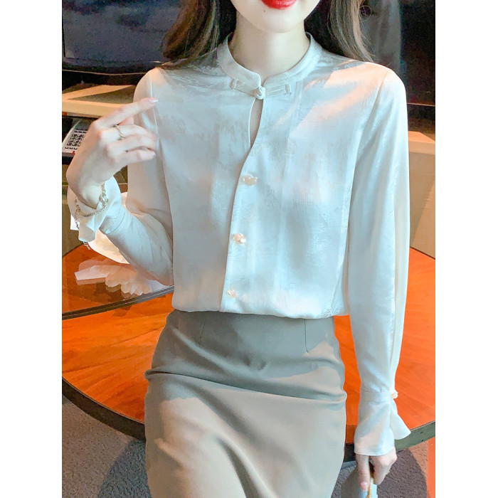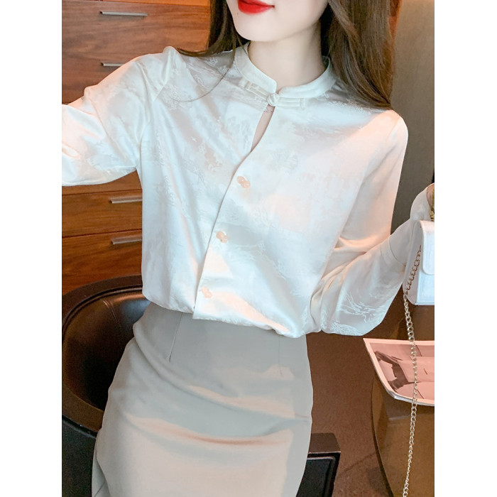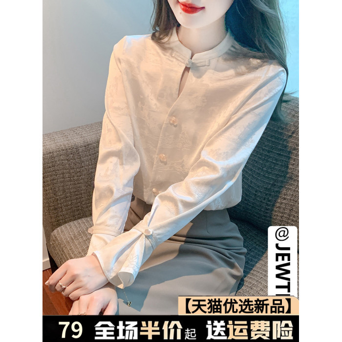 國風旗袍新中式上衣女裝春秋2025年新款時尚爆款歐貨雪紡襯衫襯衣