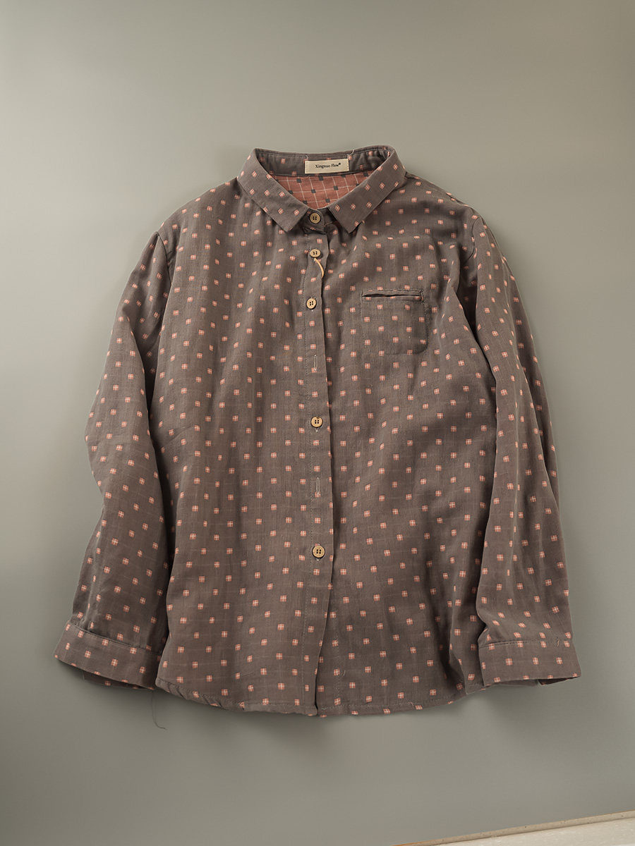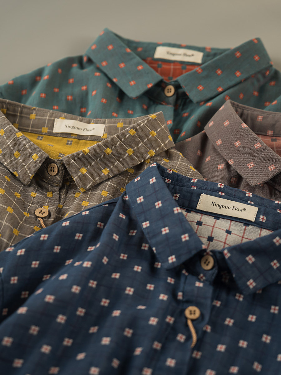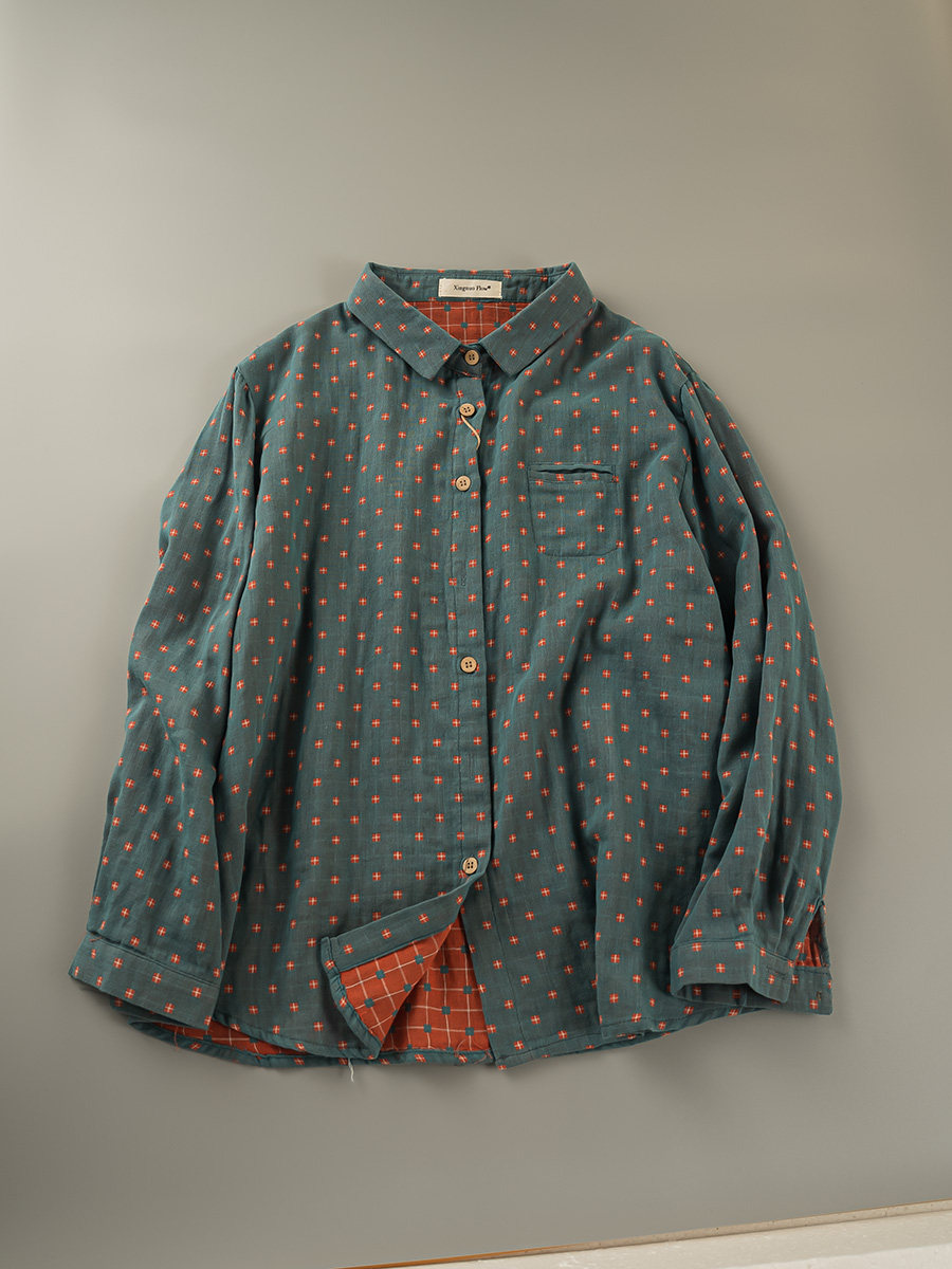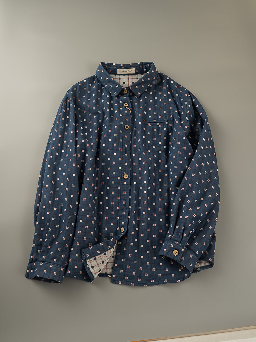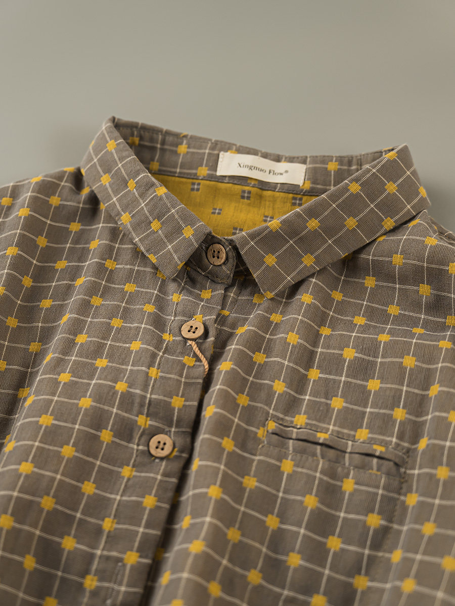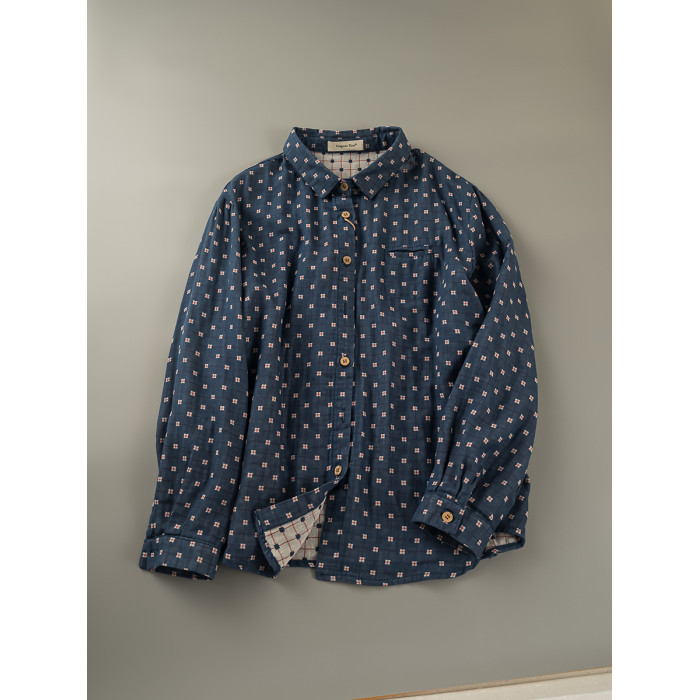 2023秋季新款韓版寬鬆休閒百搭文藝格紋雙層棉紗長袖襯衫女上衣潮