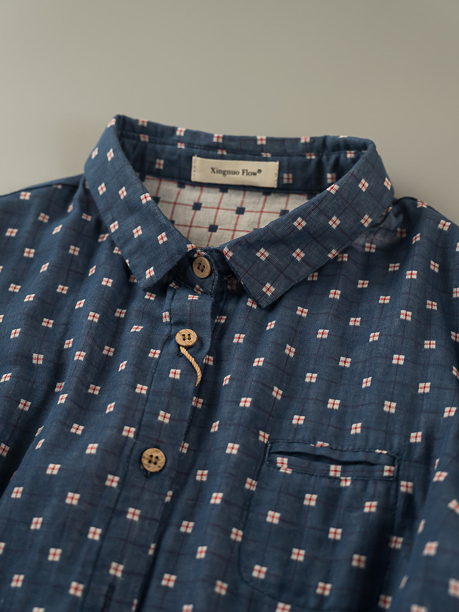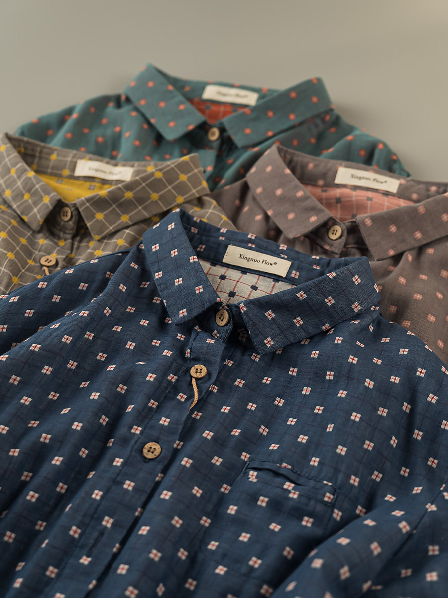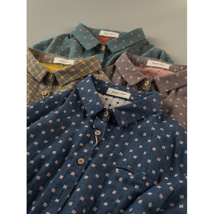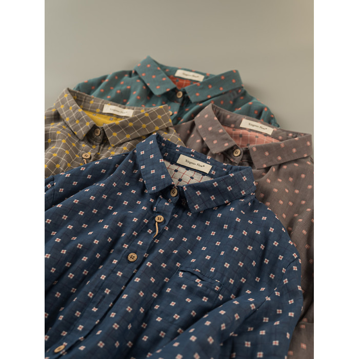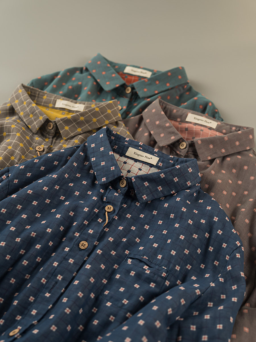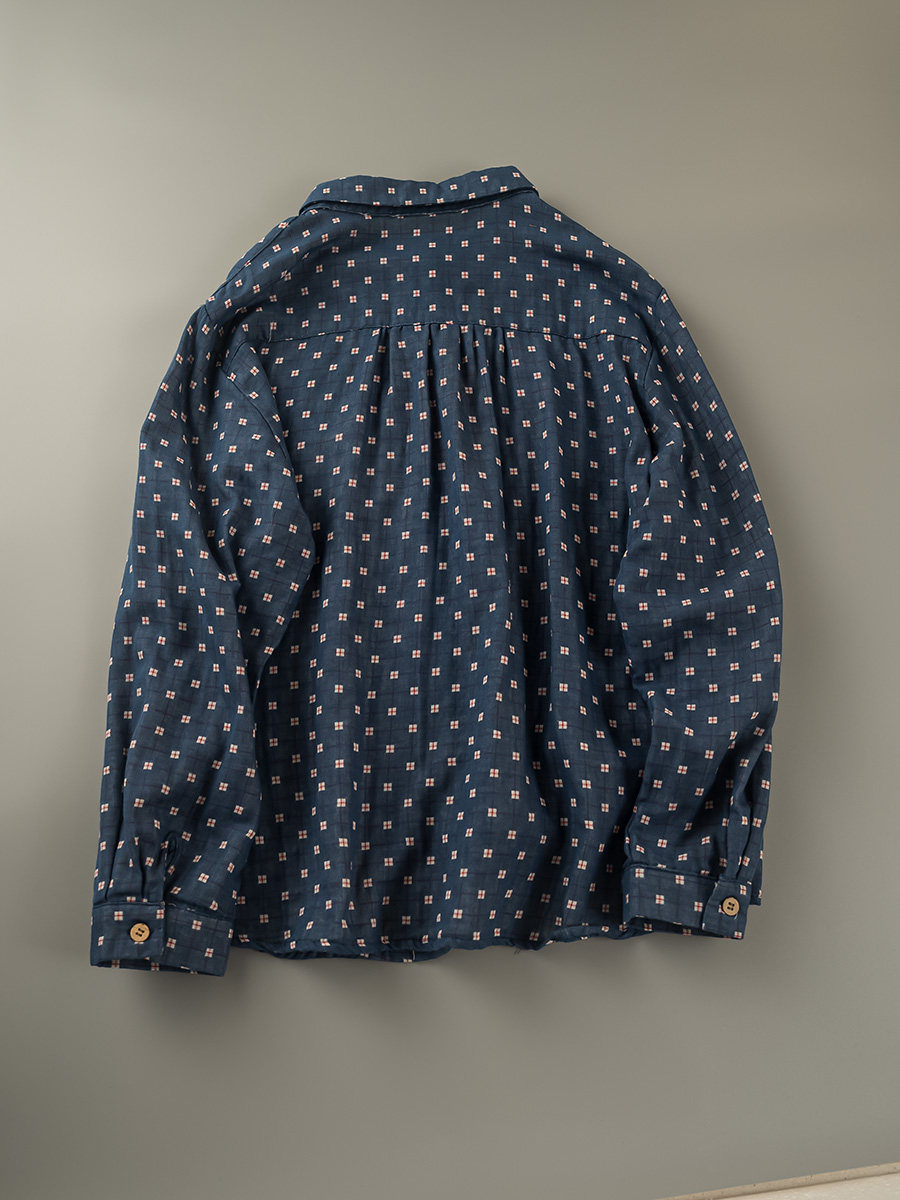 2023秋季新款韓版寬鬆休閒百搭文藝格紋雙層棉紗長袖襯衫女上衣潮