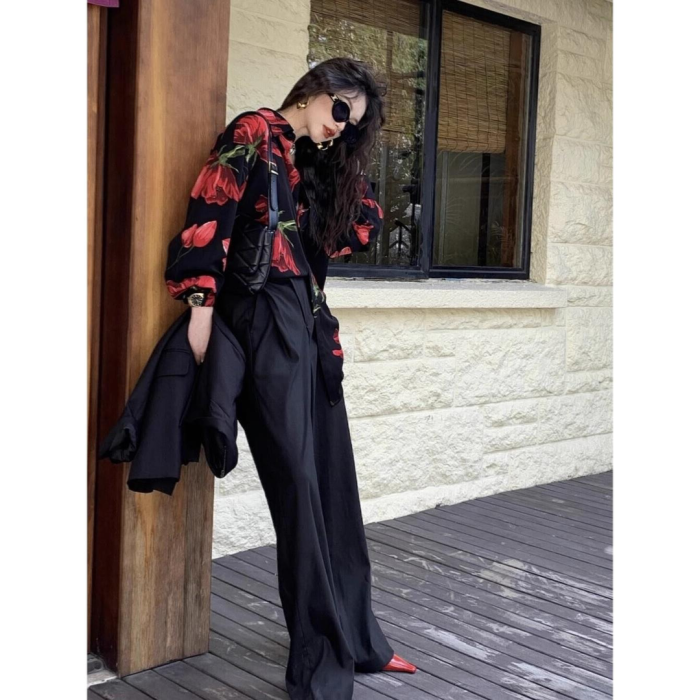 設計感小衆長袖襯衫女裝春夏潮流復古國風襯衣超好看氣質上衣襯衣