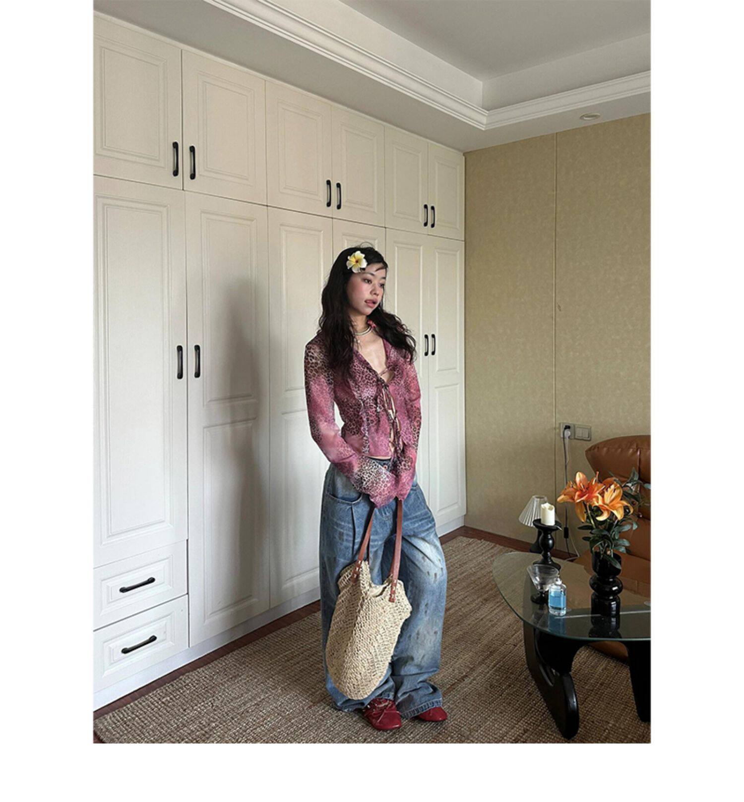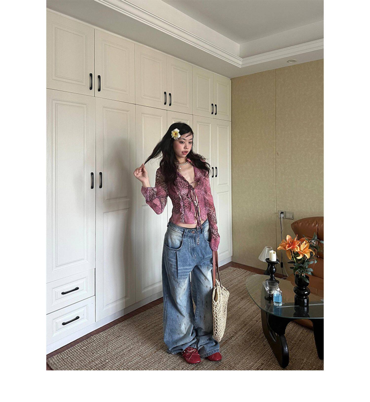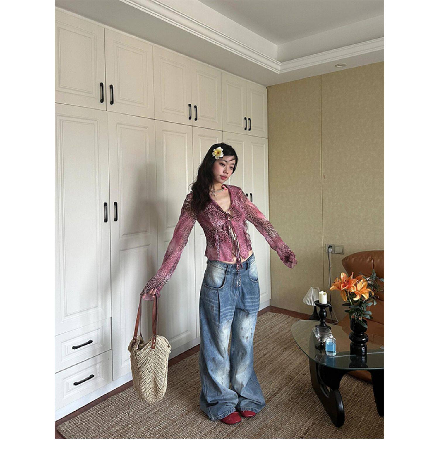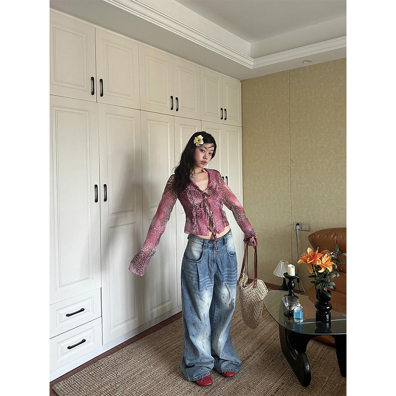 Crazy Ladys 豹紋襯衫系帶上衣女2025夏季新款辣妹性感微透短襯衫