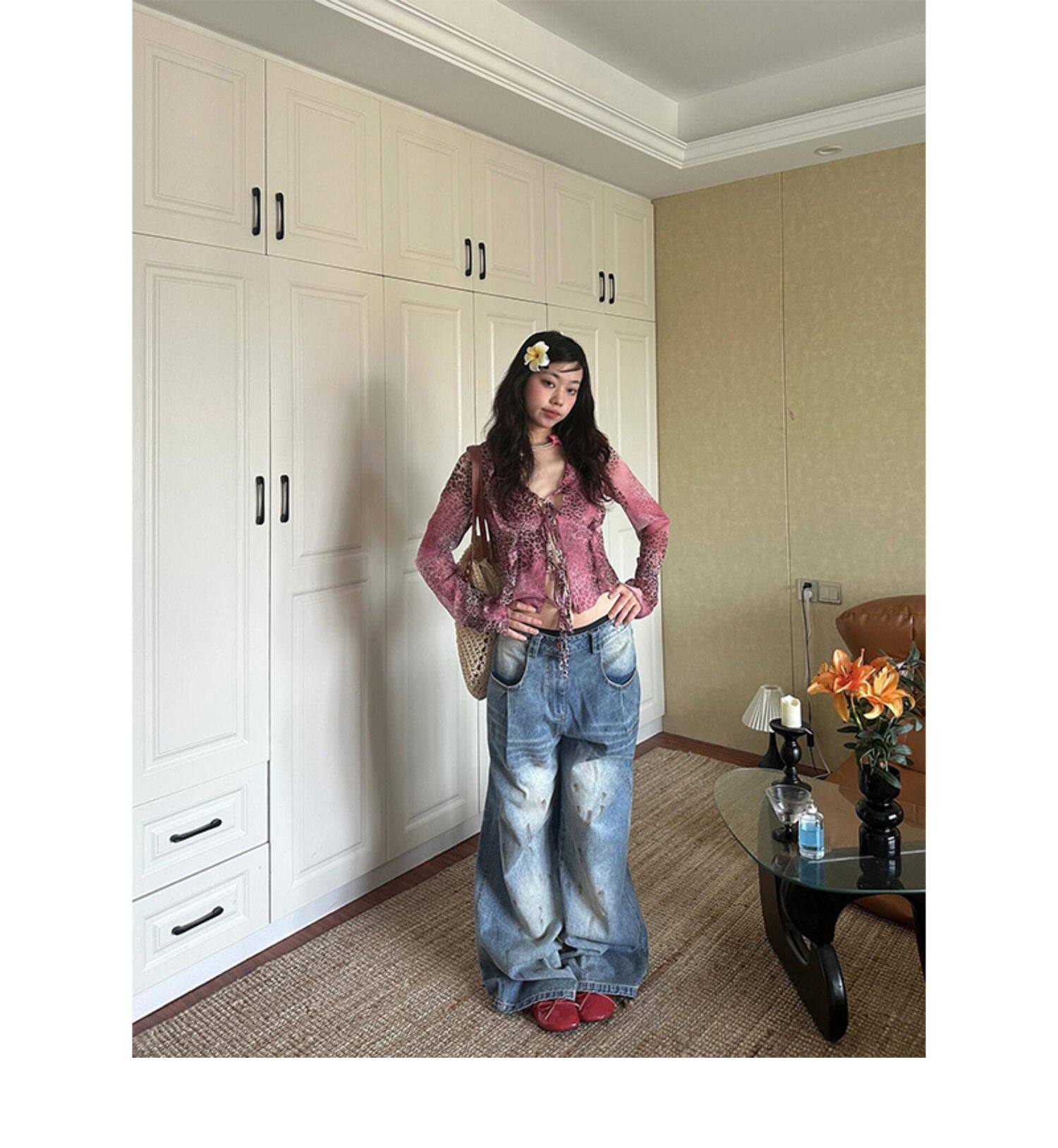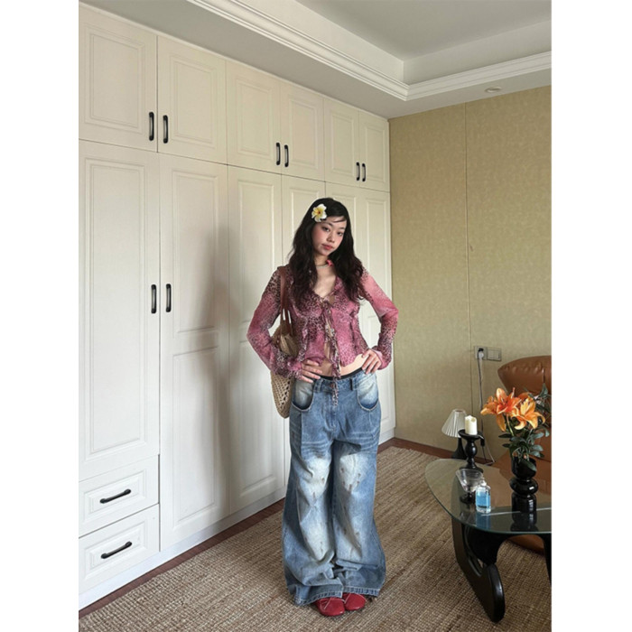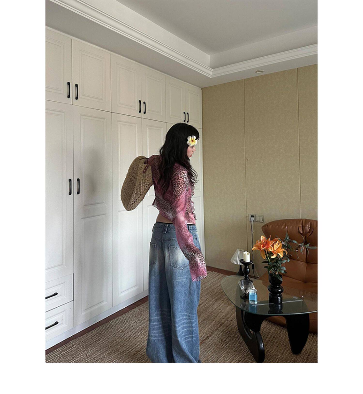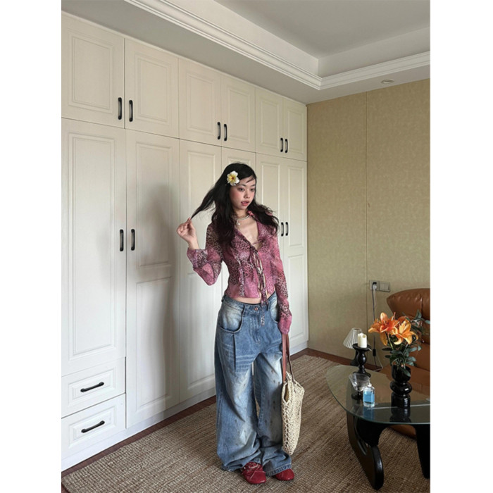 Crazy Ladys 豹紋襯衫系帶上衣女2025夏季新款辣妹性感微透短襯衫