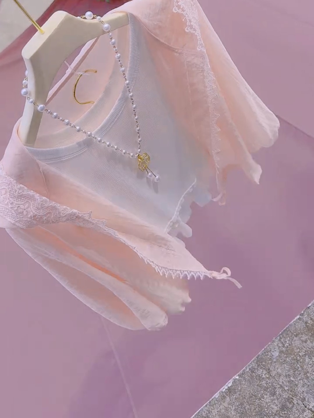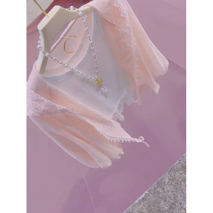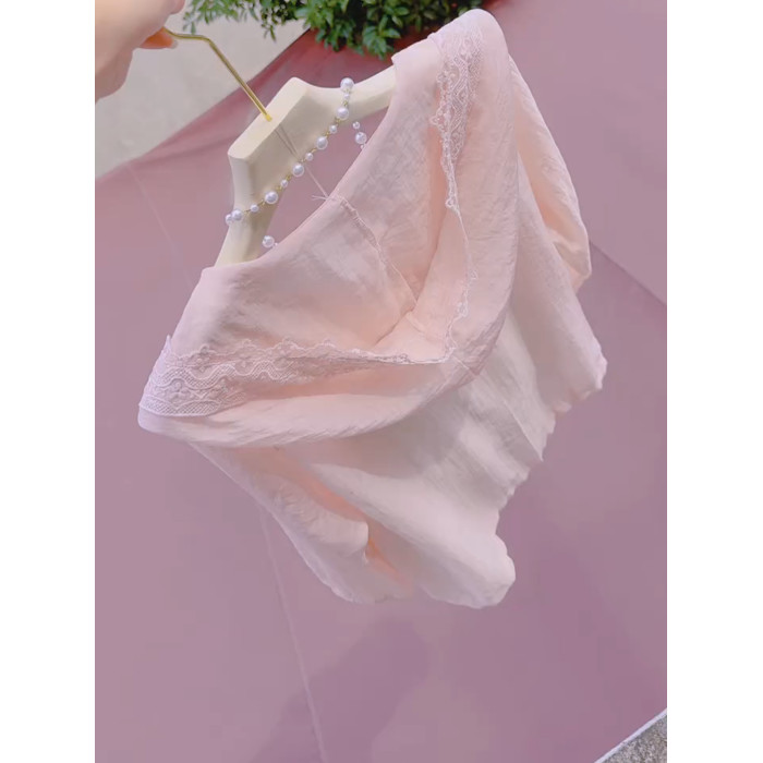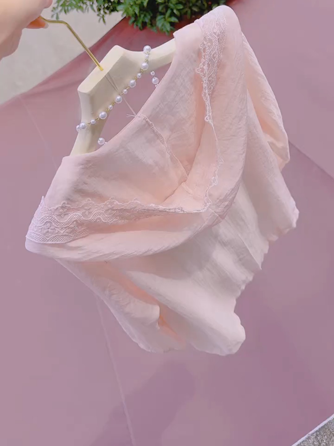 甜美減齡蕾絲花邊連帽防曬襯衫女夏季輕薄透氣慵懶風洋氣減齡上衣