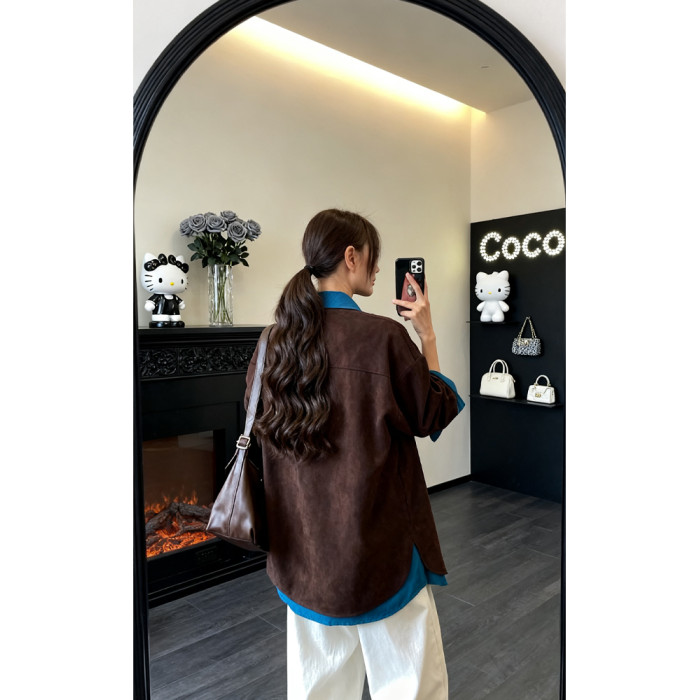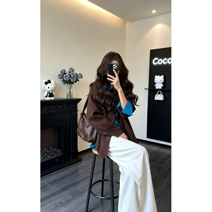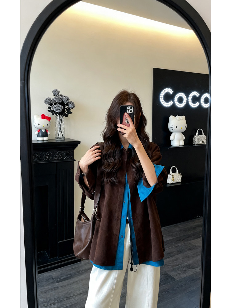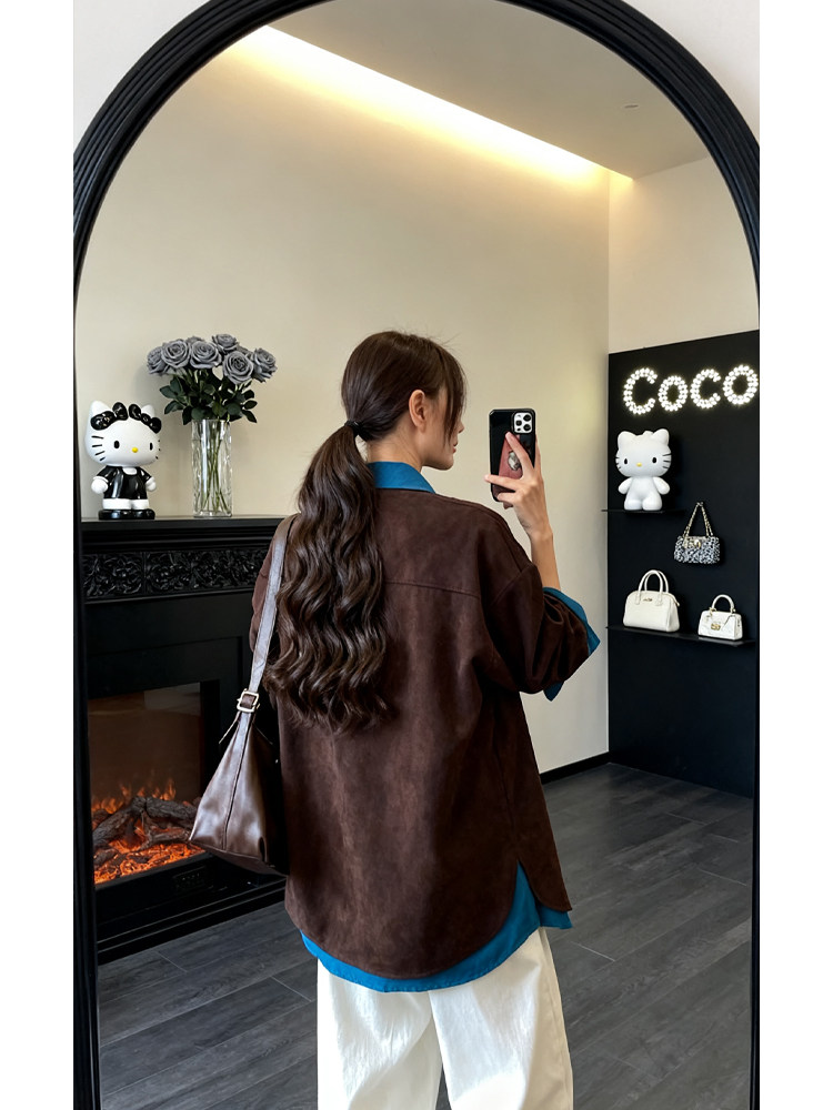韓系設計感假兩件polo領廓形襯衫女2025秋冬季新款高級感拼接上衣