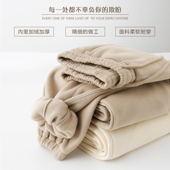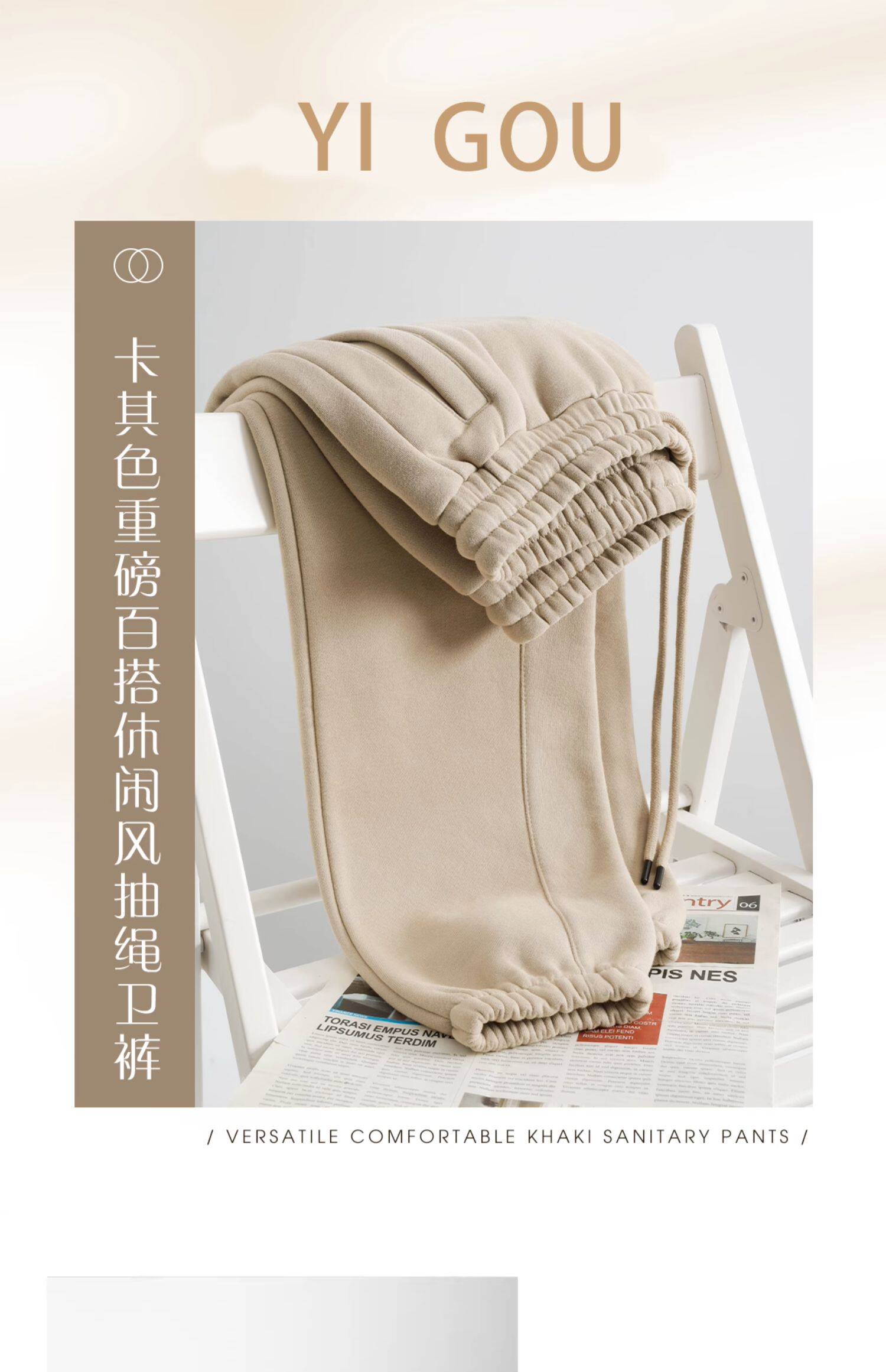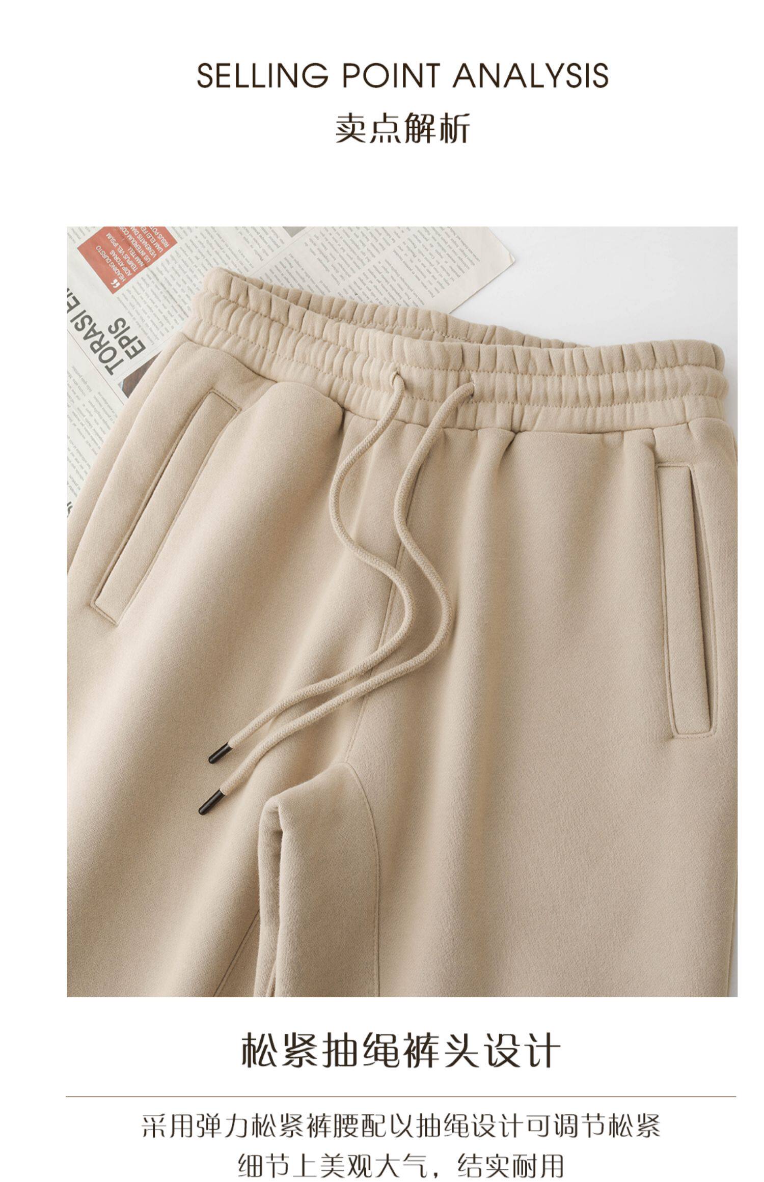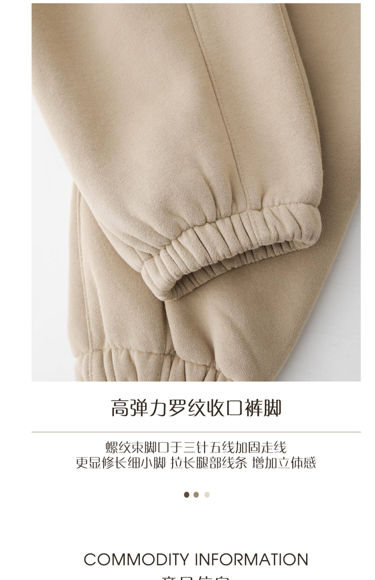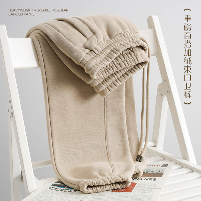 百搭又隨性!卡其色加絨加厚衛褲女淺咖啡色寬鬆休閒運動褲男秋冬