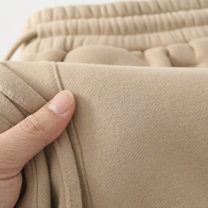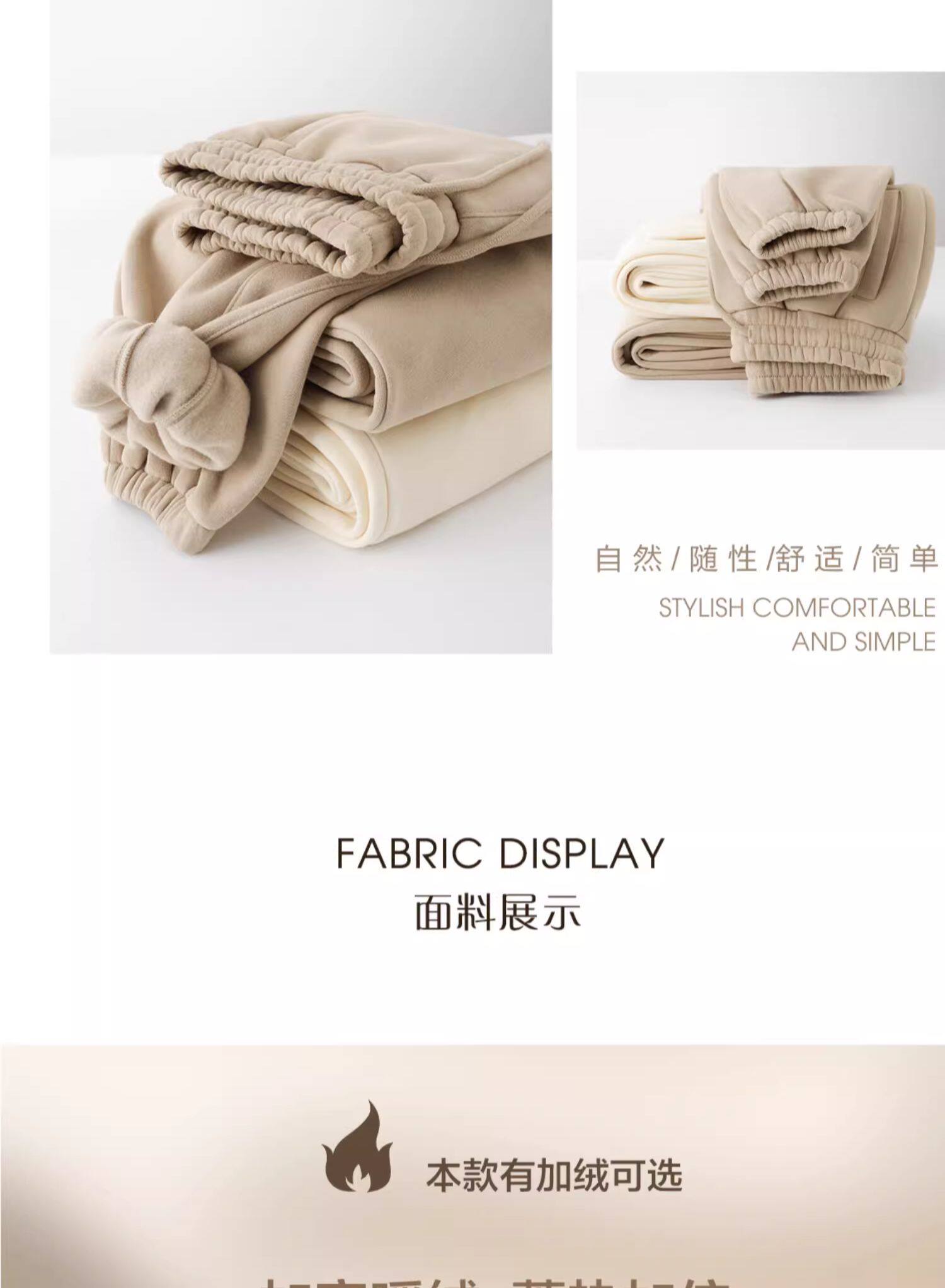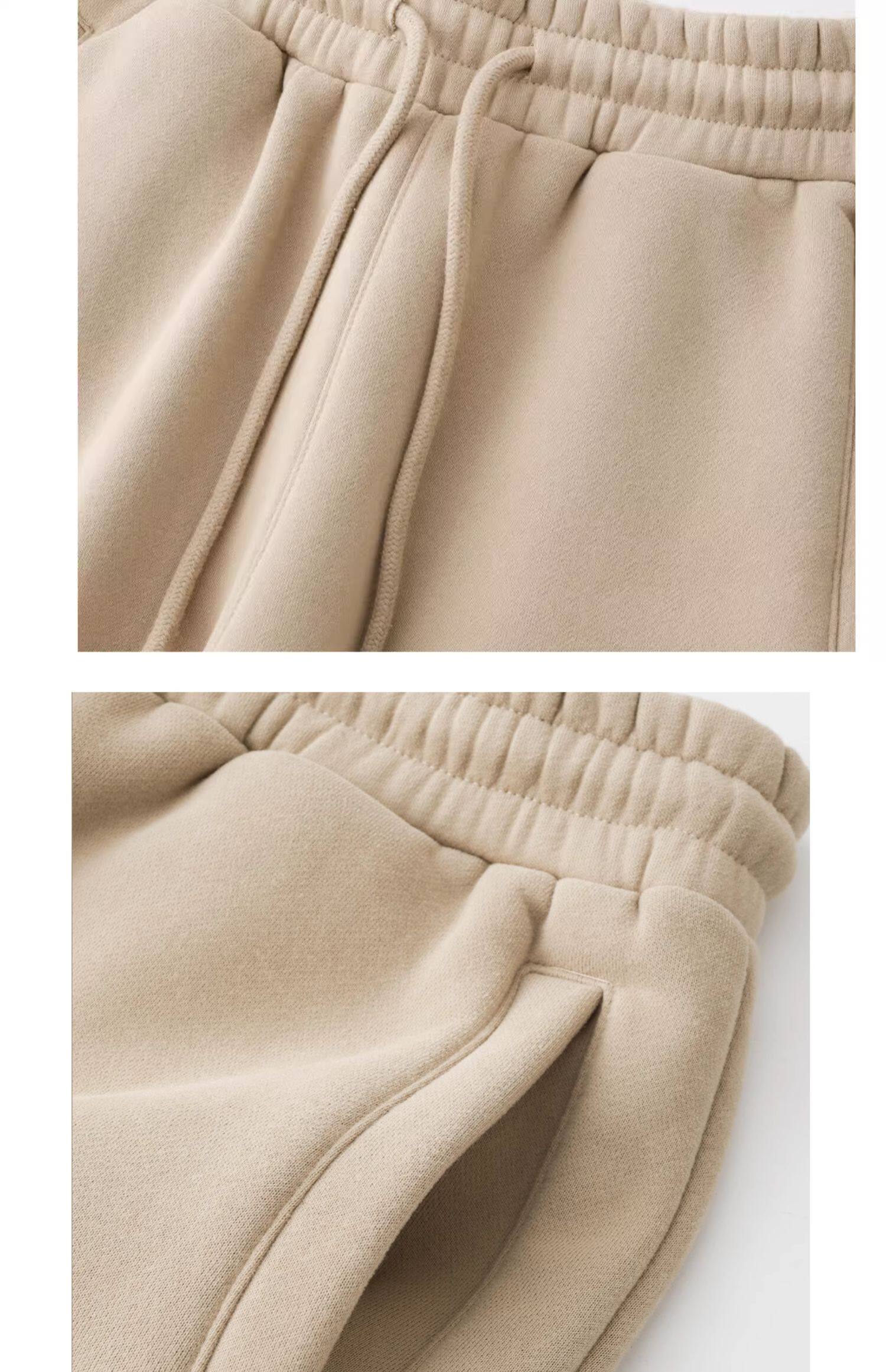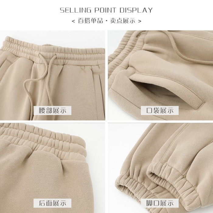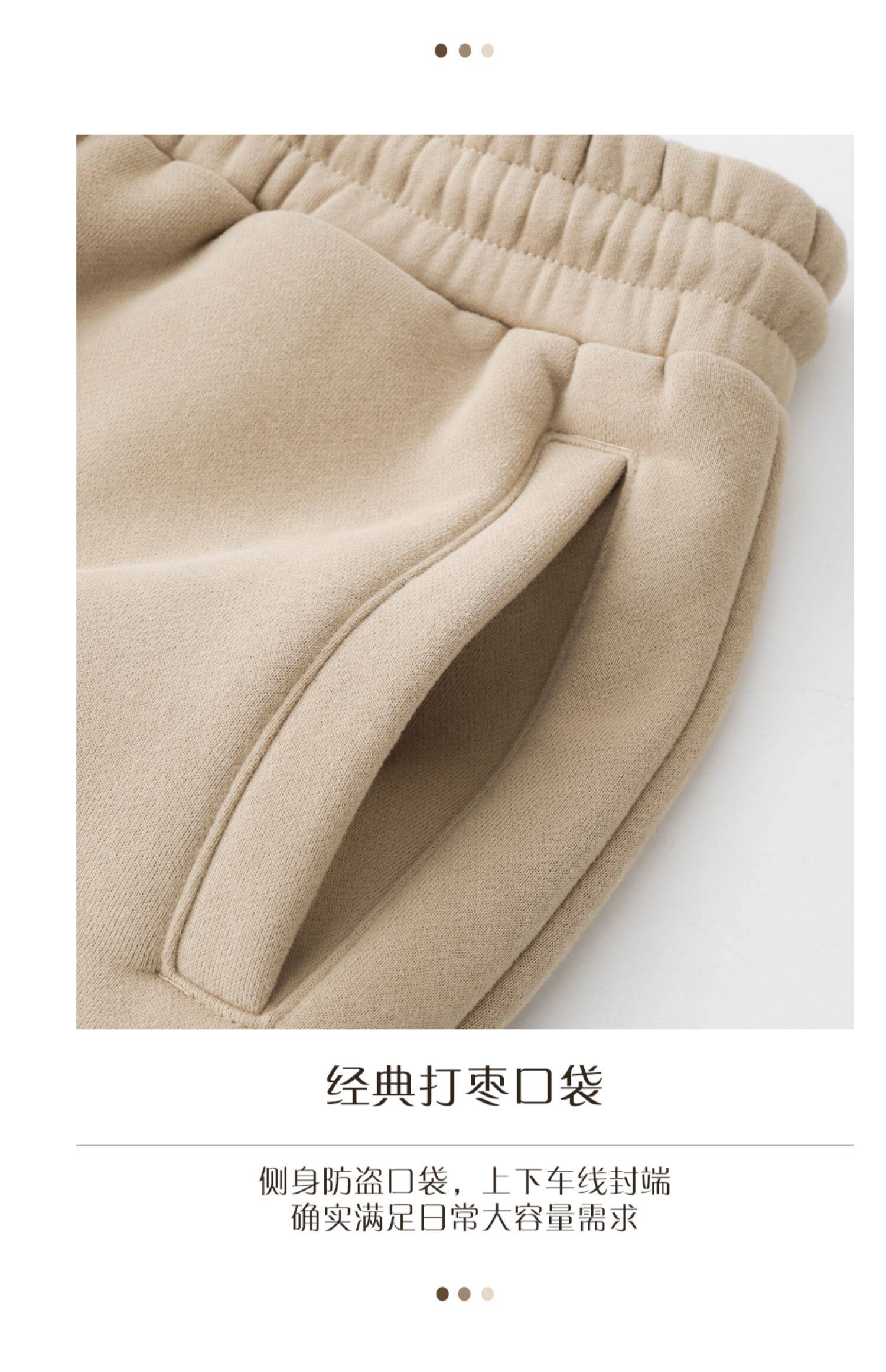 百搭又隨性!卡其色加絨加厚衛褲女淺咖啡色寬鬆休閒運動褲男秋冬