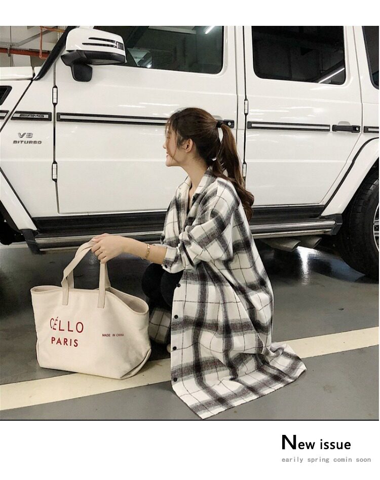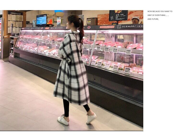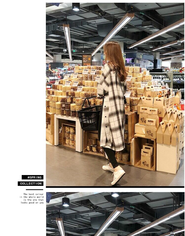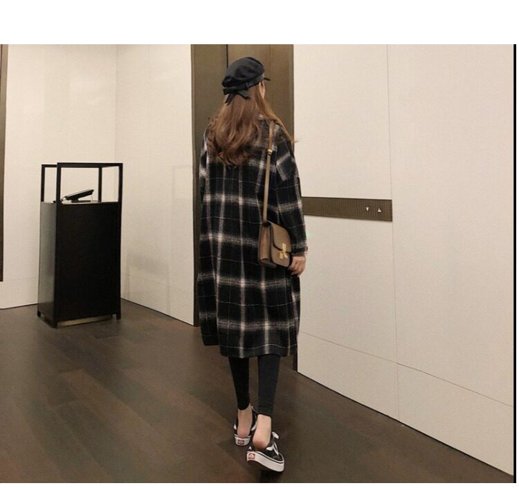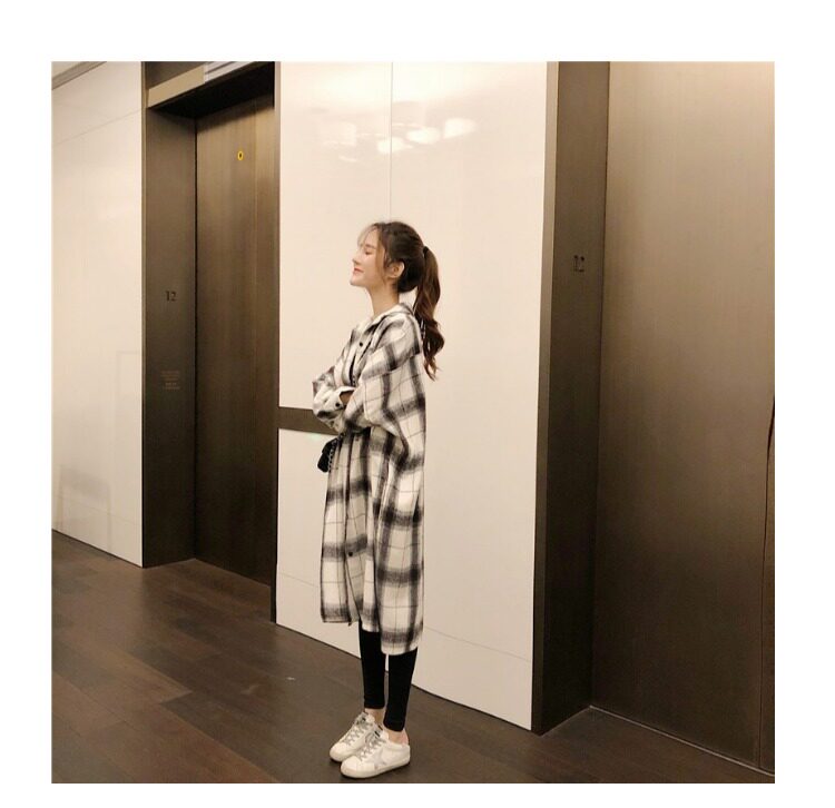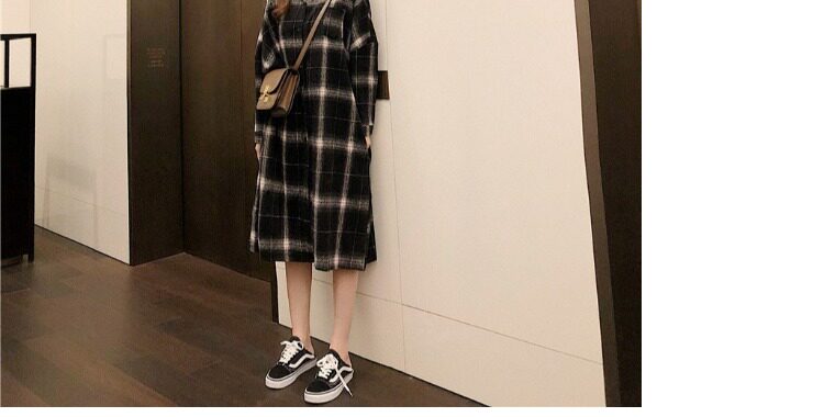 襯衫外套女ins潮新款學生格子秋冬外穿中長款加絨胖mm長袖連衣裙