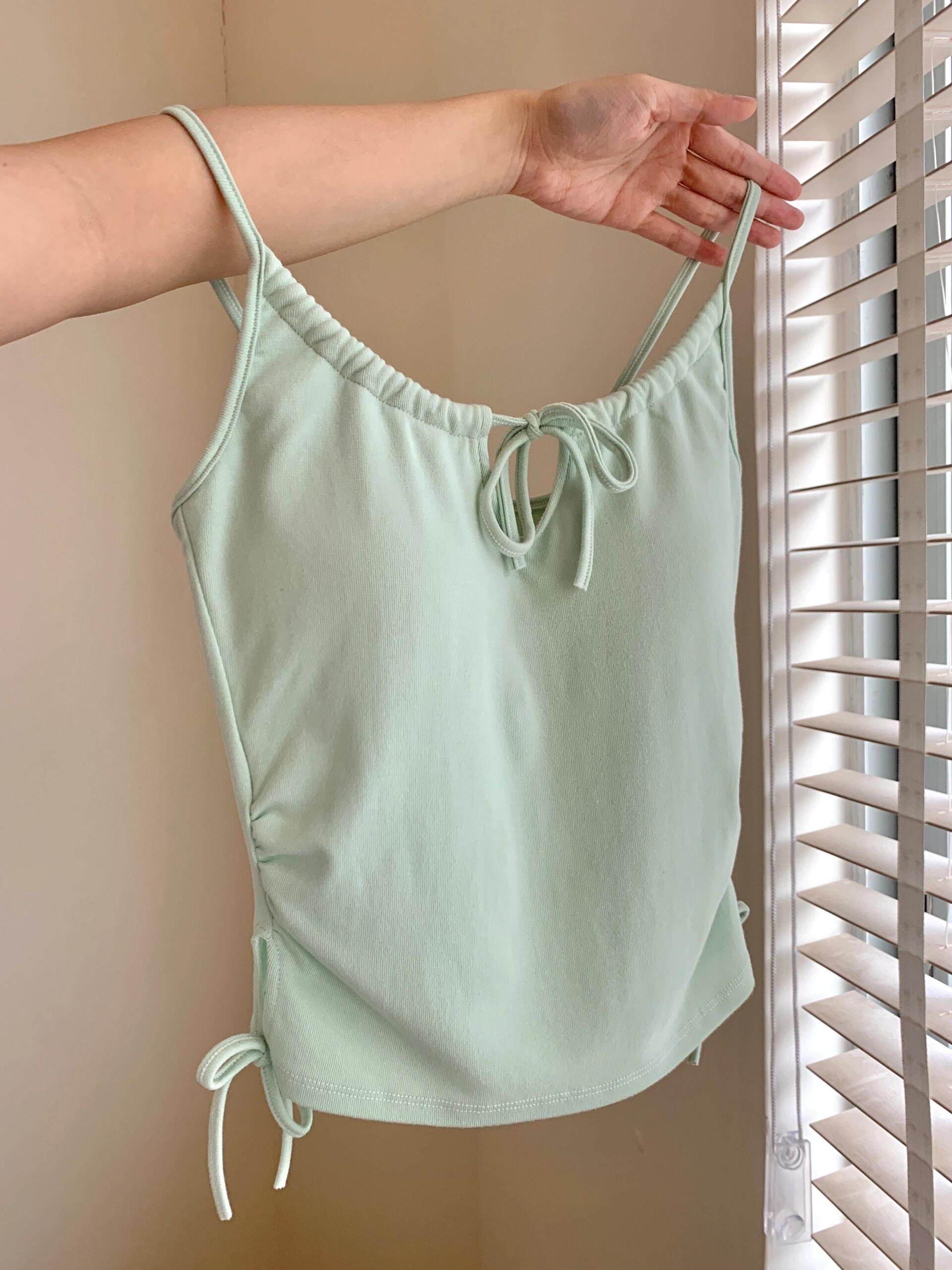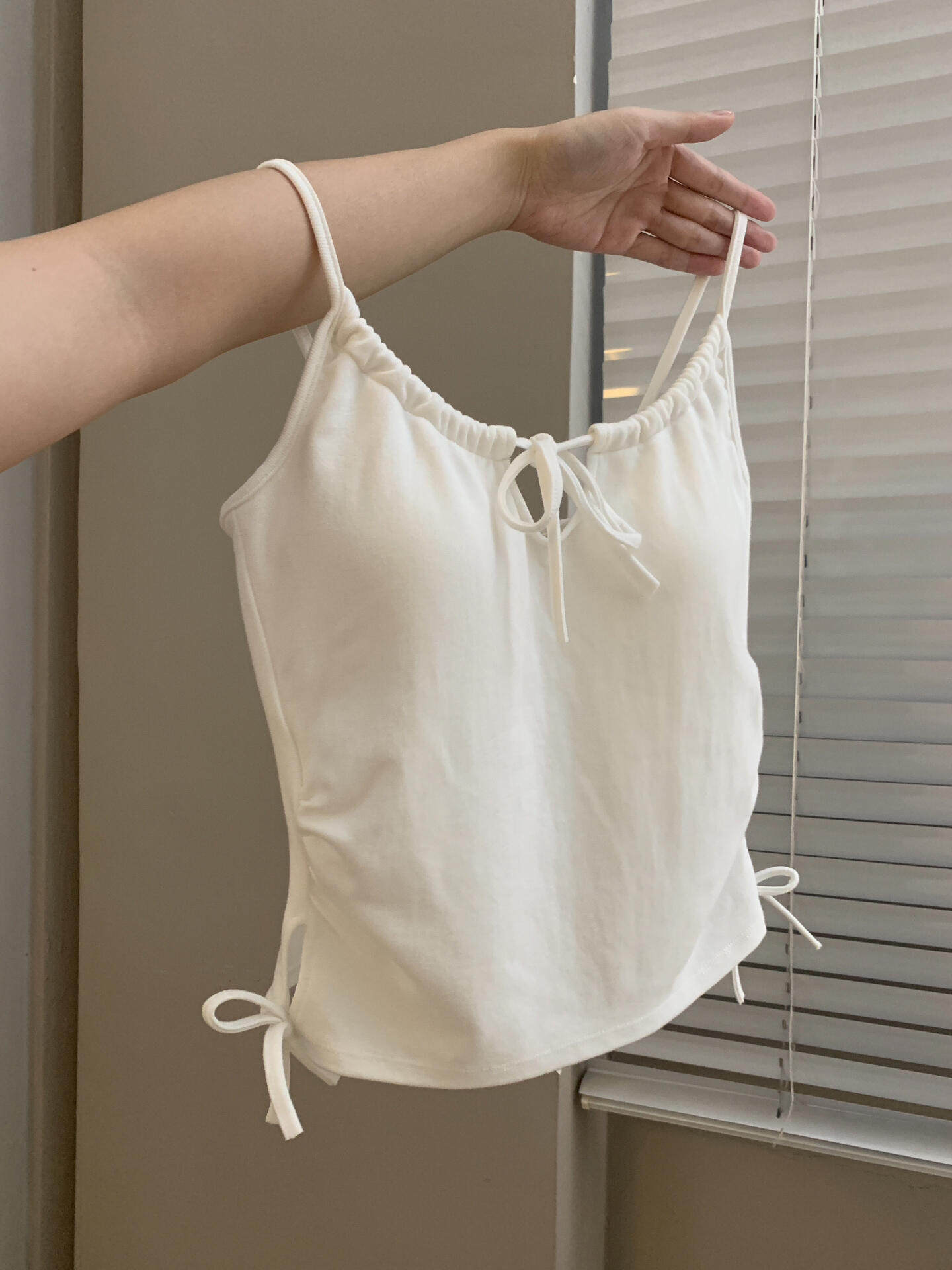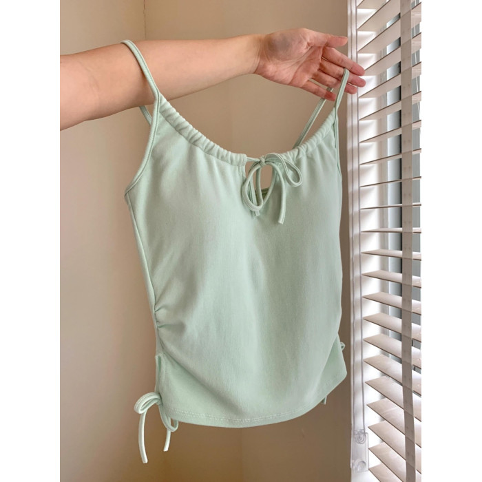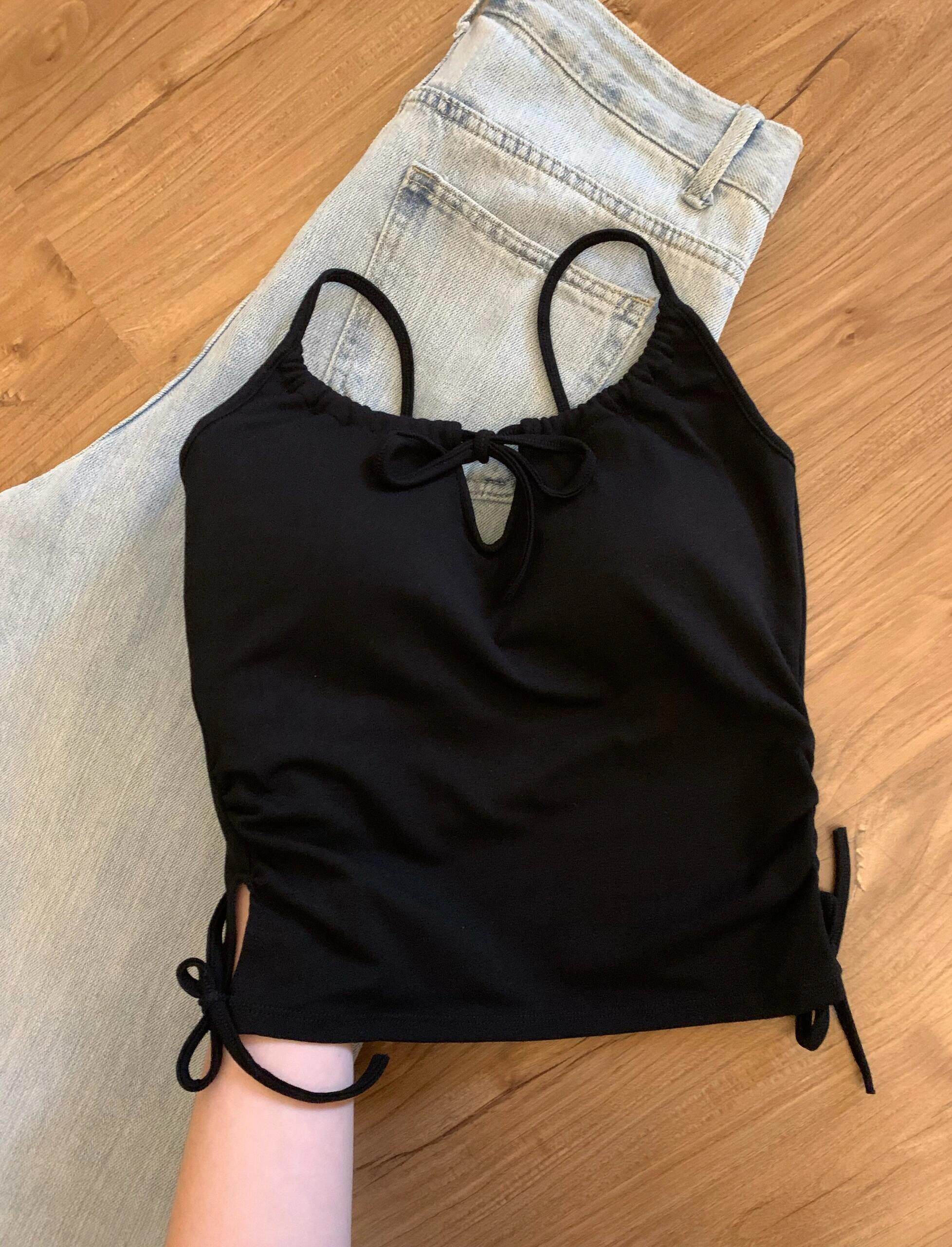 乾淨又清透~鏤空系帶吊帶背心好欲好顯嫩!夏季新款抽繩系帶設計