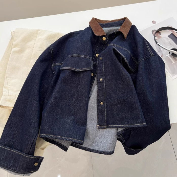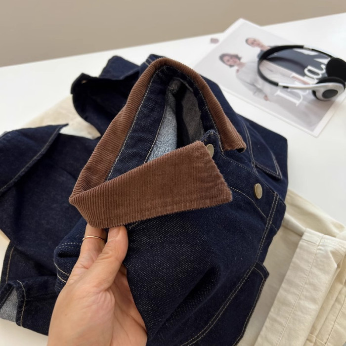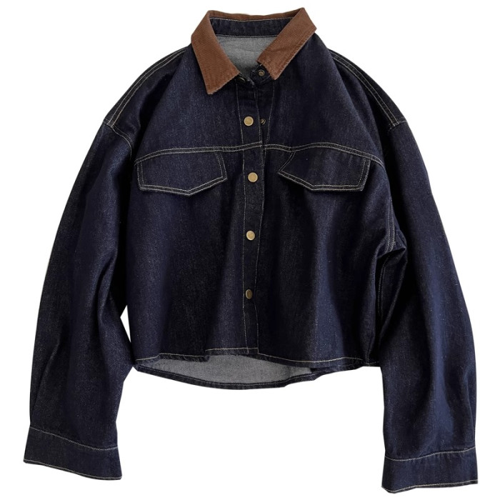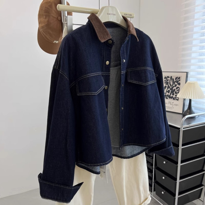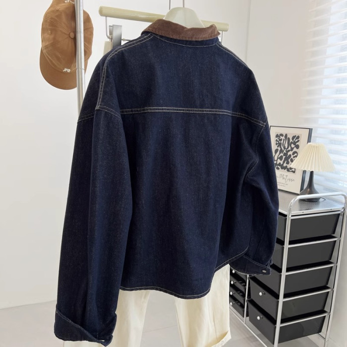 牛X貨 巨炸裂!復古深藍色繙領牛仔外套女寬鬆百搭工裝夾克上衣