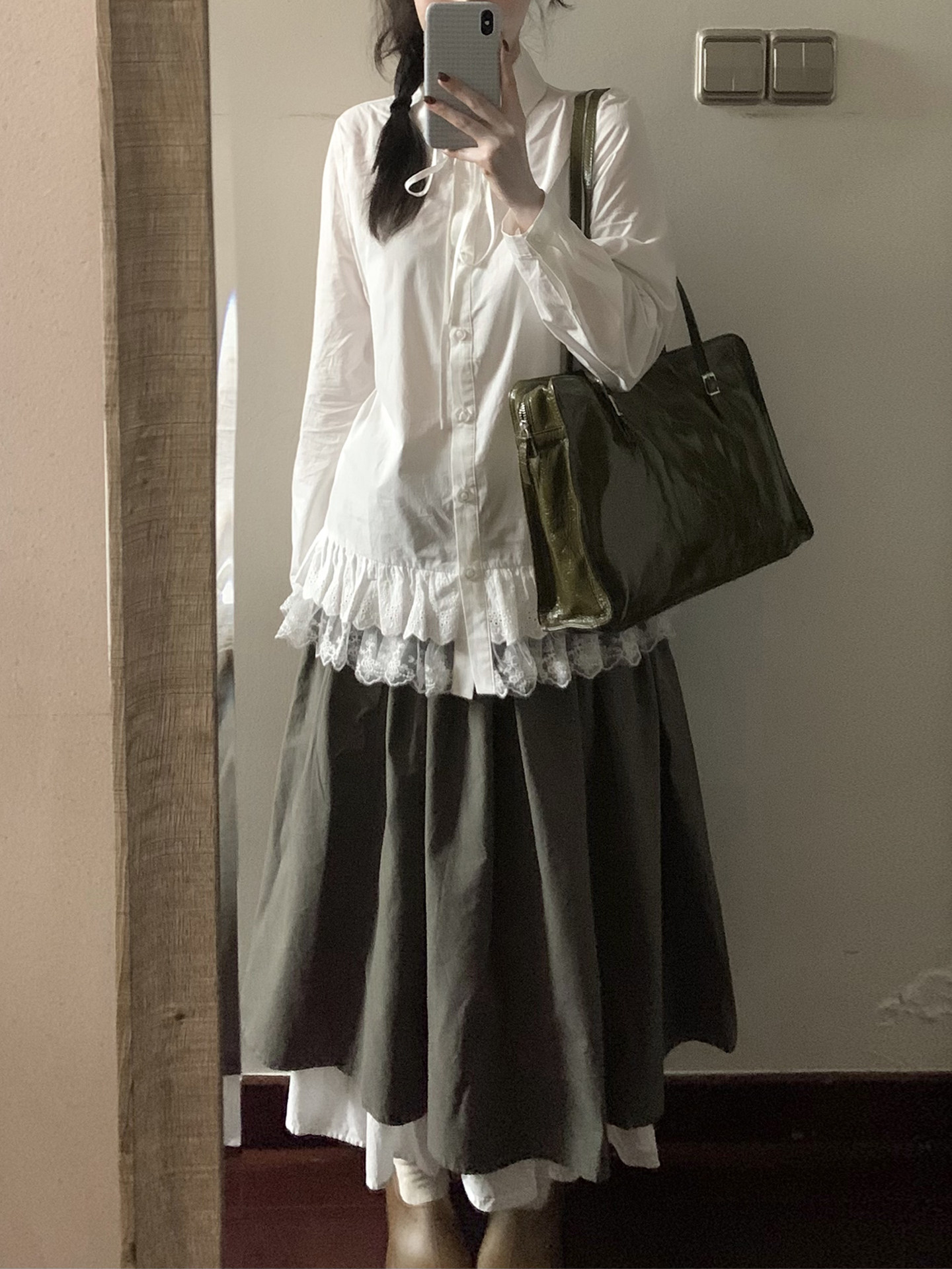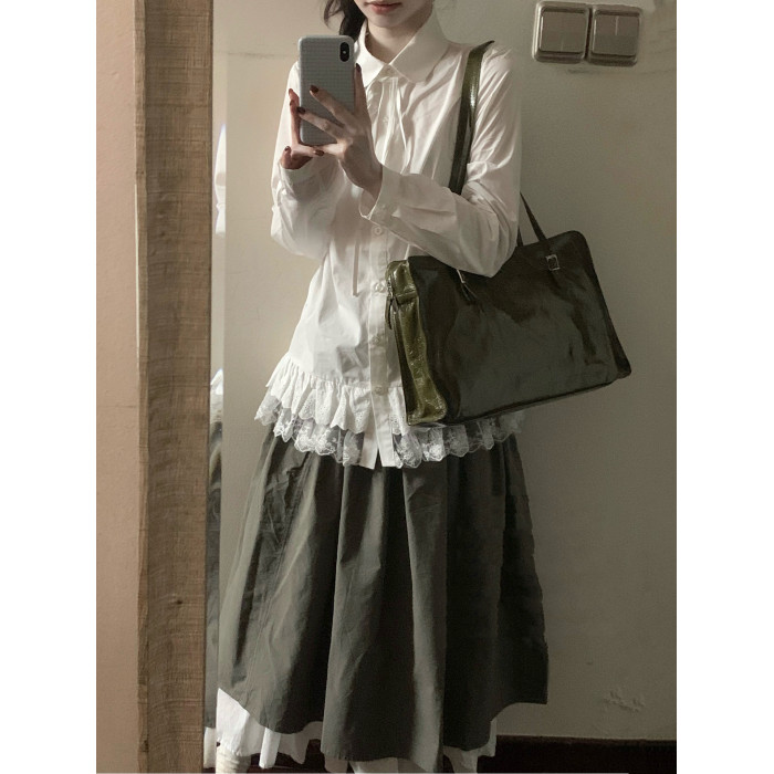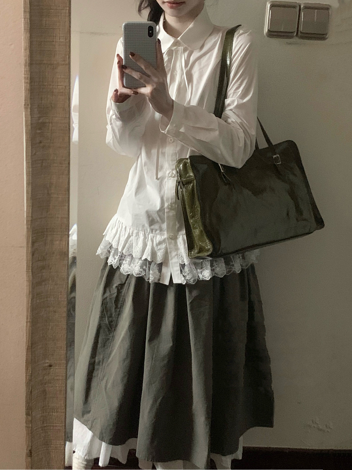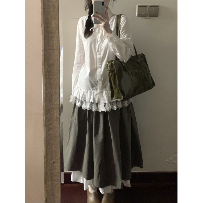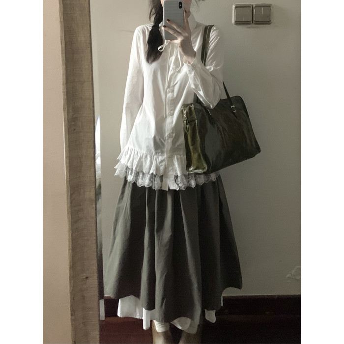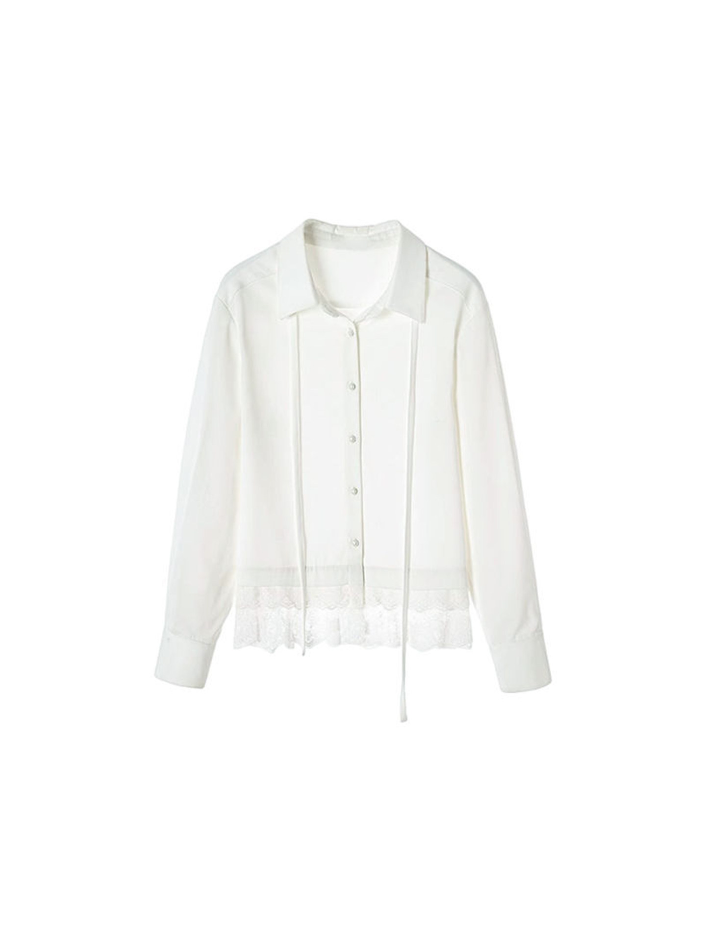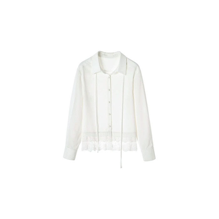 YUNNNIE 古早感白色襯衫女設計感小衆蕾絲花邊復古寬鬆長袖襯衣服