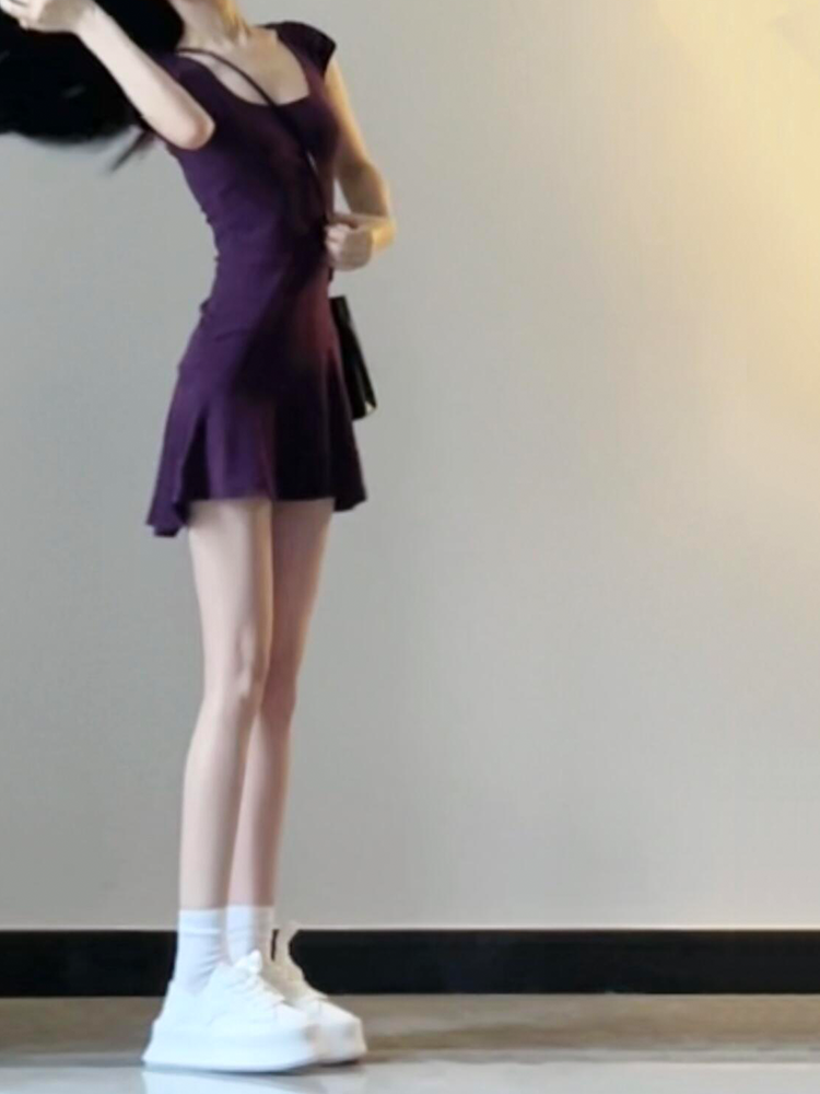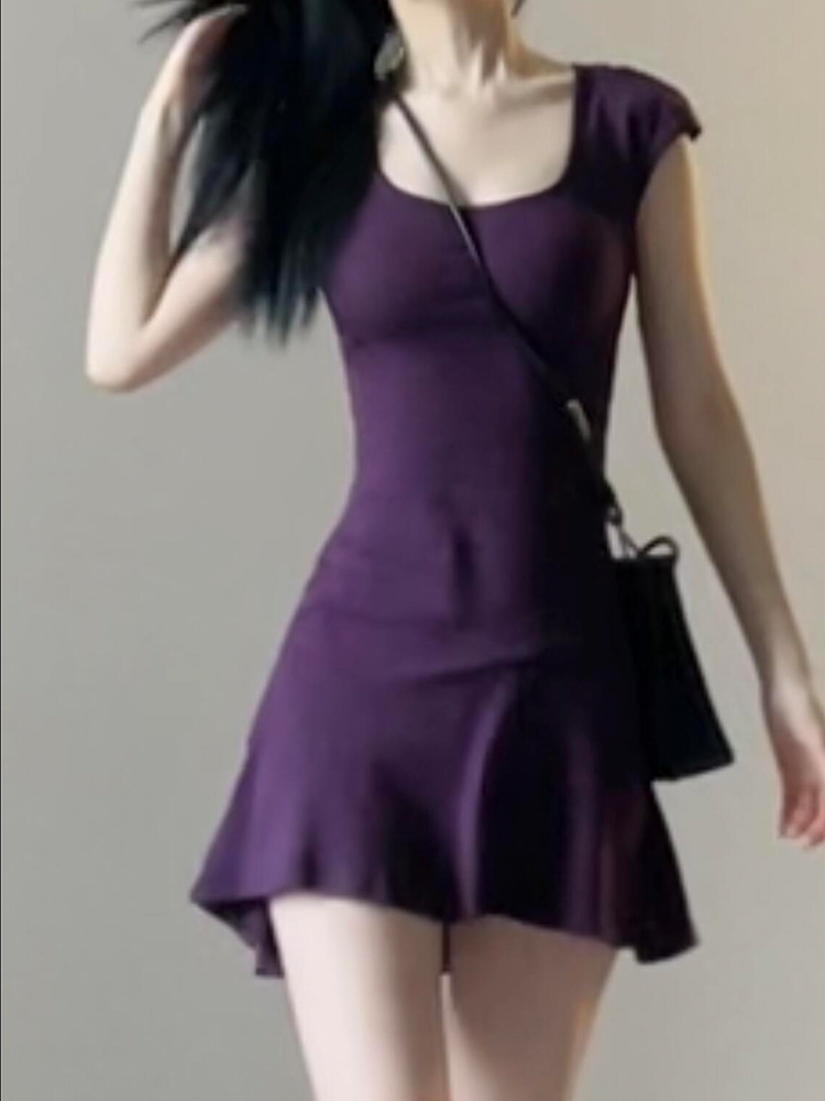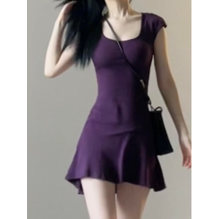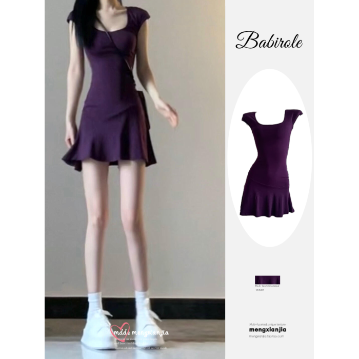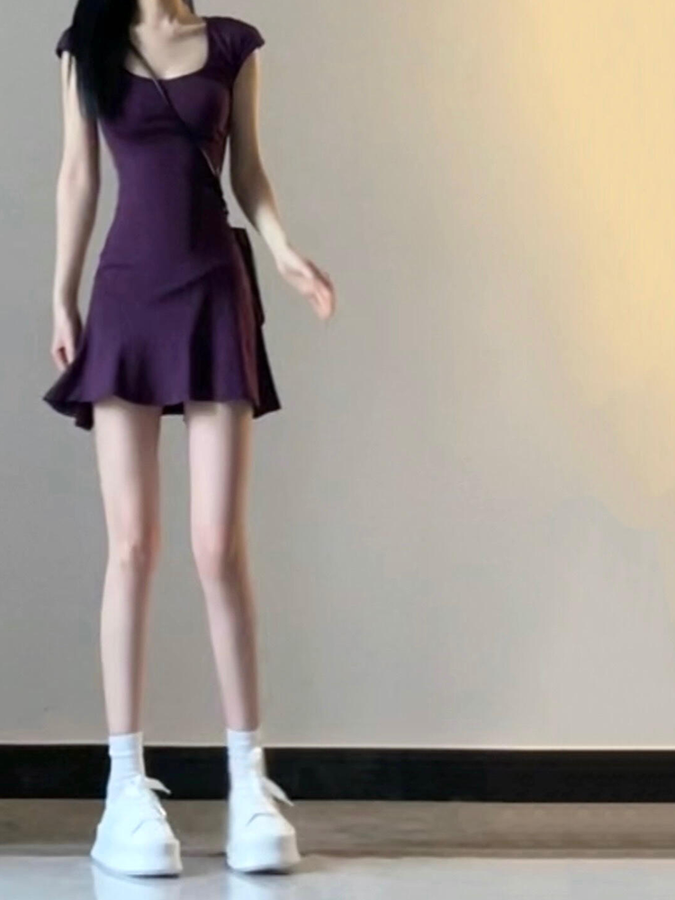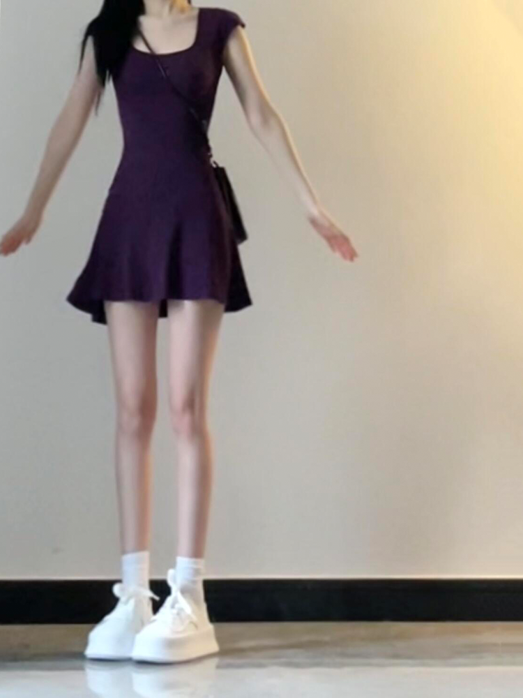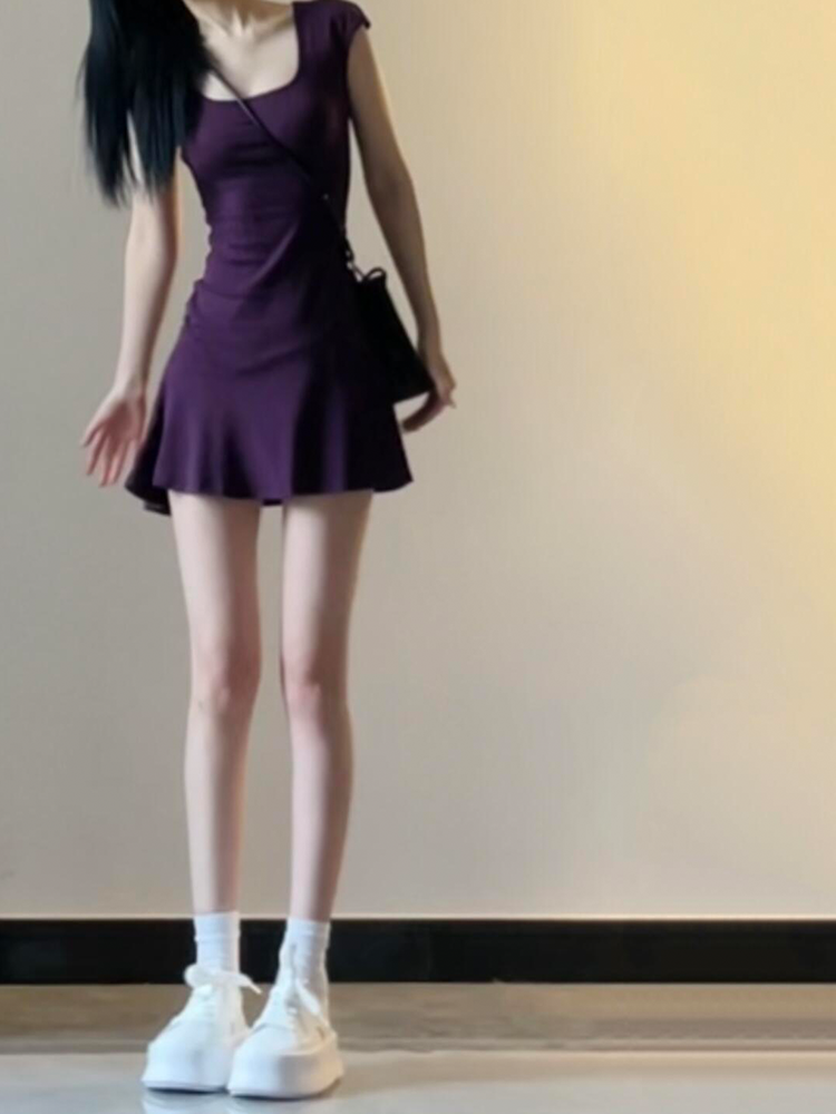 今年流行的包臀短裙子夏裝新款女裝收腰修身清冷感減齡T恤連衣裙