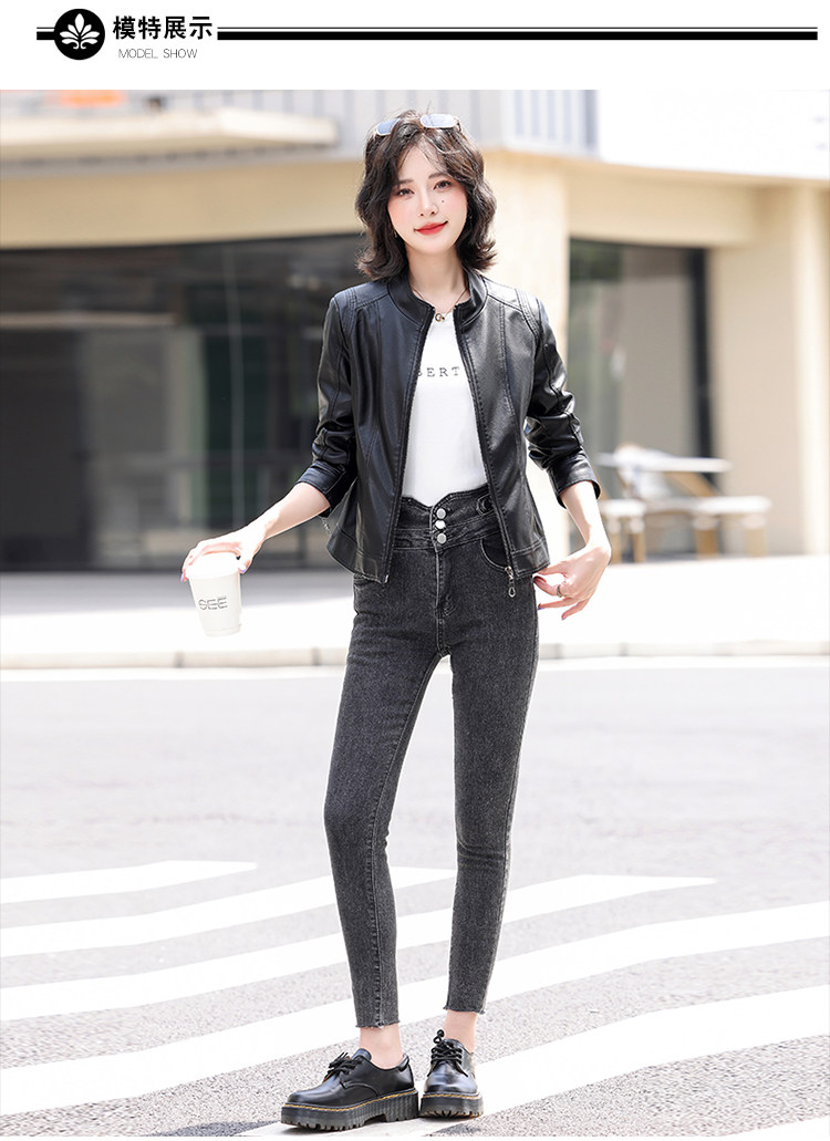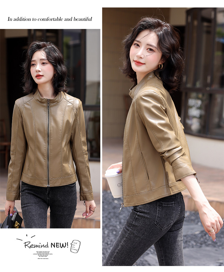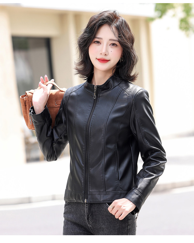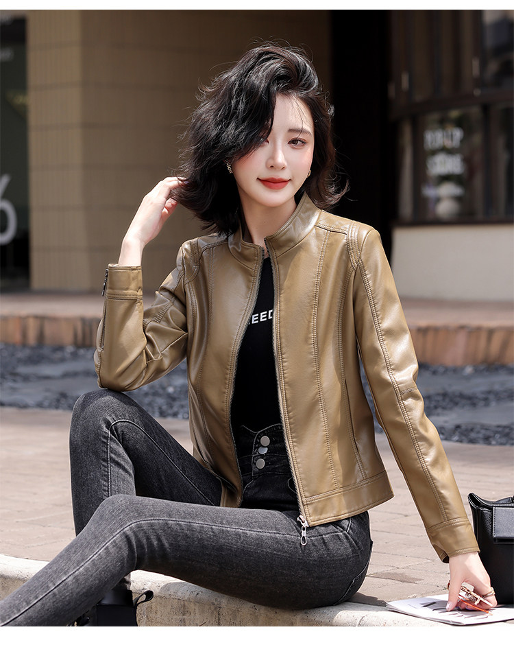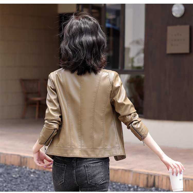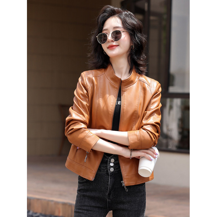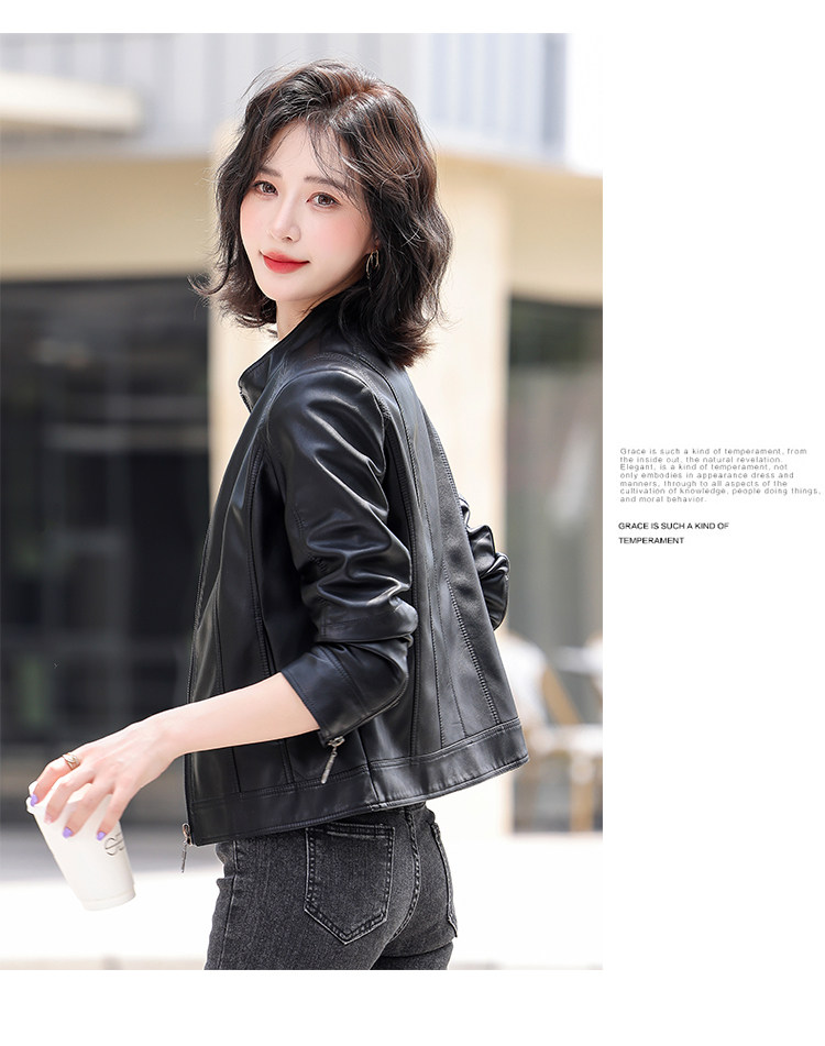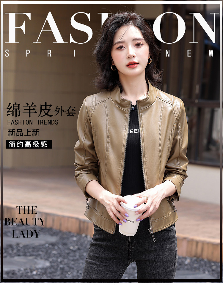 海甯真皮皮衣女短款2025春季新款綿羊皮外套女韓版顯瘦立領皮夾克