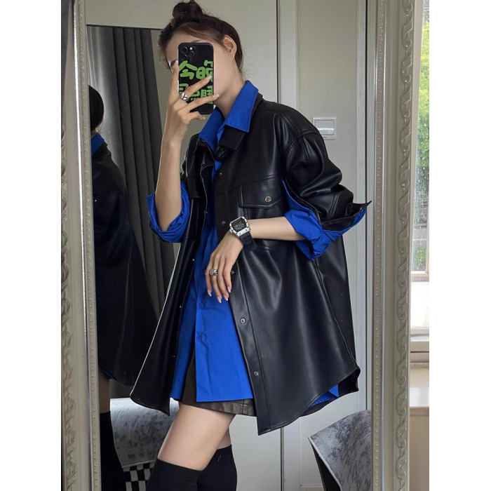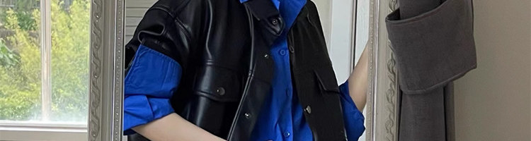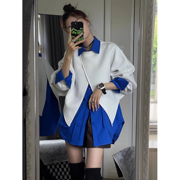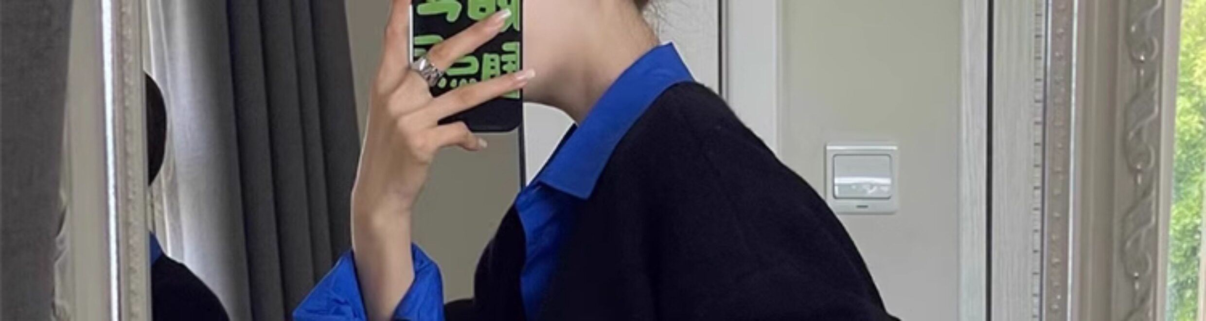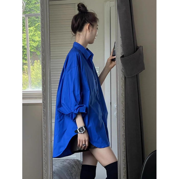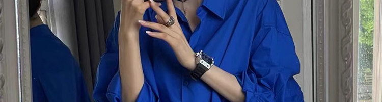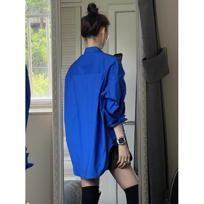 寬鬆克萊因藍襯衫女高級感港味休閒男友風開衫外套通勤曡穿上衣