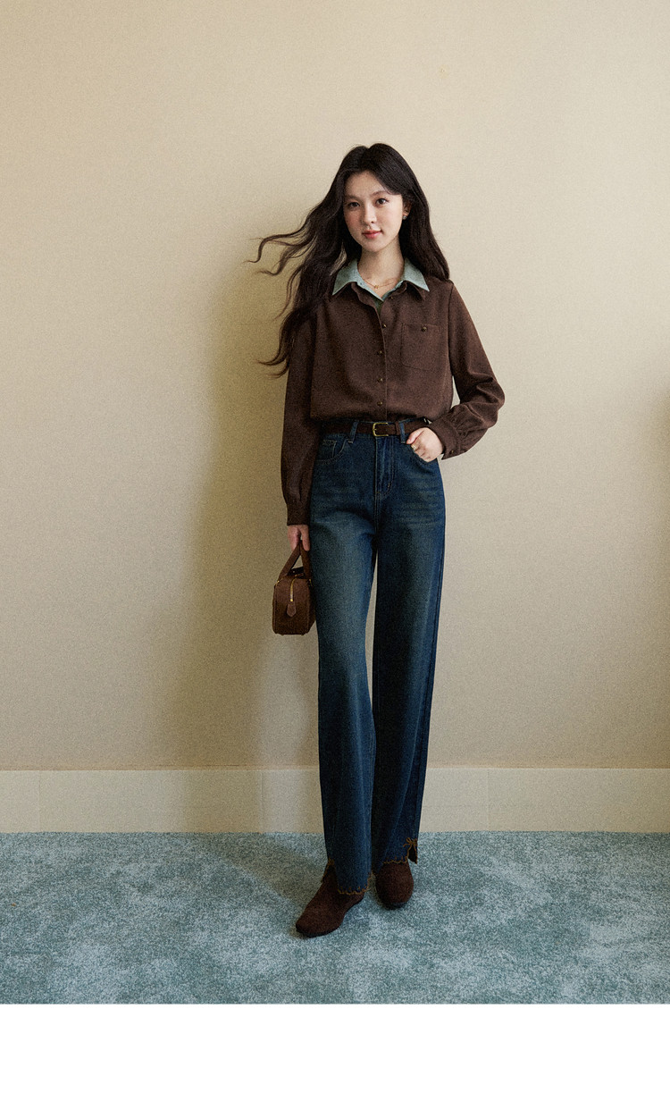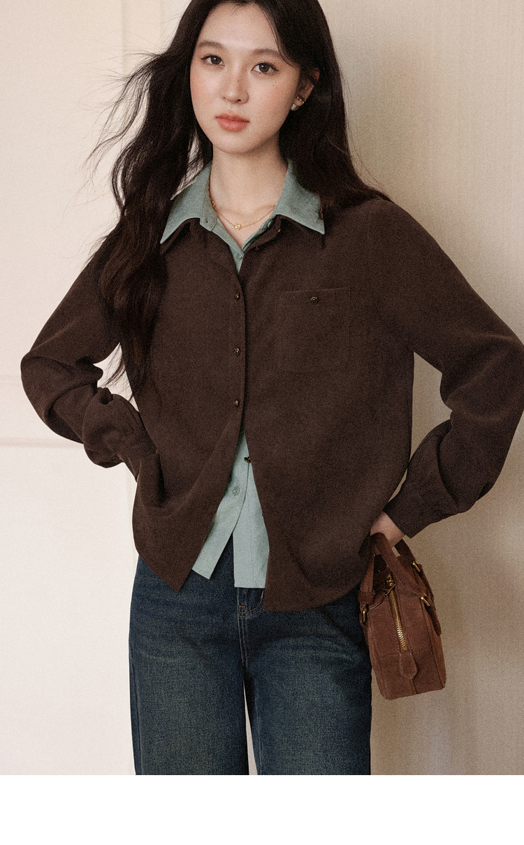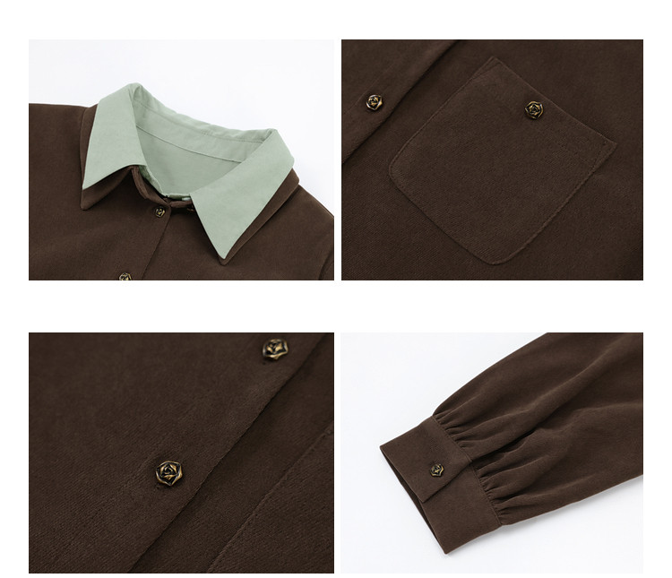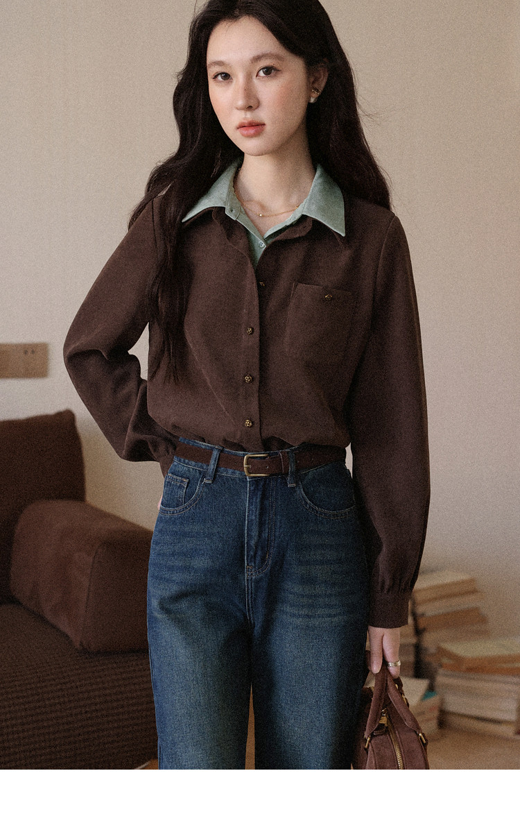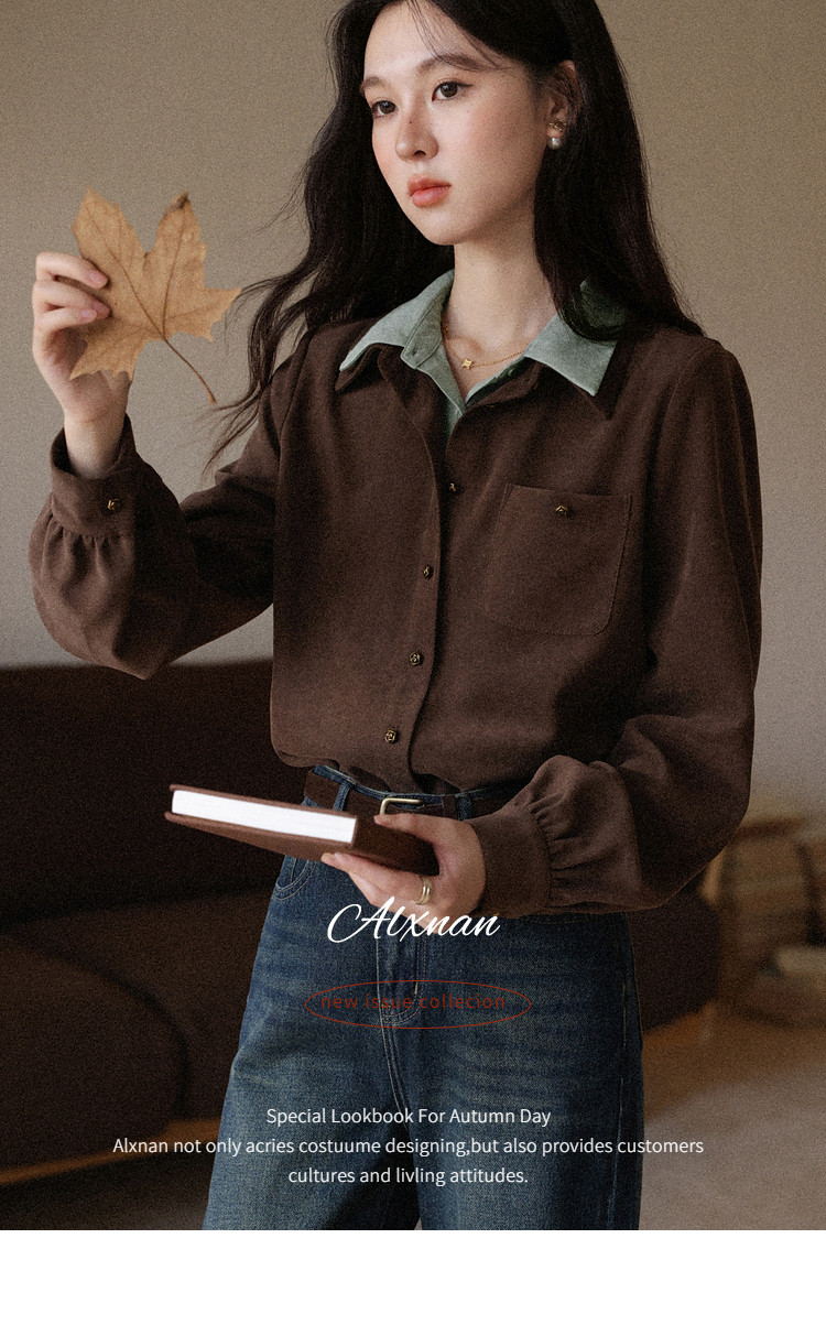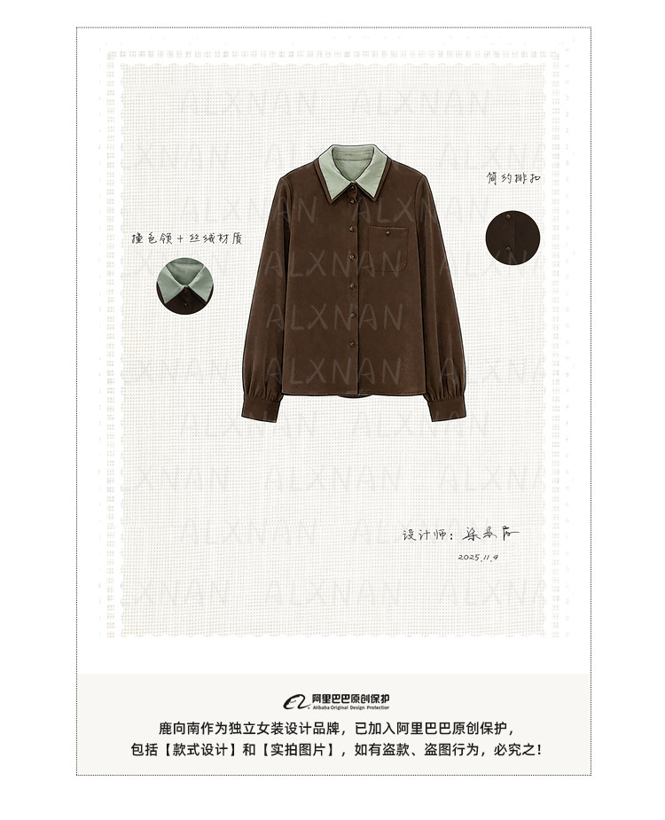 鹿向南「松茶可可」假兩件美拉德襯衫女秋冬氣質上衣通勤法式襯衣