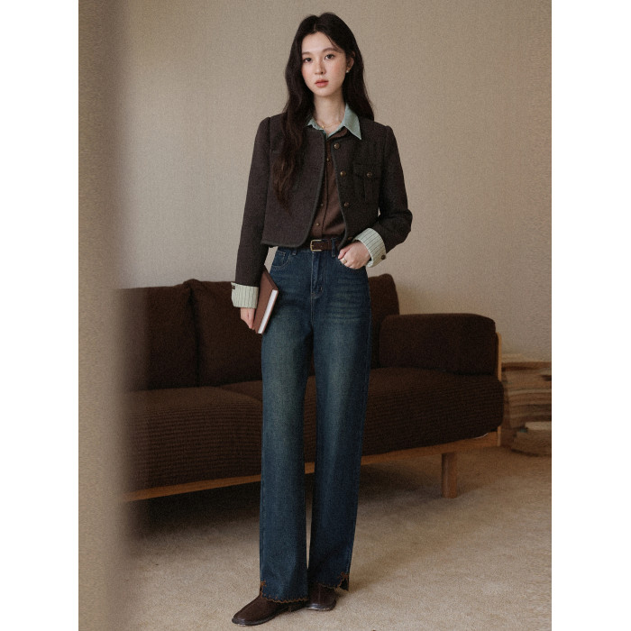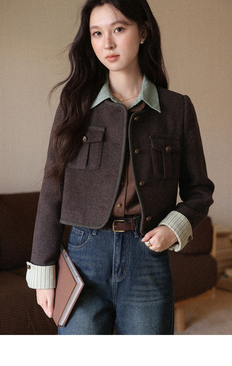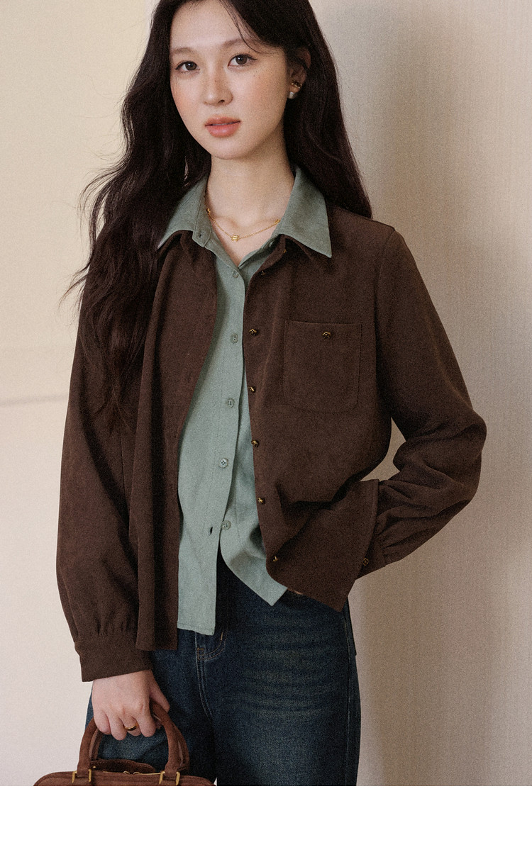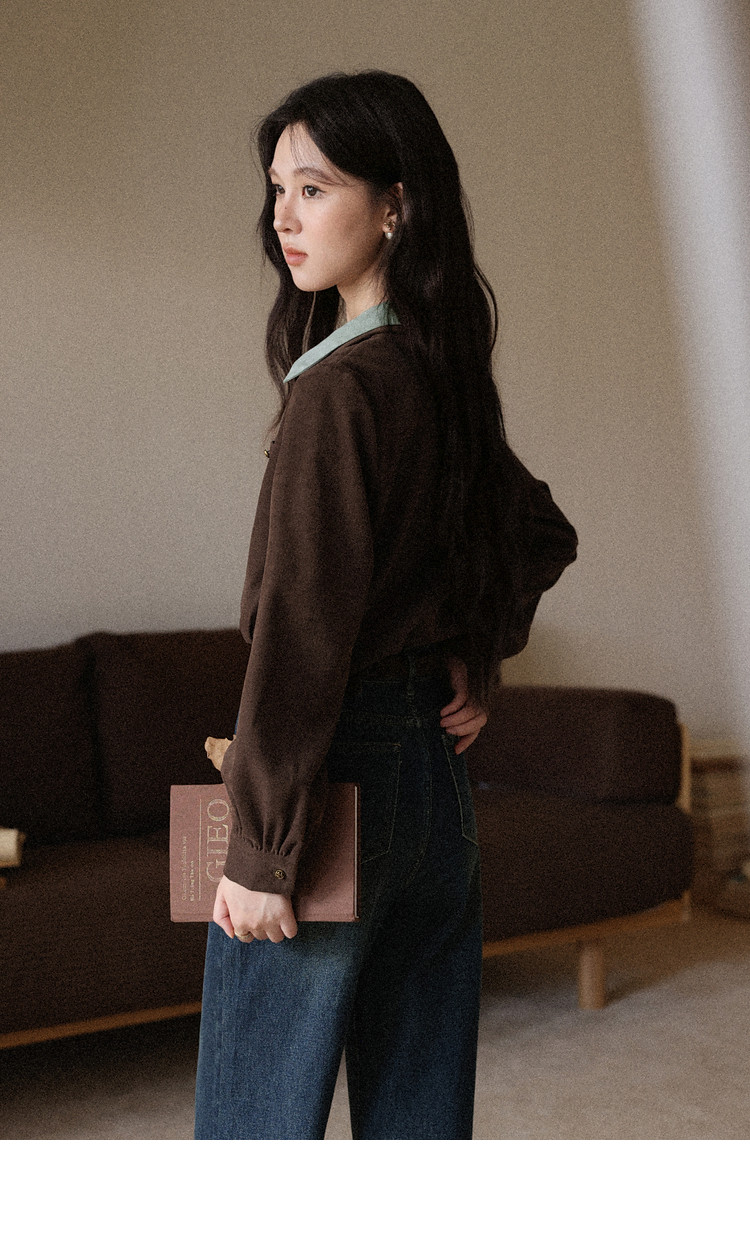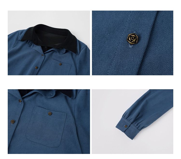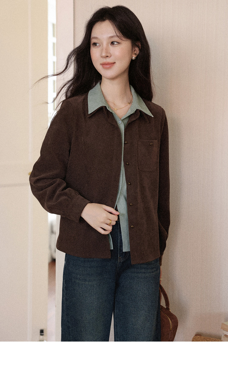 鹿向南「松茶可可」假兩件美拉德襯衫女秋冬氣質上衣通勤法式襯衣