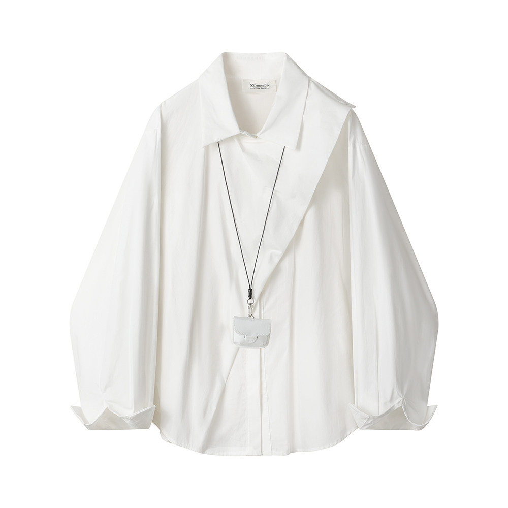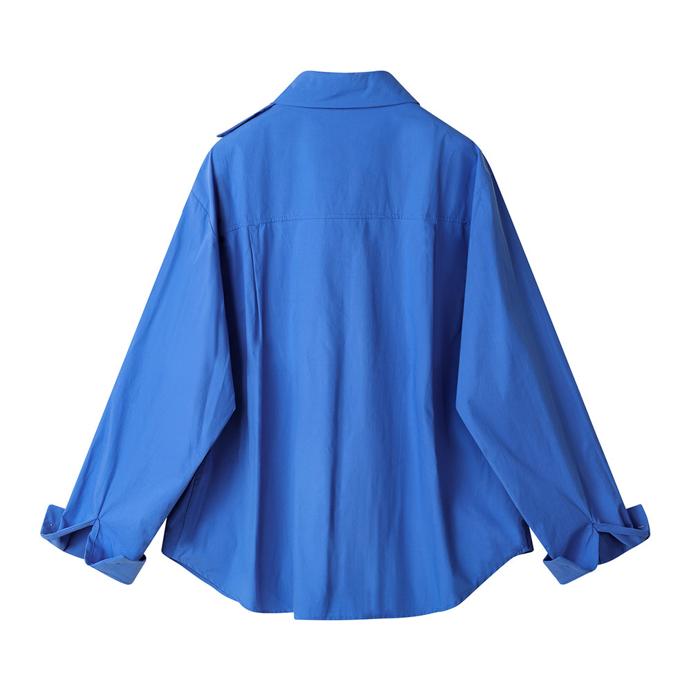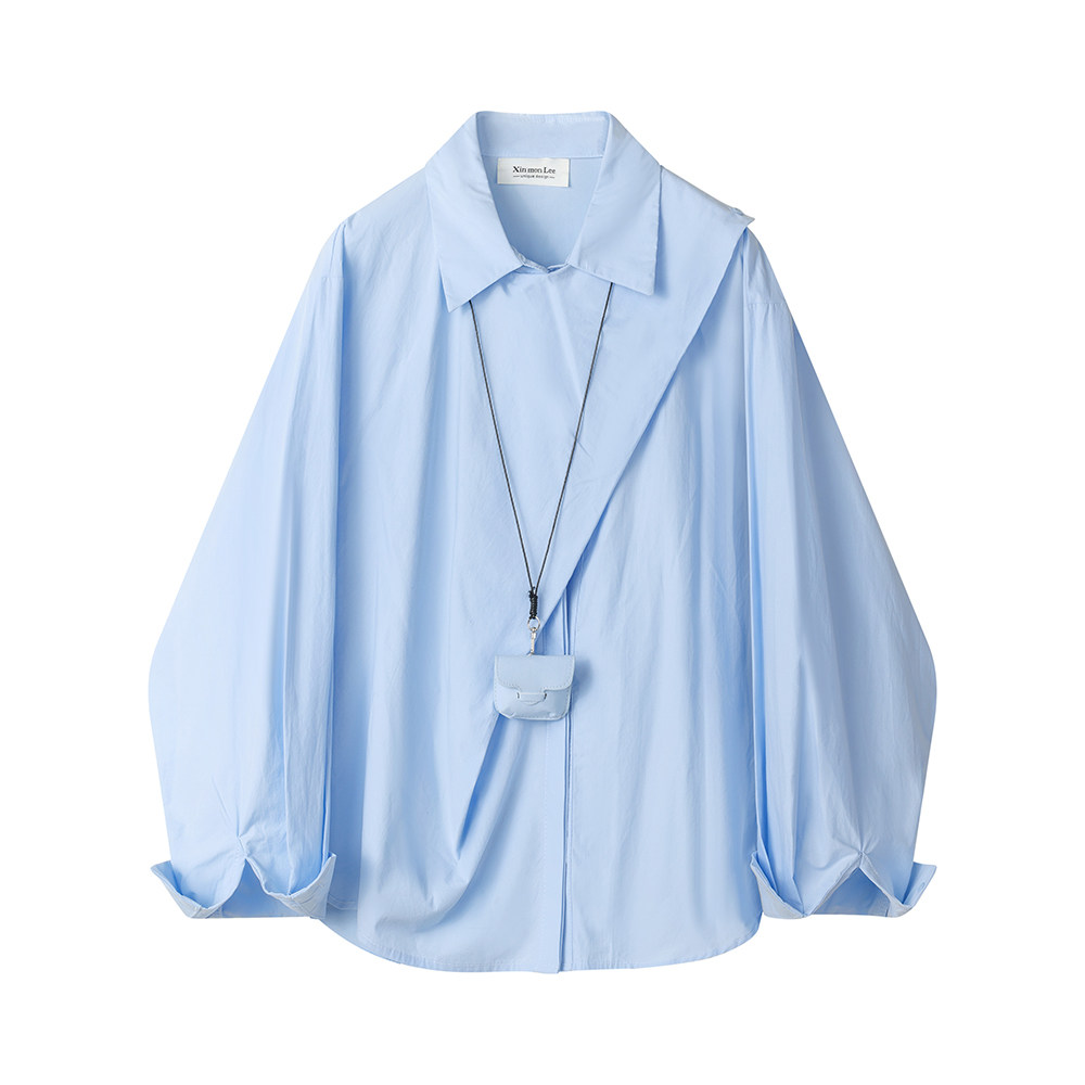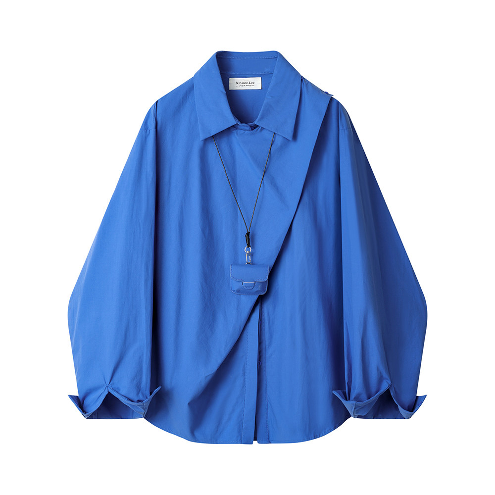 XinmonLee別致高級感輕奢風藍色襯衫2025春季法式氣質設計感襯衣