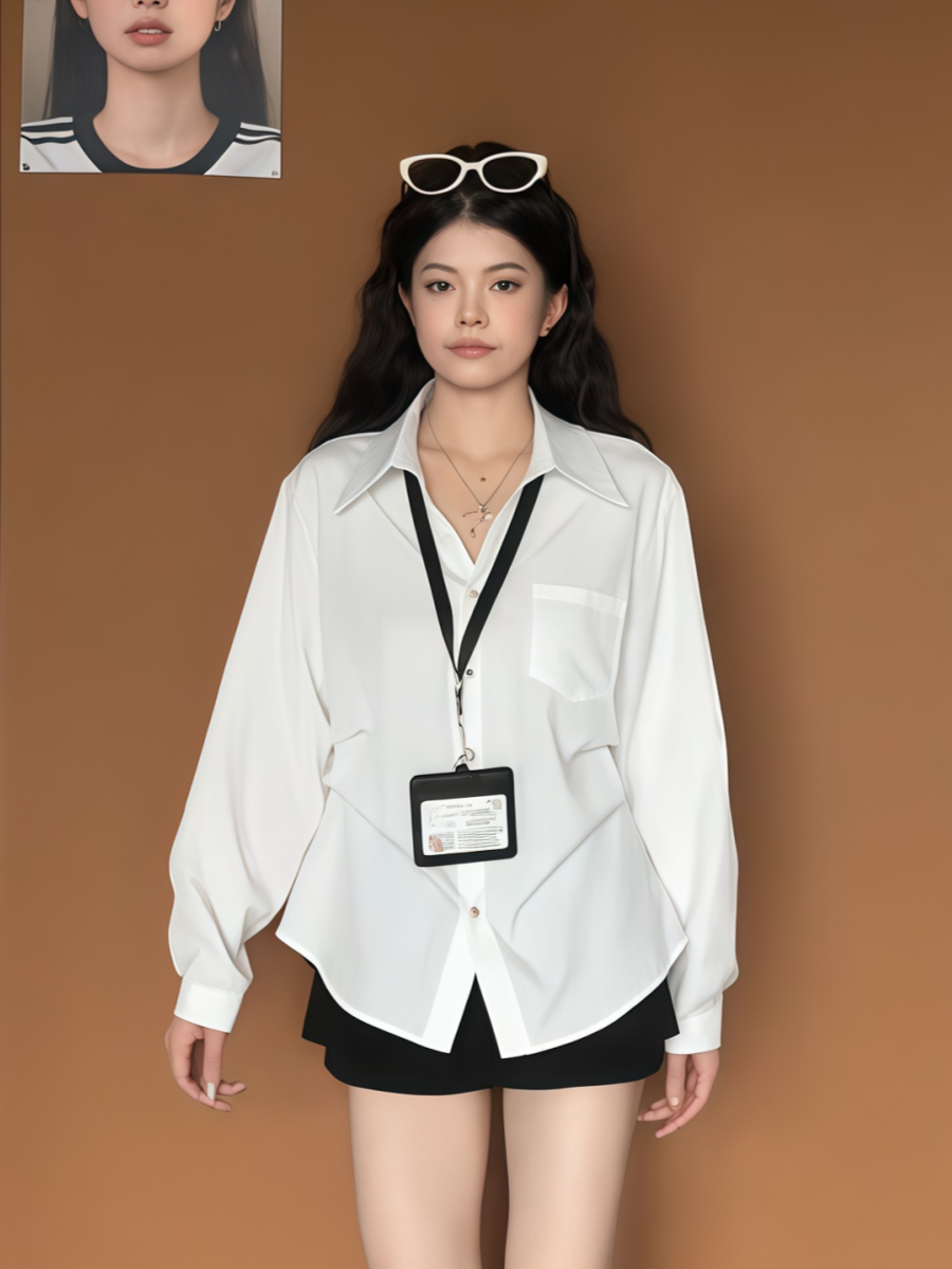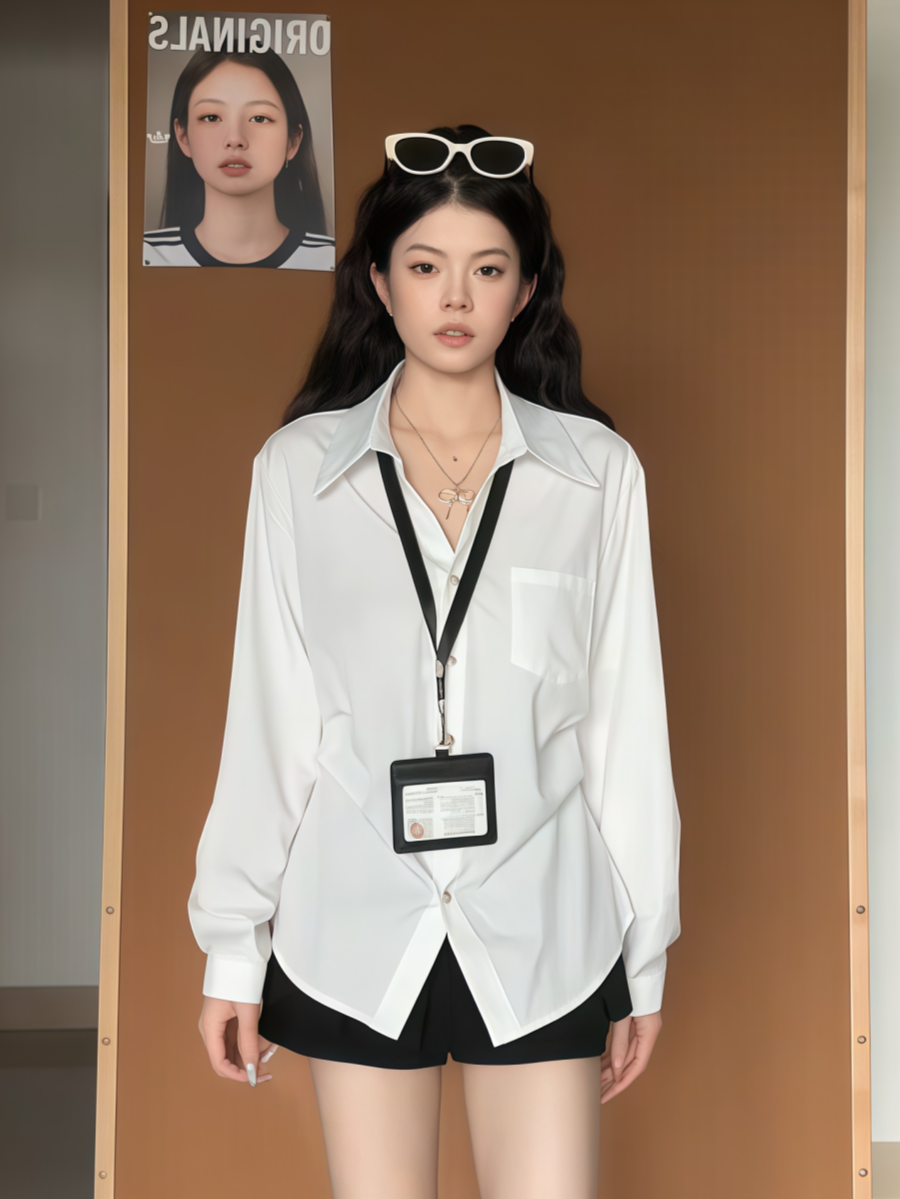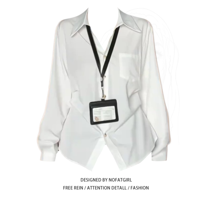 大碼胖MM復古高智風白色長袖繙領襯衫女早秋季百搭收腰設計感上衣