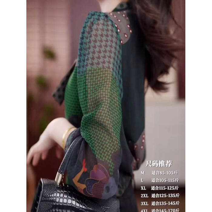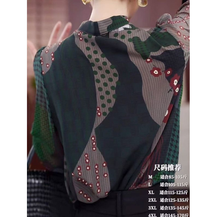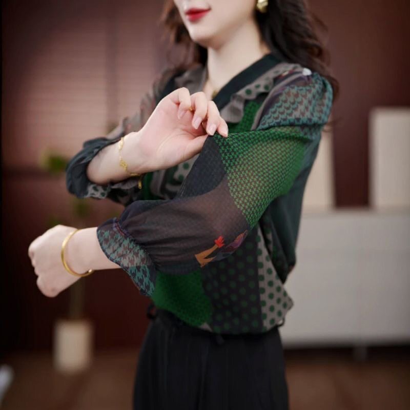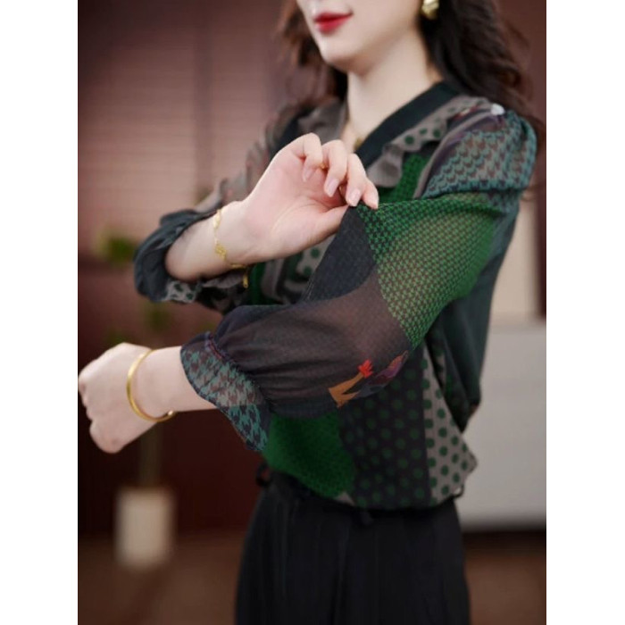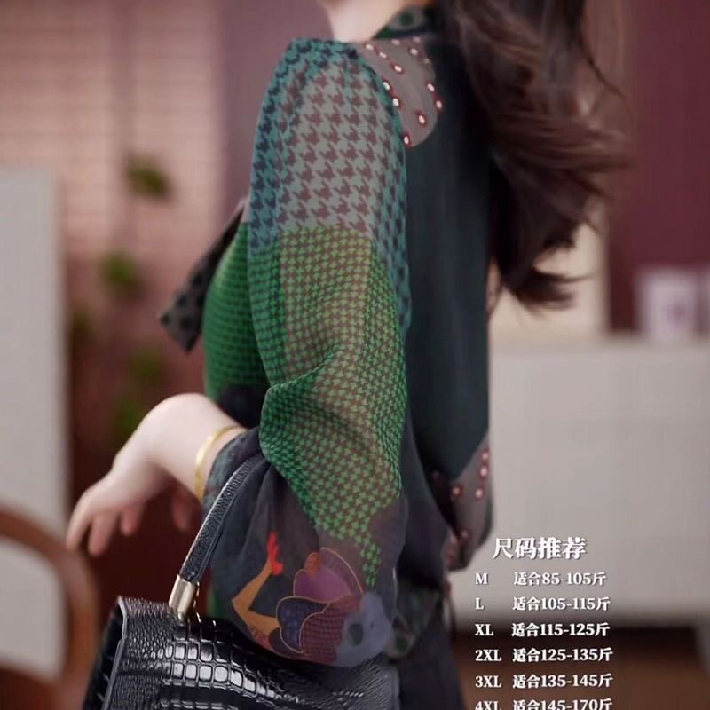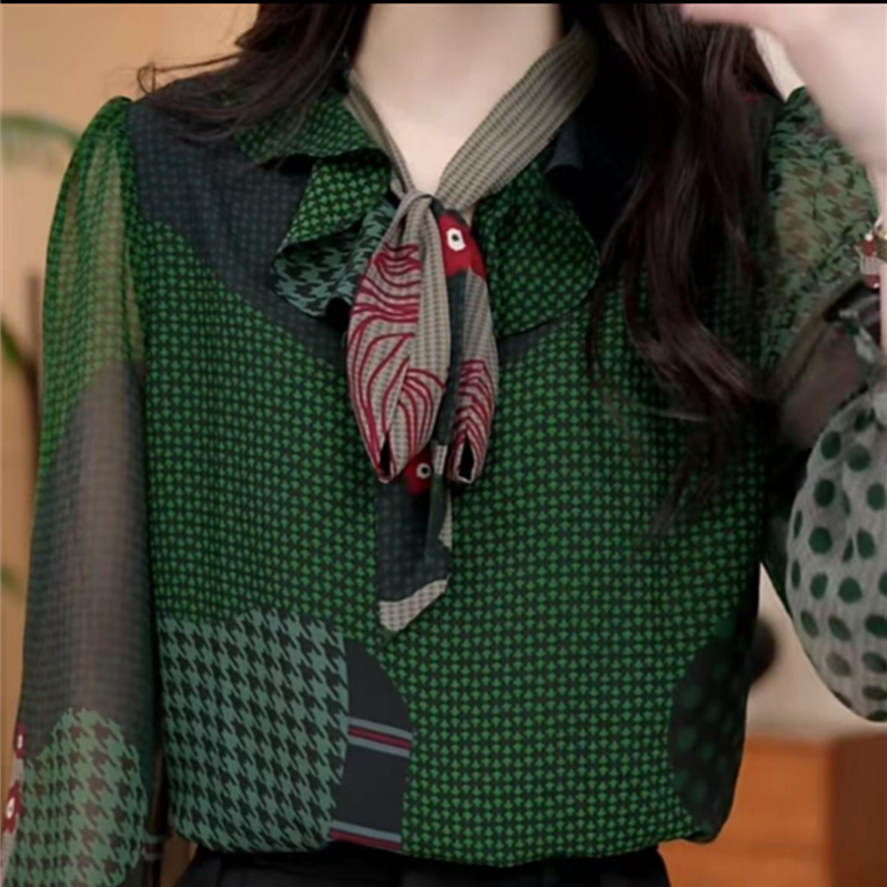 2025春季新款氣質V領飄帶撞色上衣氣質百搭寬鬆中年女裝套頭襯衣