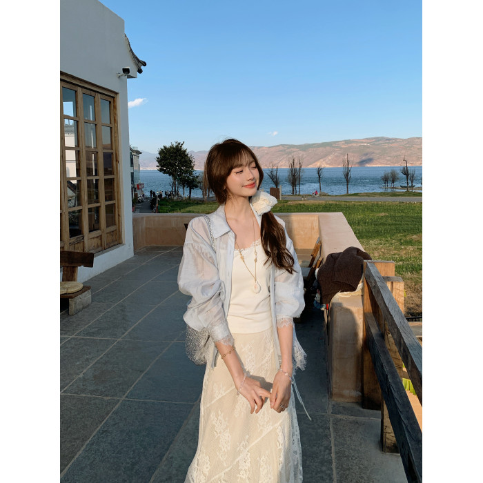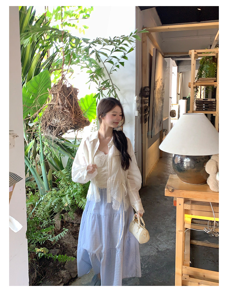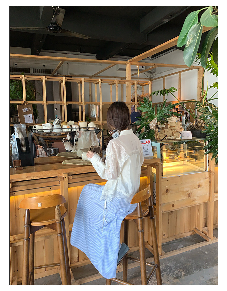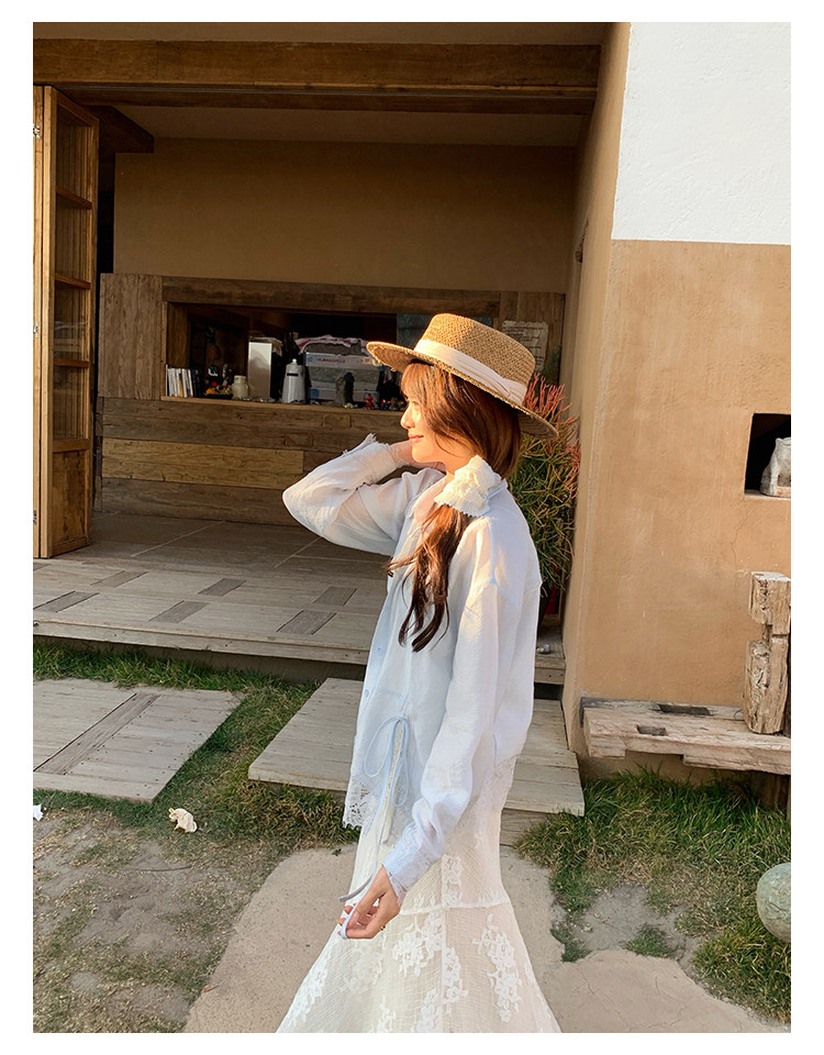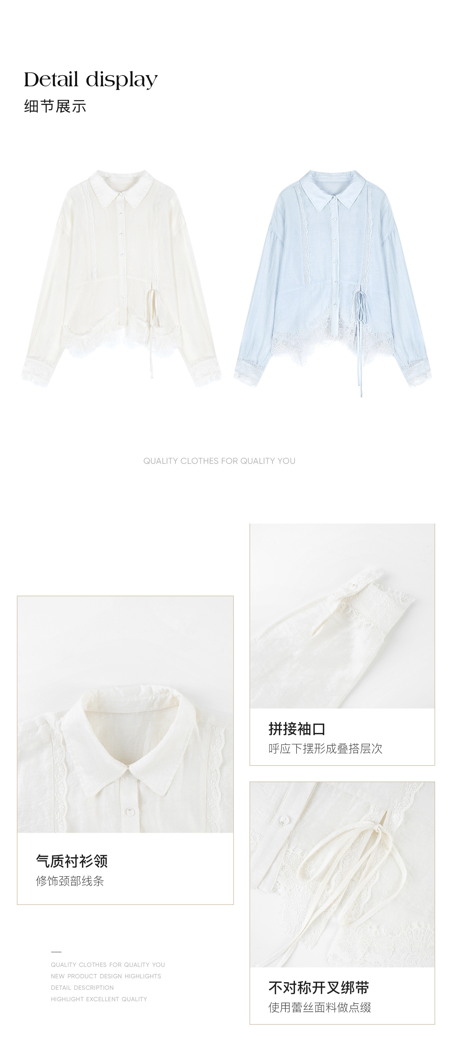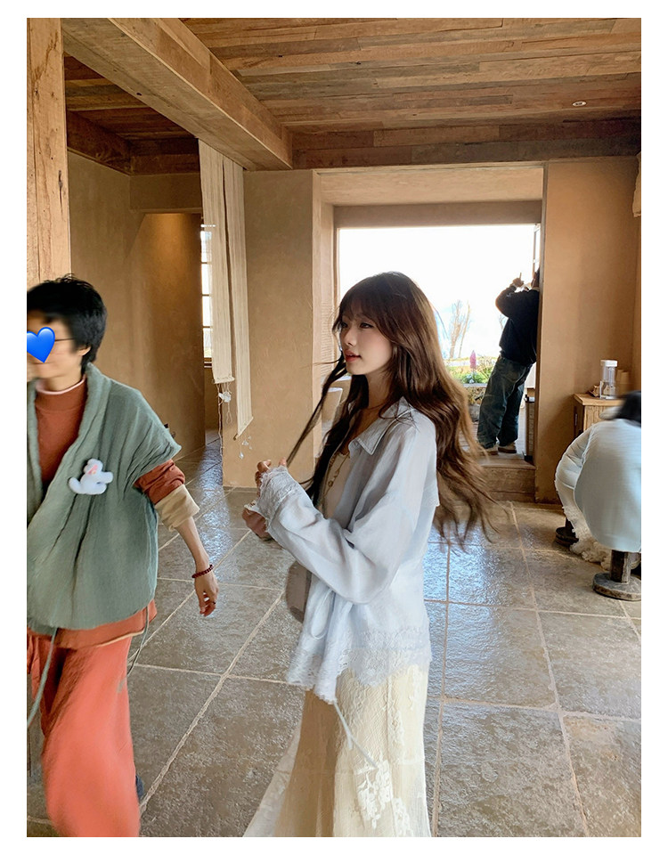 切糕自製小個子春季早春新款上衣女設計感拼接蕾絲長袖襯衫襯衣
