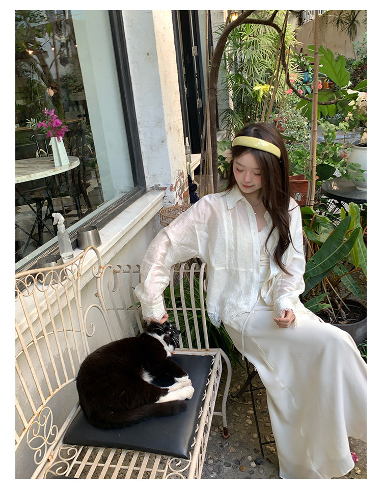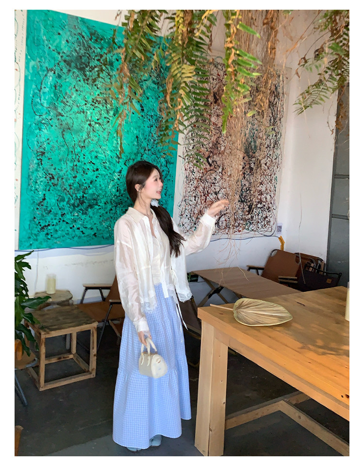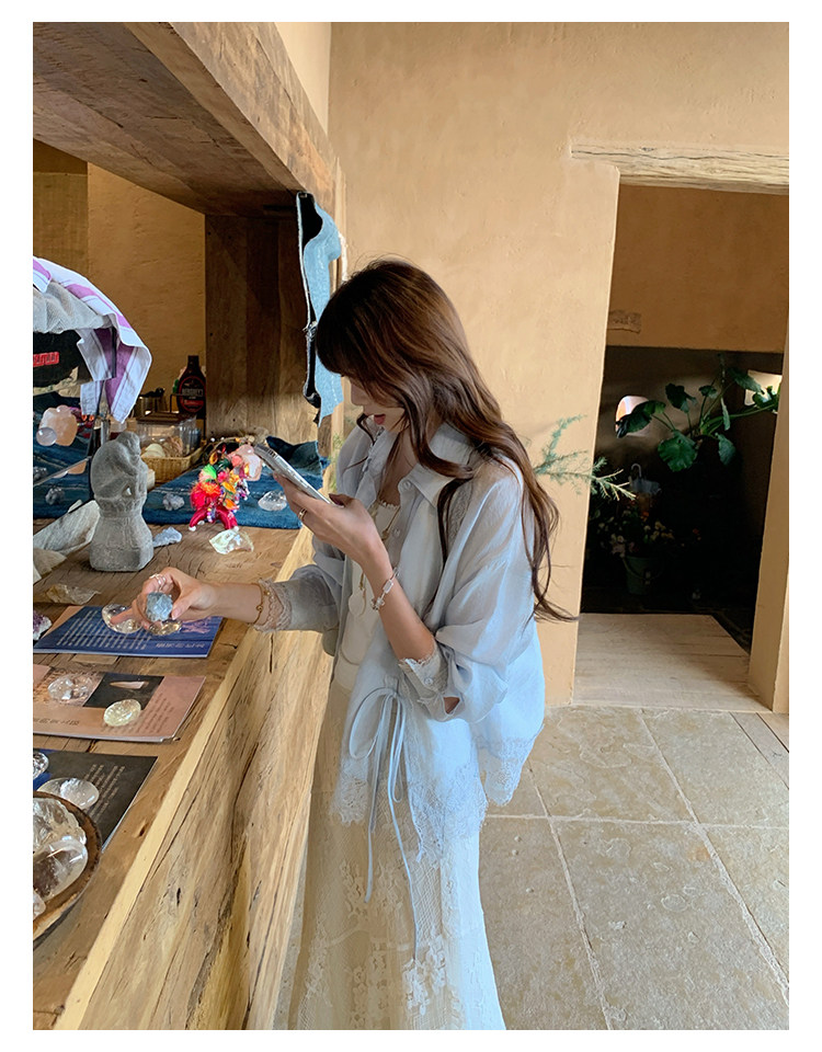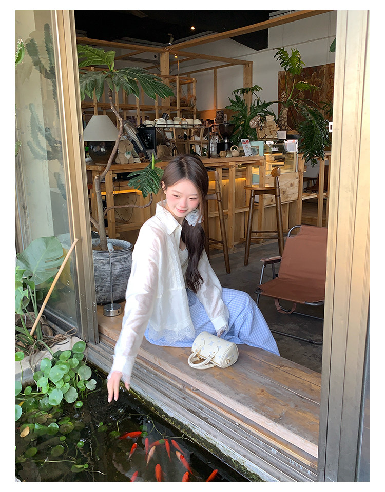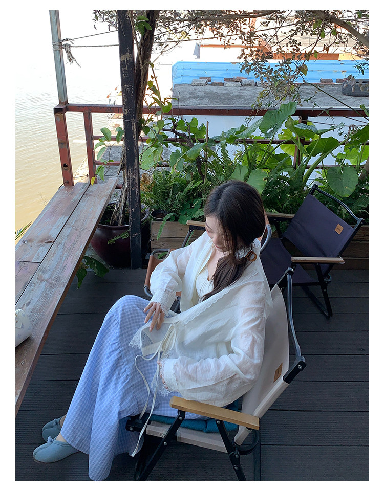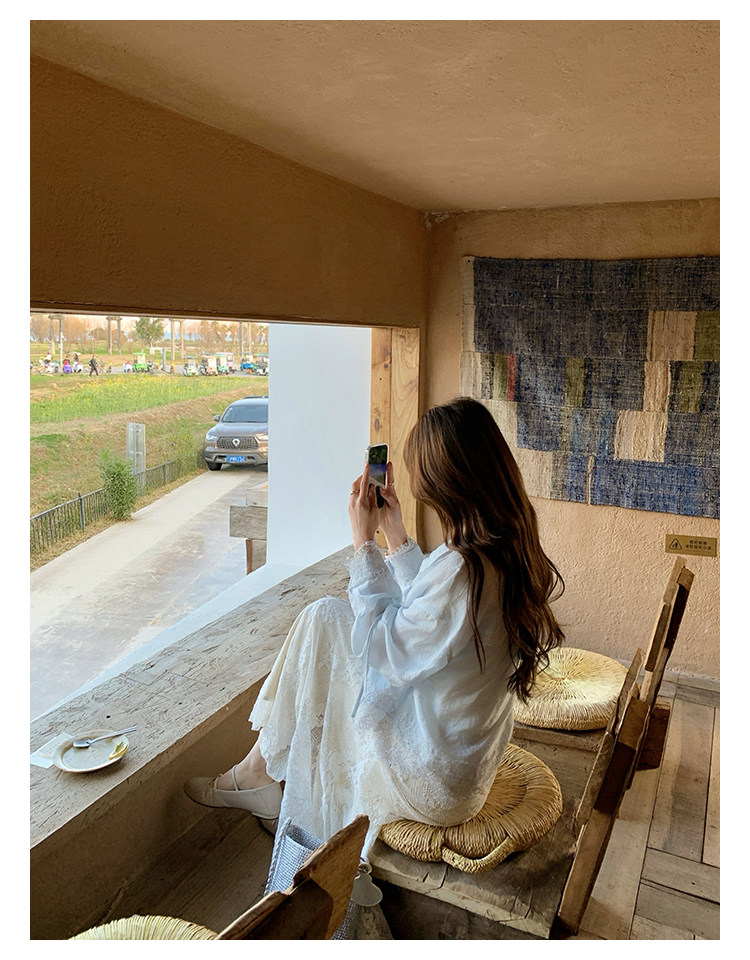 切糕自製小個子春季早春新款上衣女設計感拼接蕾絲長袖襯衫襯衣