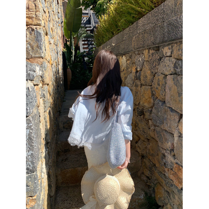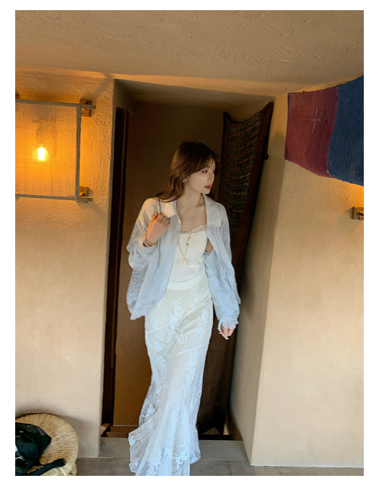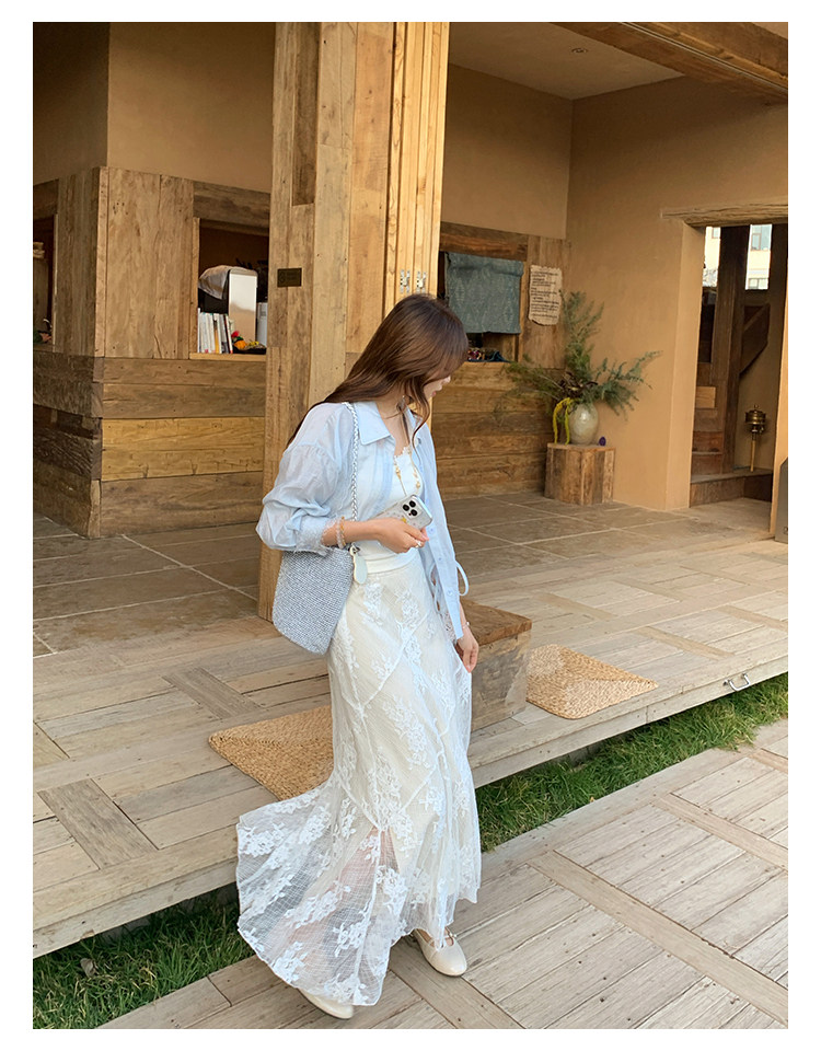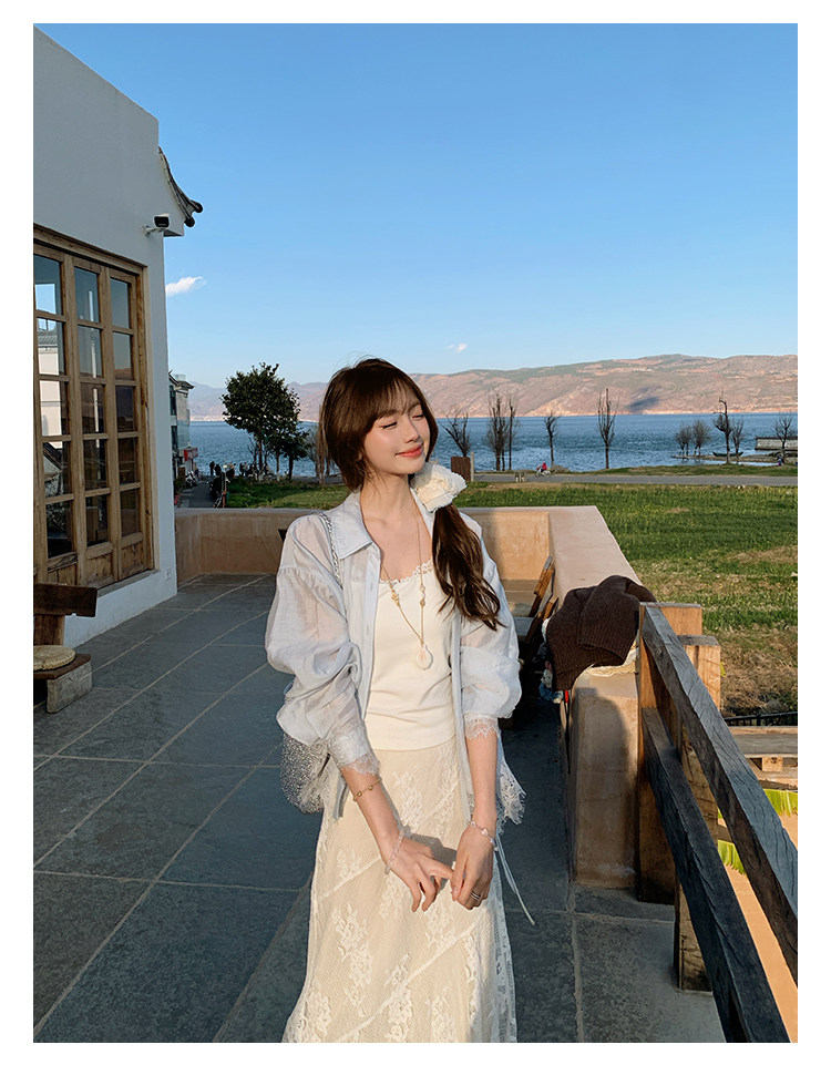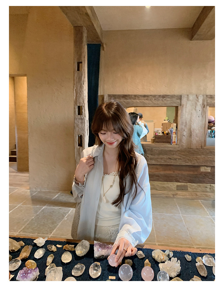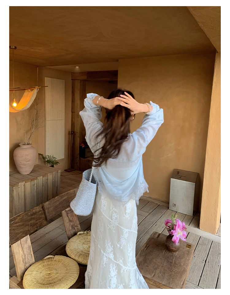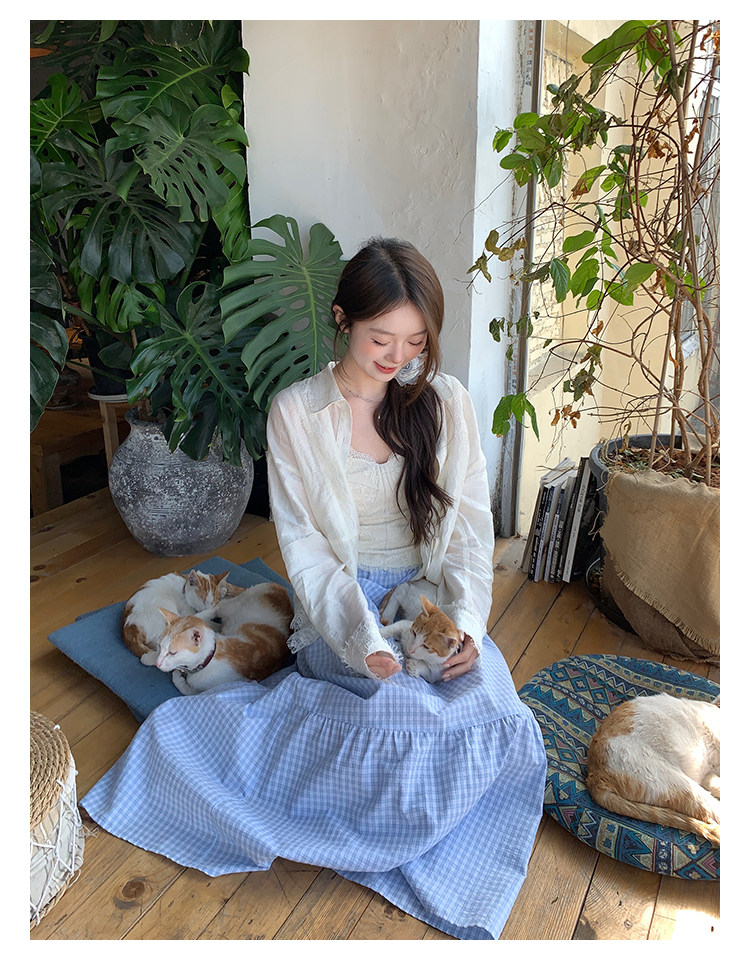 切糕自製小個子春季早春新款上衣女設計感拼接蕾絲長袖襯衫襯衣