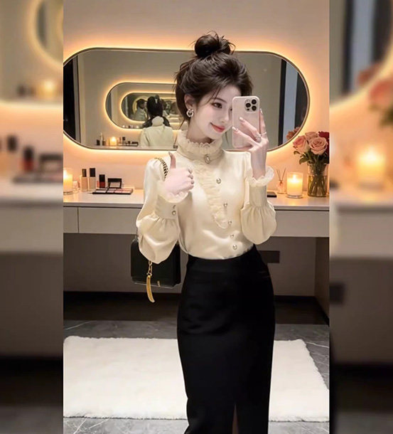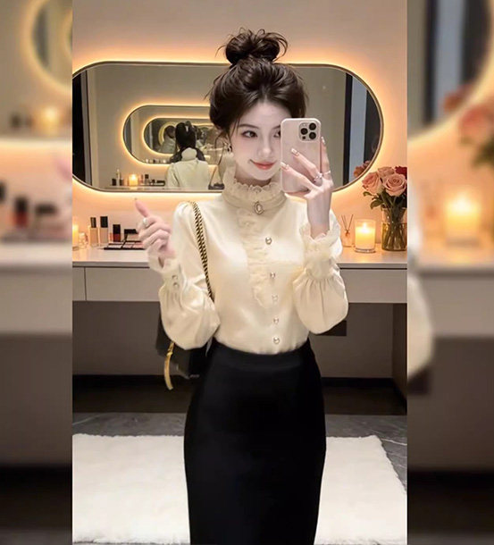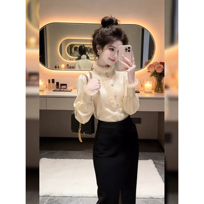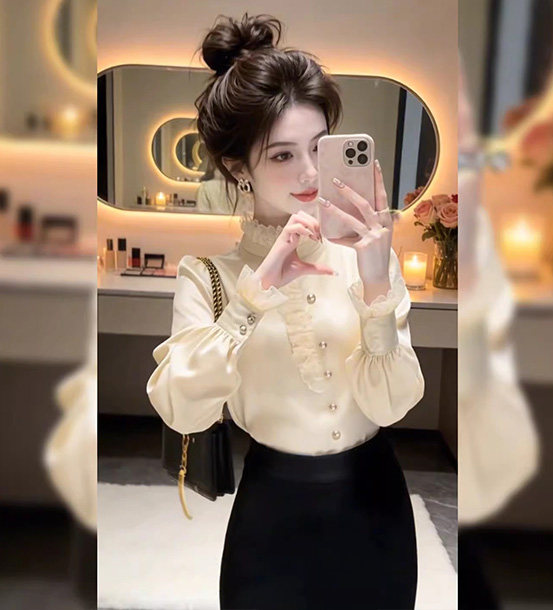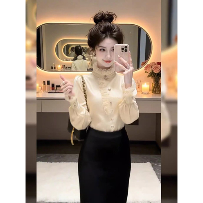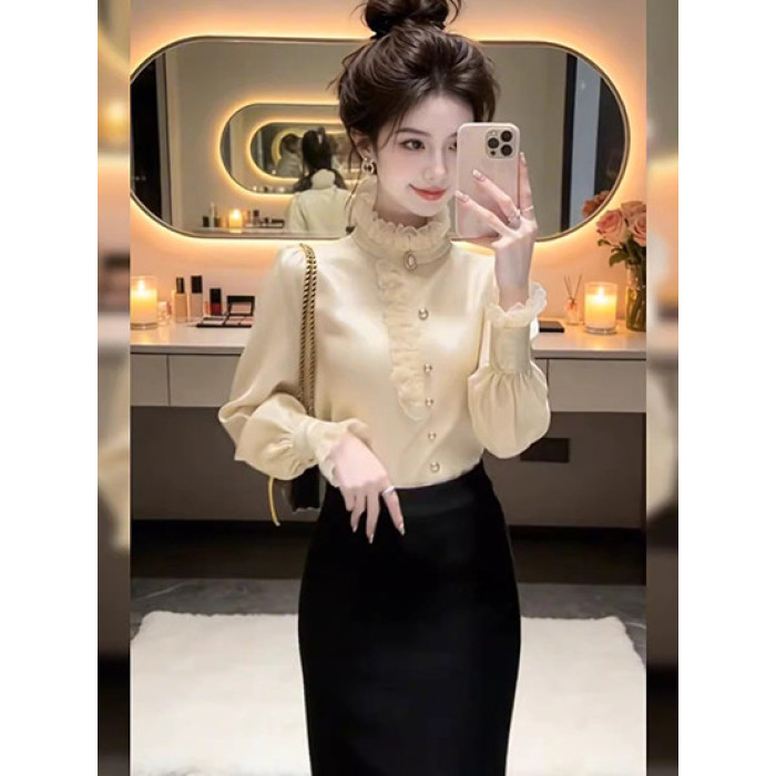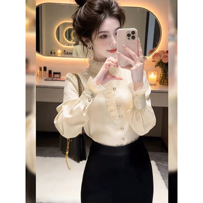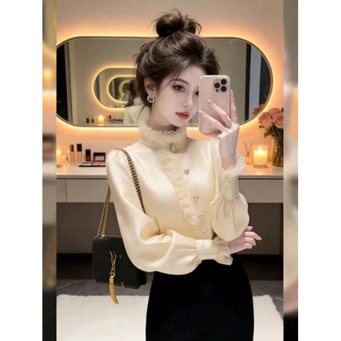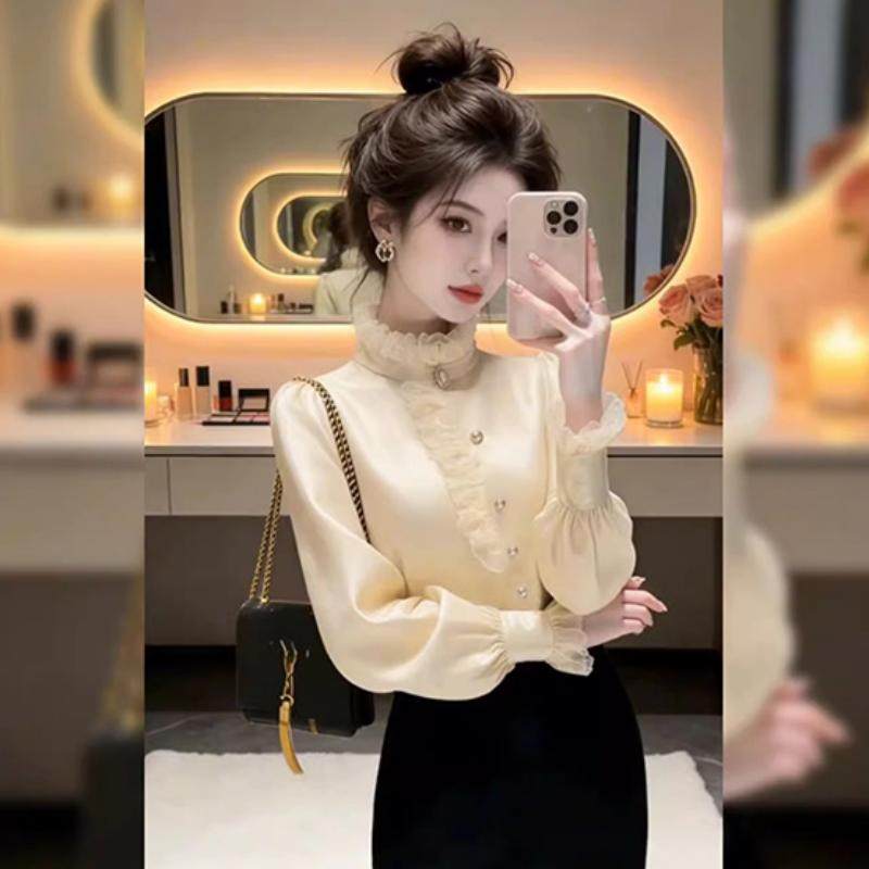 禦姐氣質性感蕾絲緞面長袖襯衫女裝2026春季新款休閒漂亮新年上衣