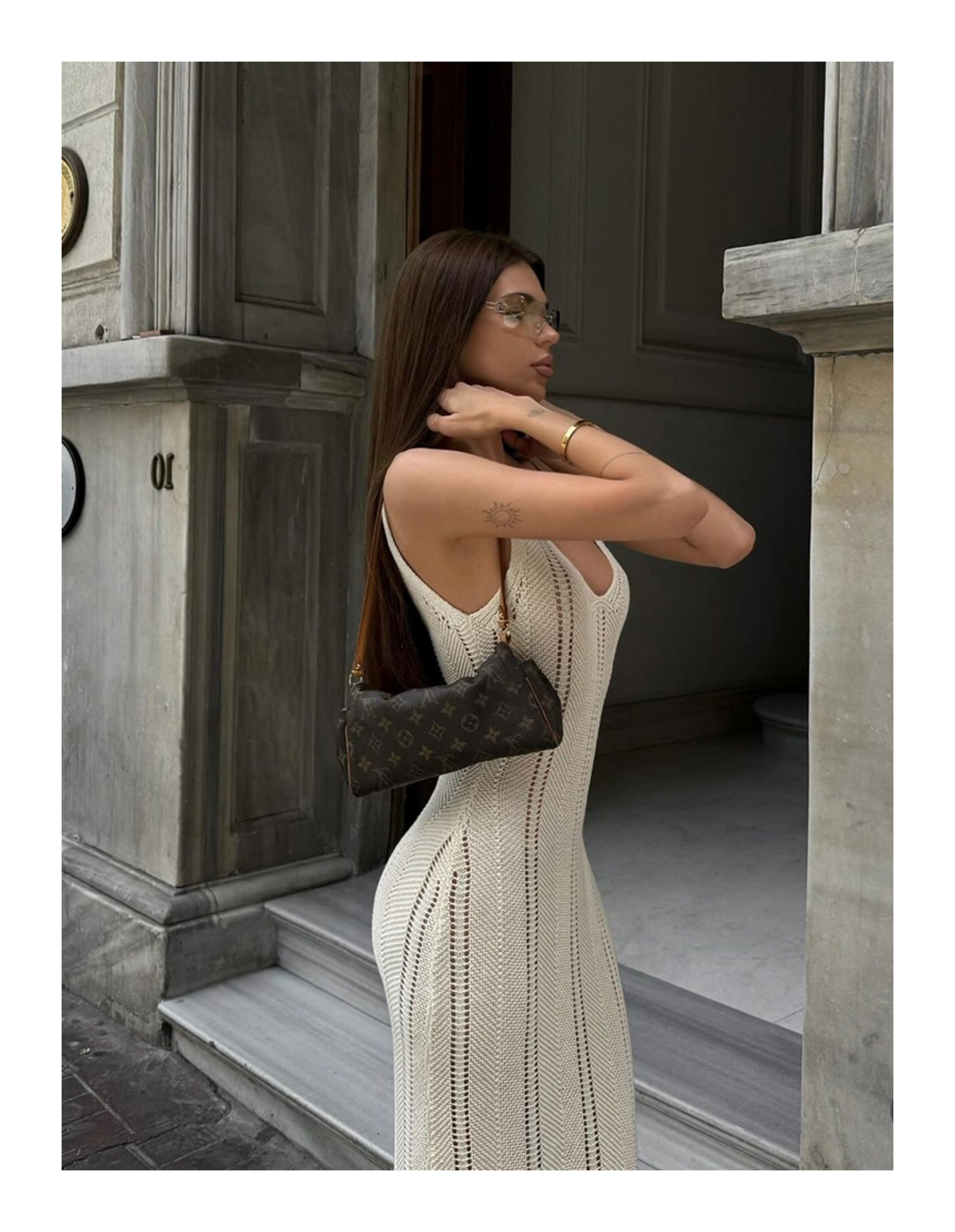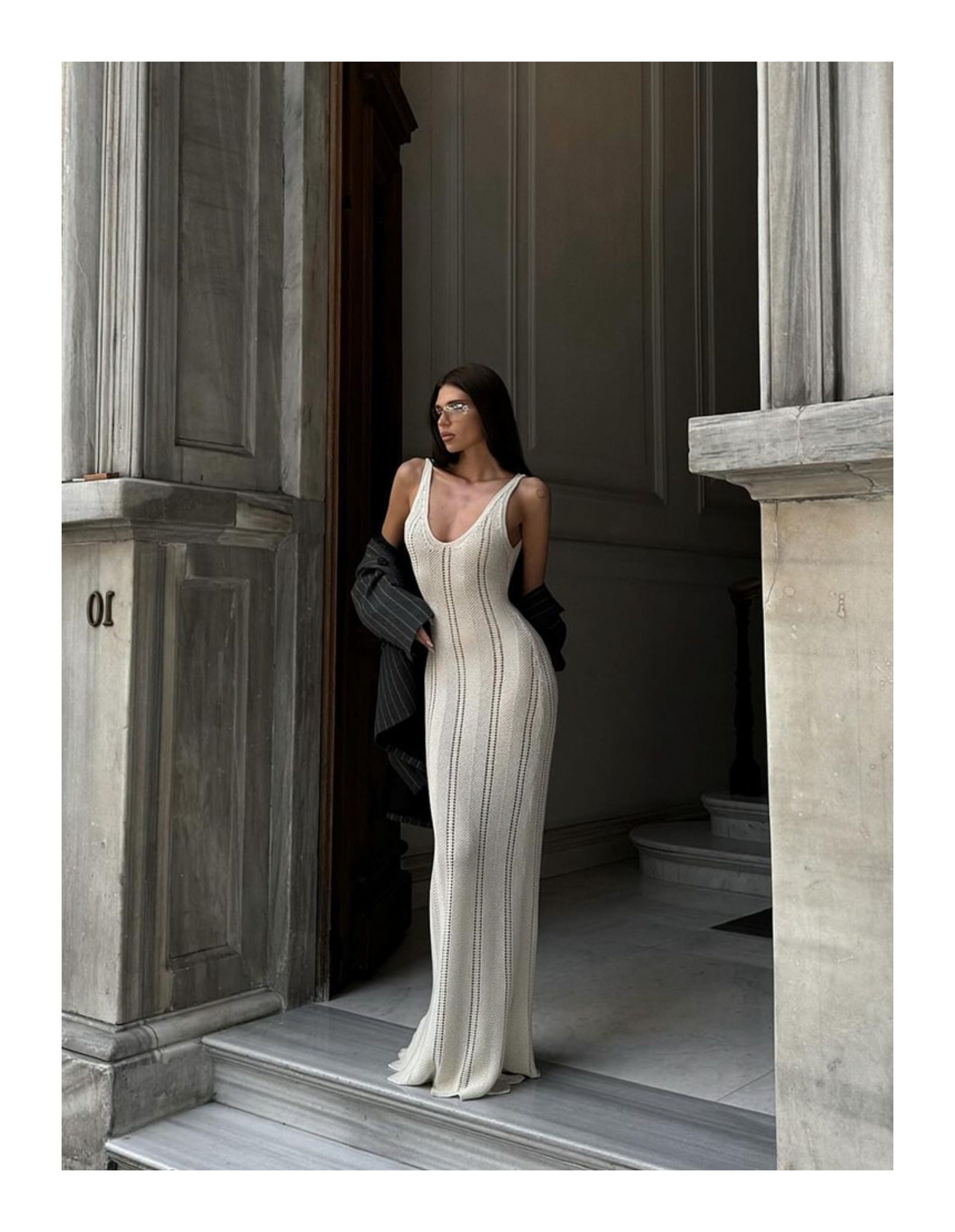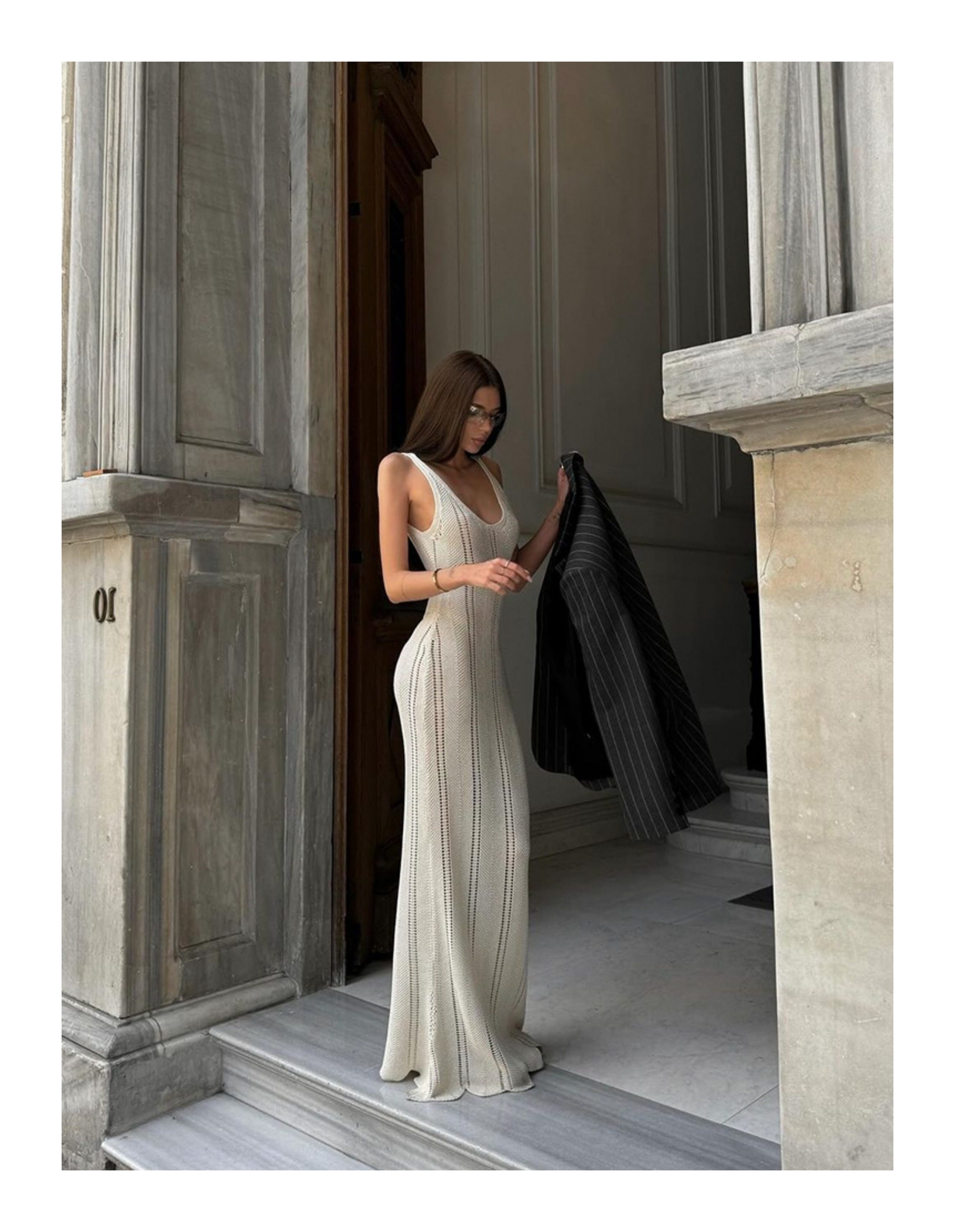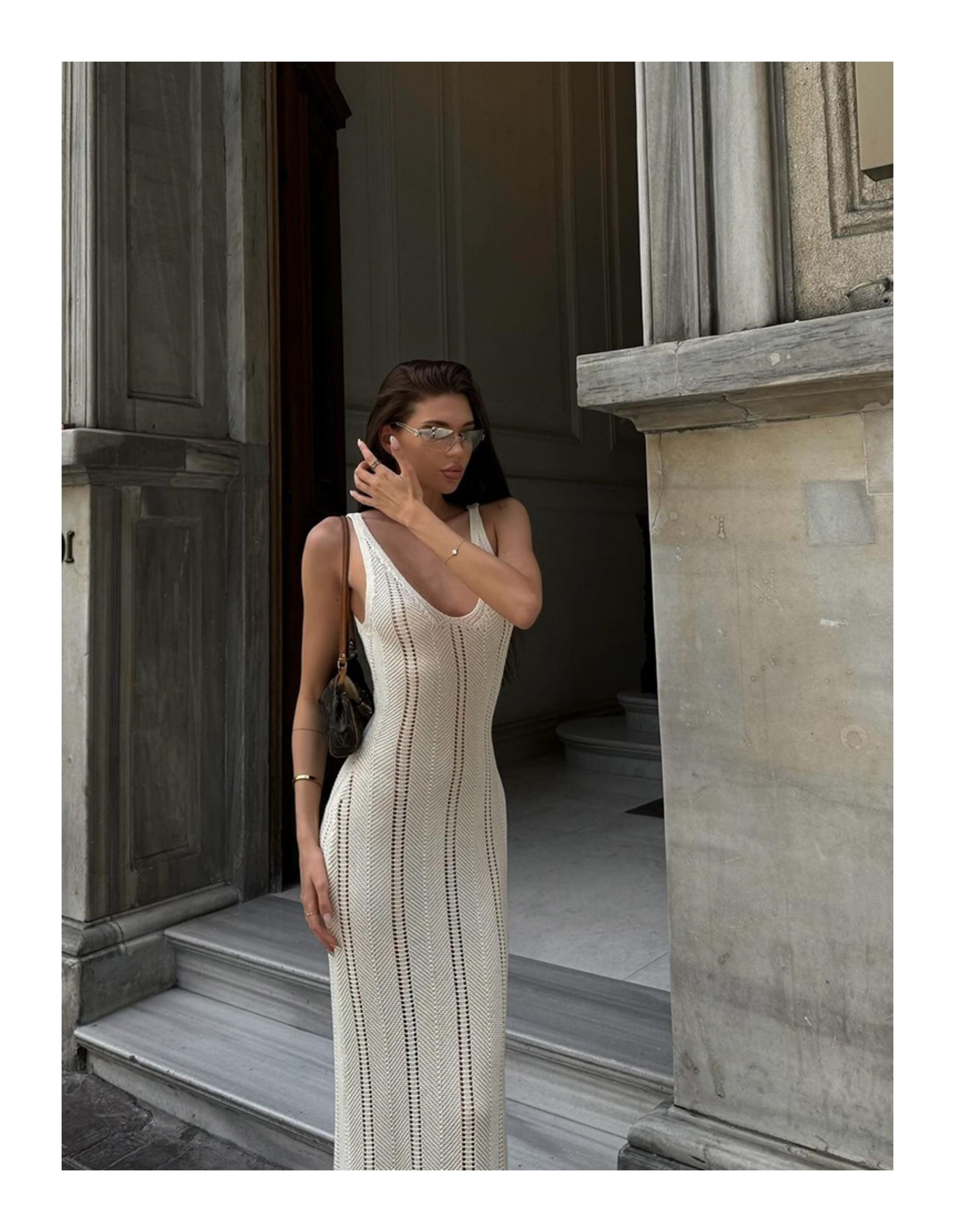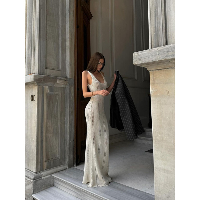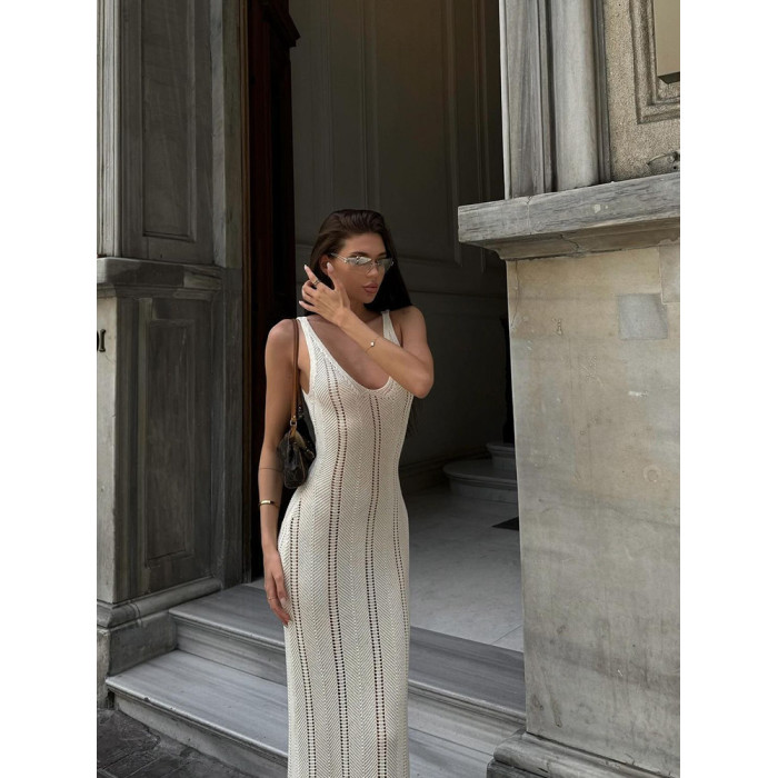 美式辣妹風性感露背深v吊帶連衣裙女修身顯瘦海邊度假針織長裙