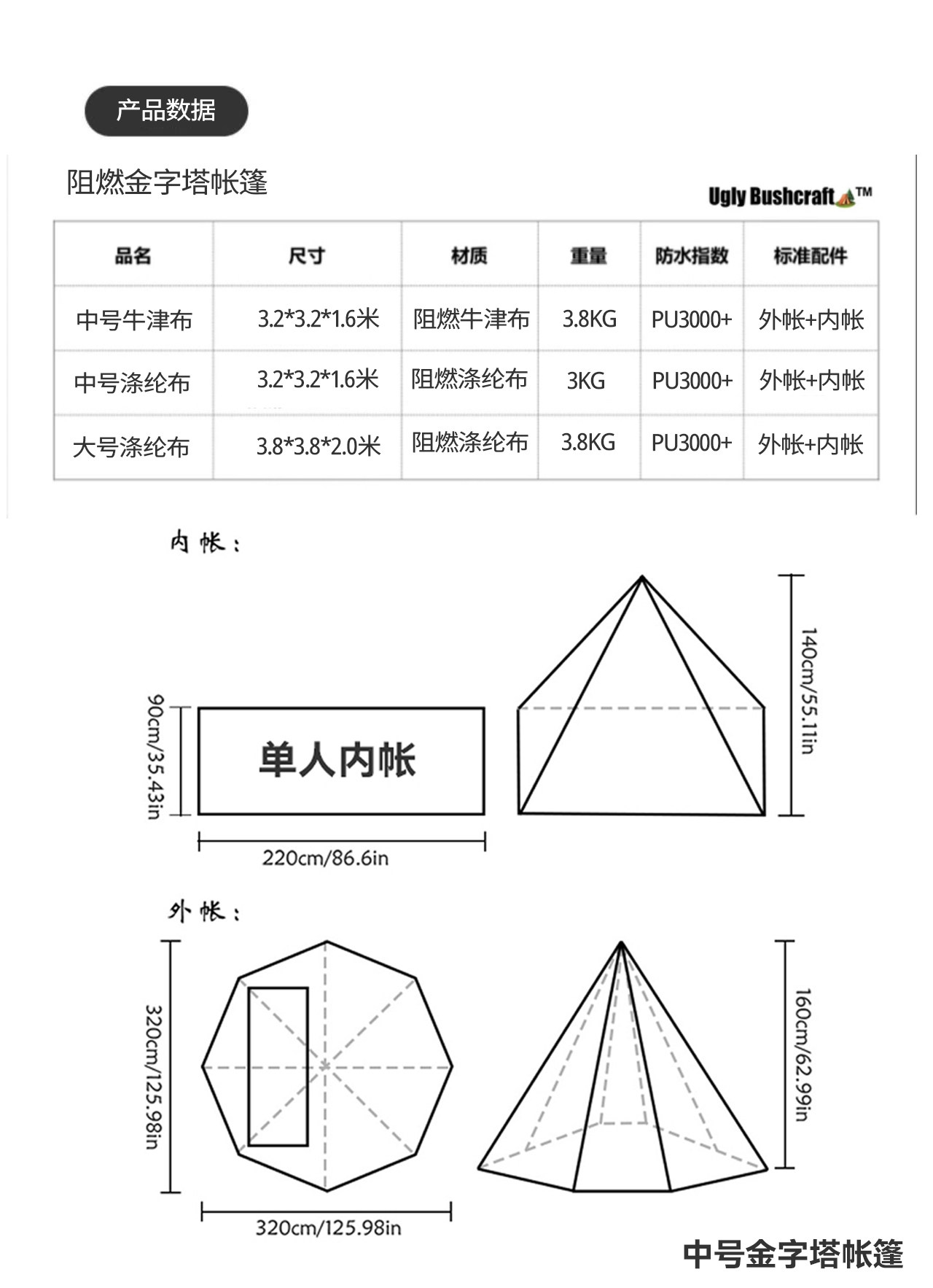 戶外BC露營金字塔帳篷炎帳輕量化柴火爐帳篷塔帳摩旅登山徒步