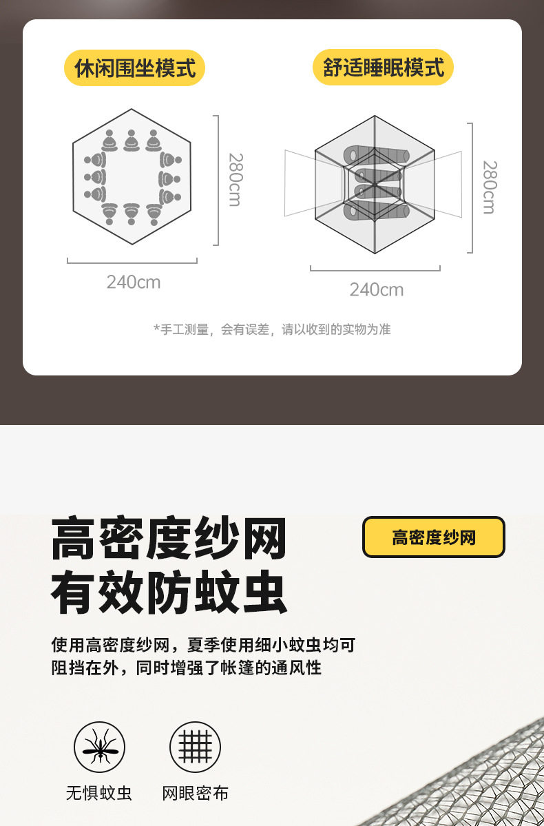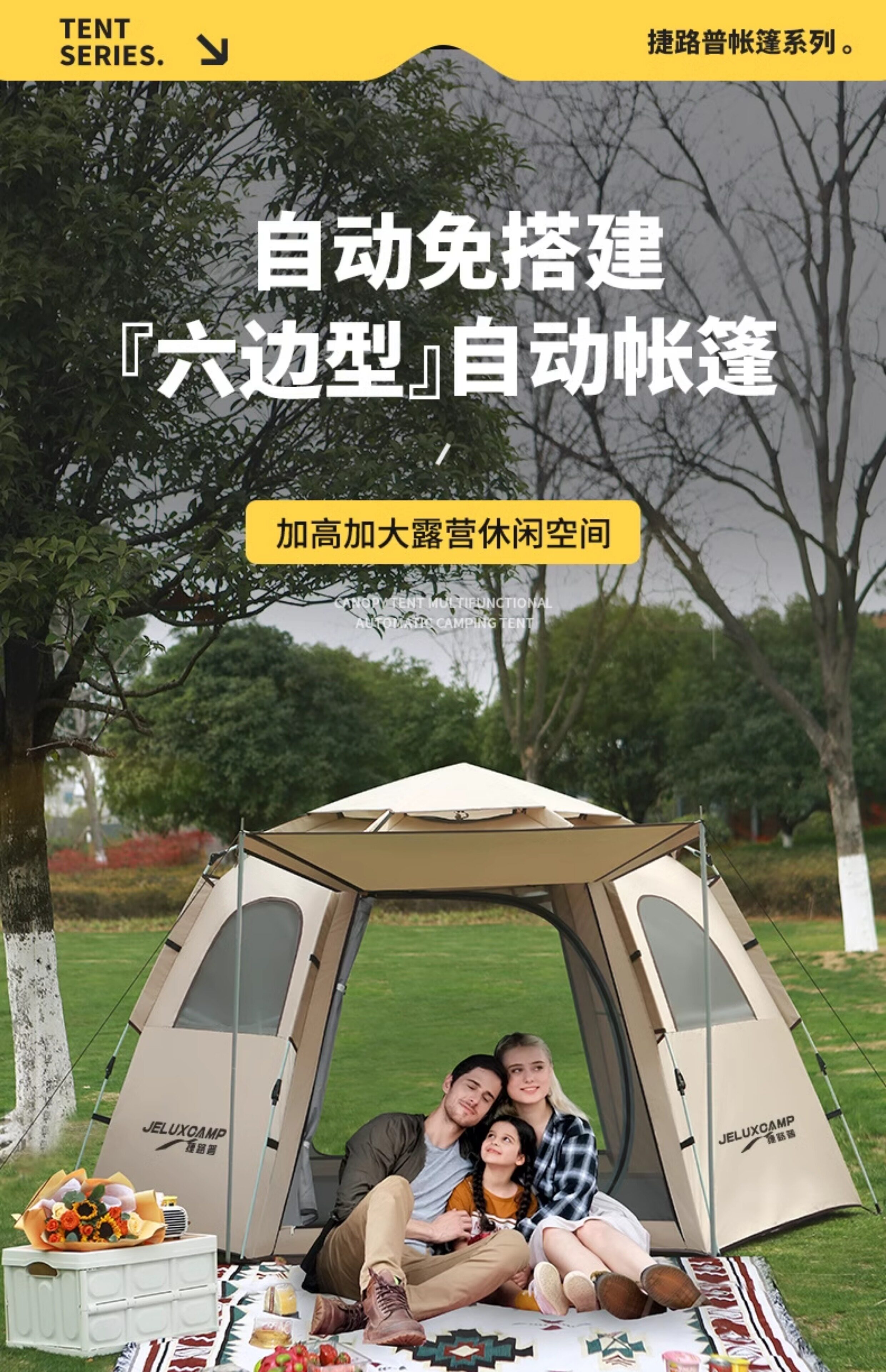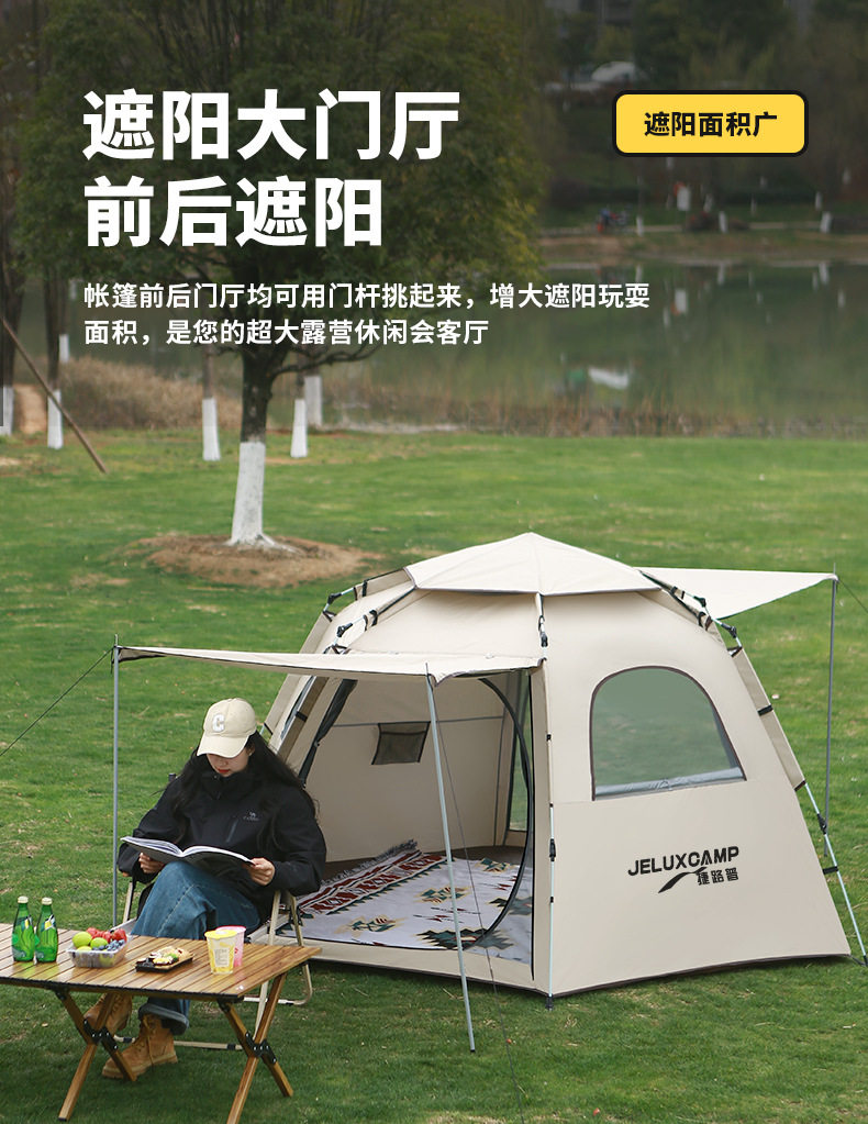 帳篷戶外折曡全自動防雨流沙金六角帳加厚露營裝備公園郊遊野餐帳