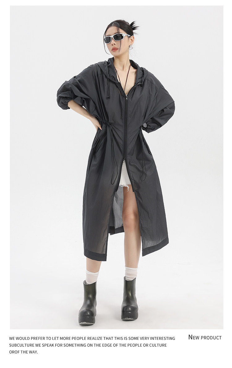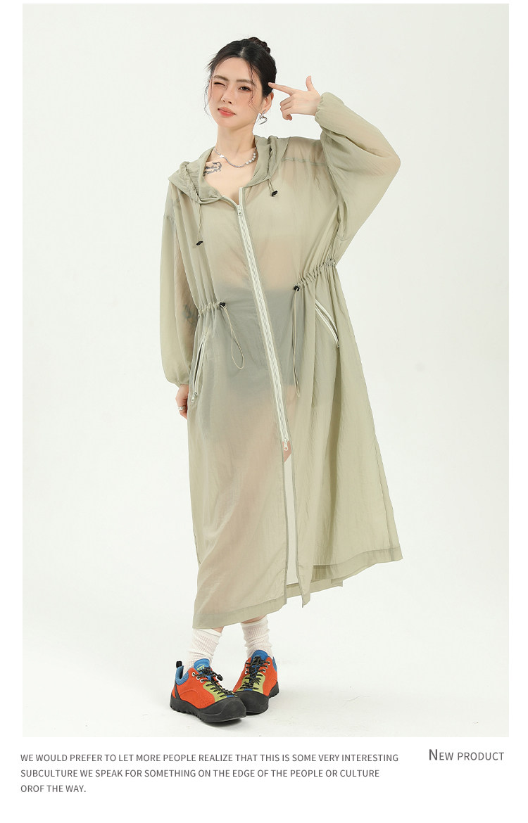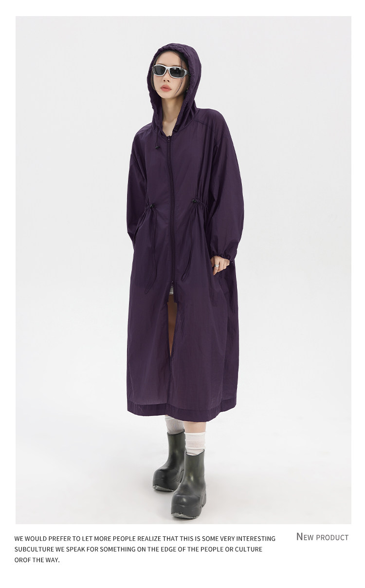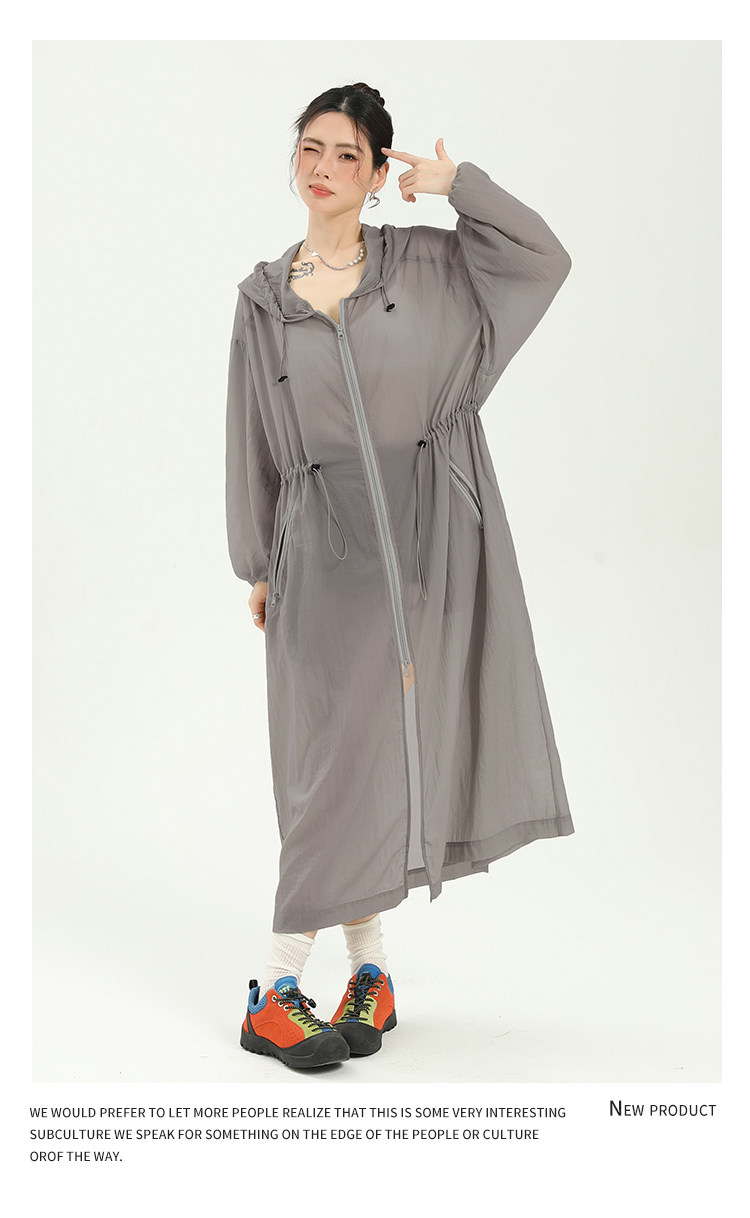 長款防曬衣女輕薄透氣過膝防曬服2025新款夏季寬鬆薄款外套女連帽
