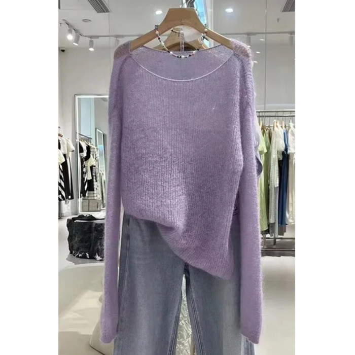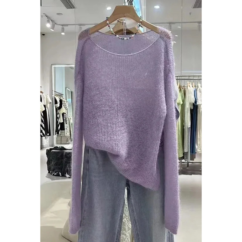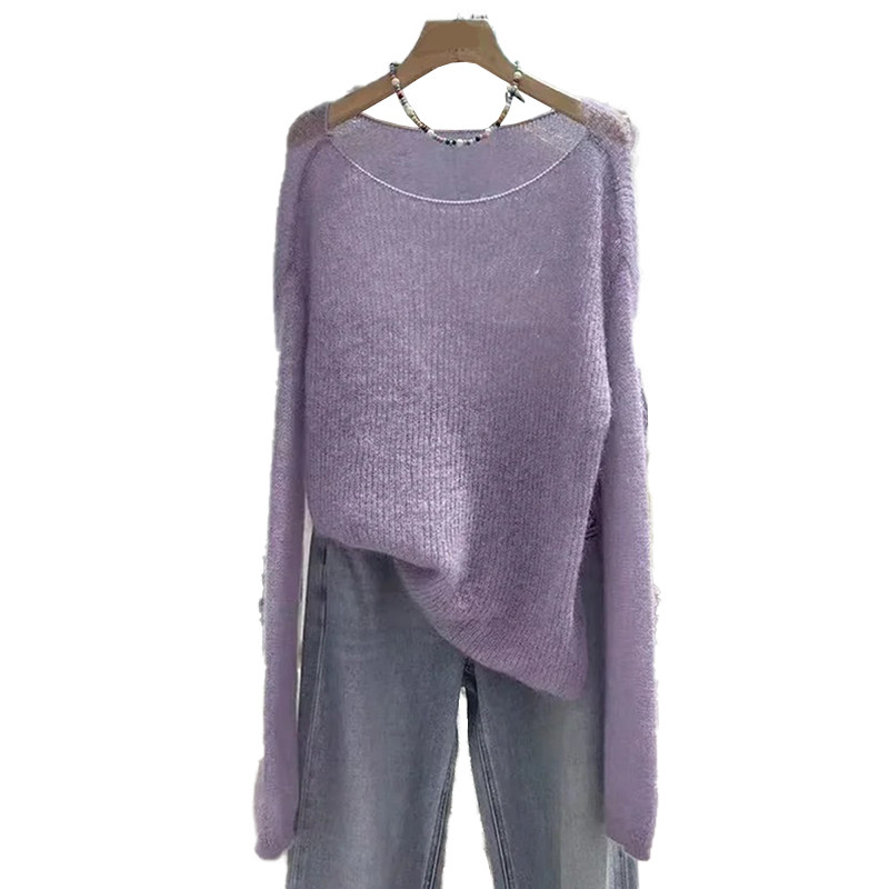 歐洲站高品質紫色馬海毛針織衫2025春秋新款氣質優雅軟糯套頭毛衣