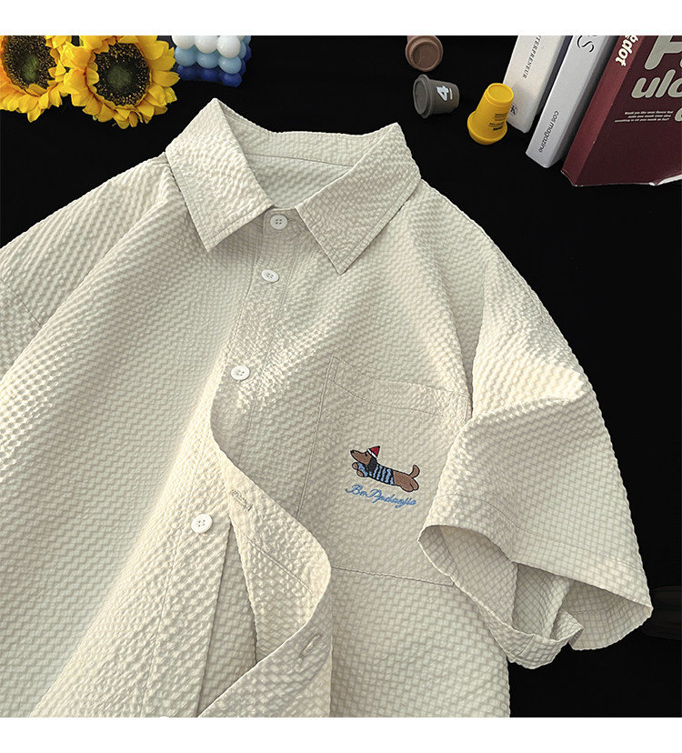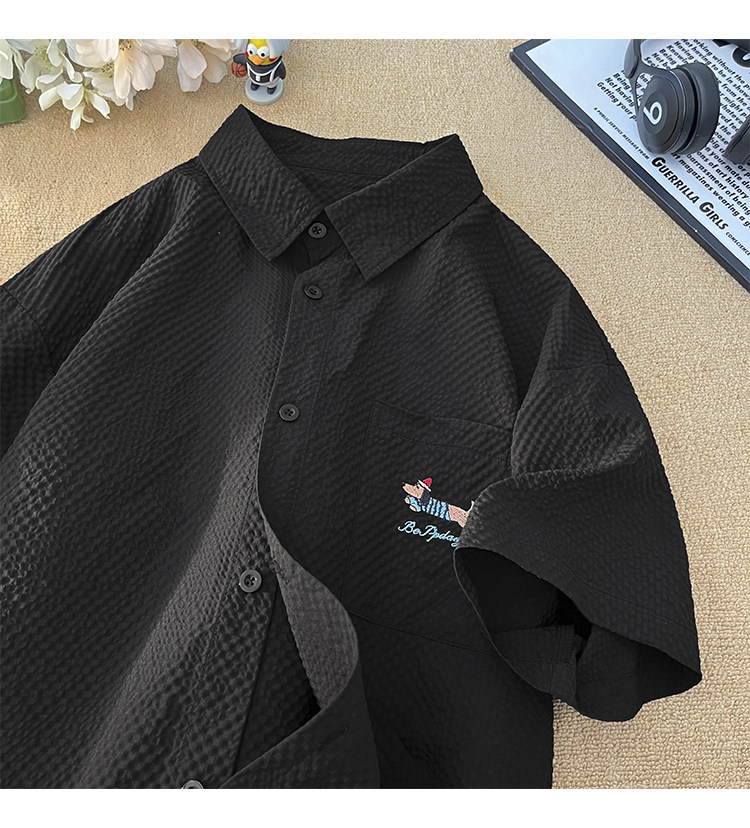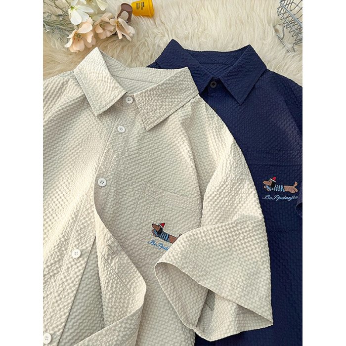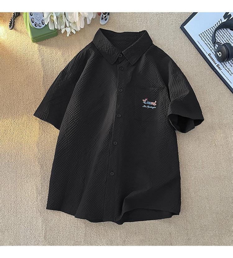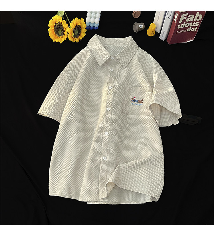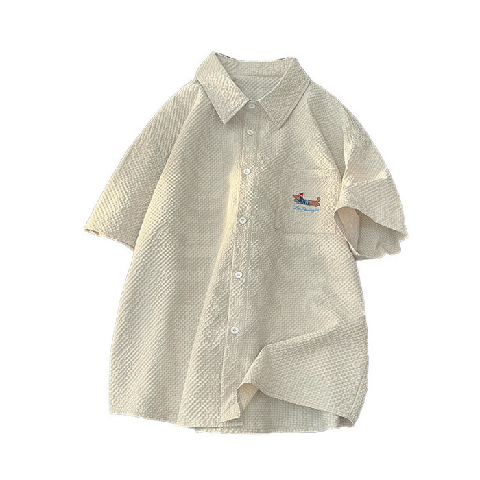 夏季港風復古短袖襯衫女胖mm大碼寬鬆顯瘦學生休閒百搭襯衣外套潮