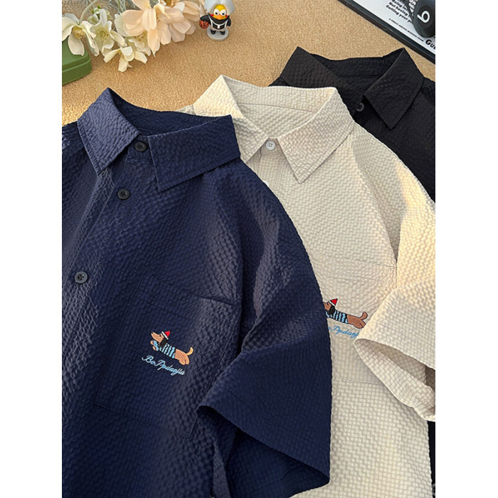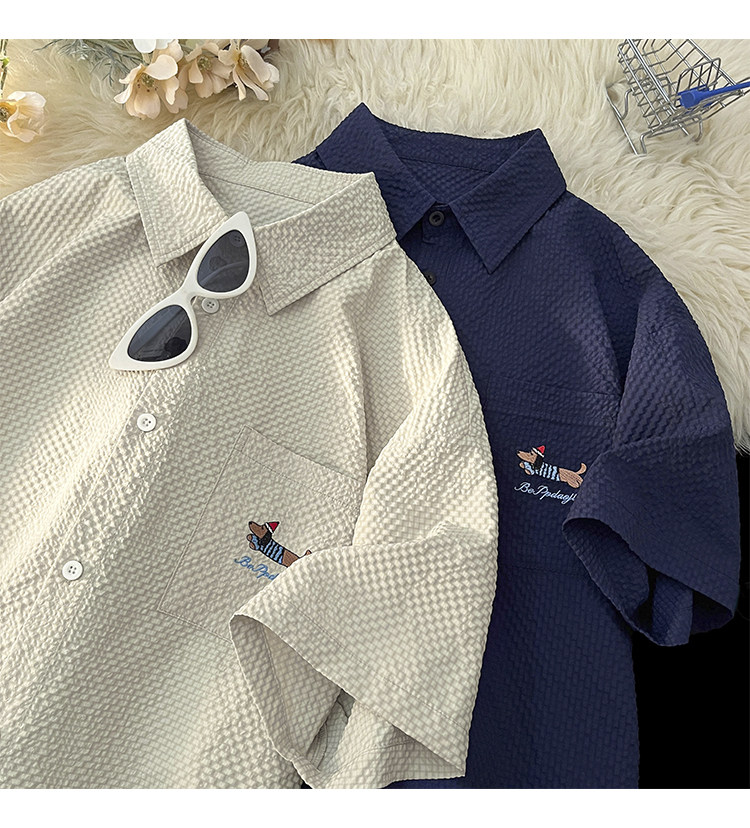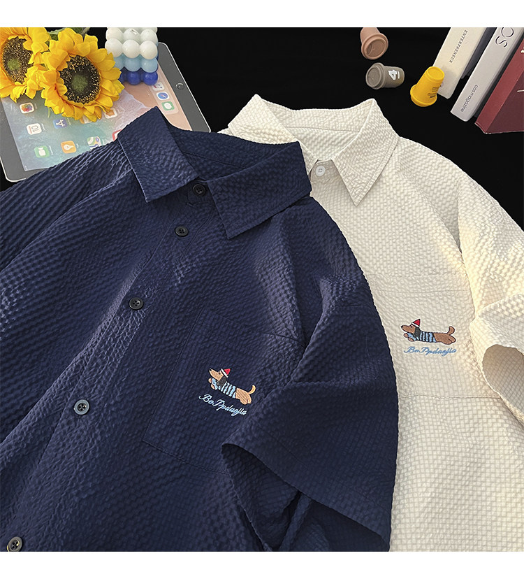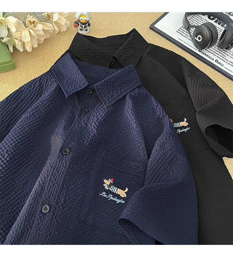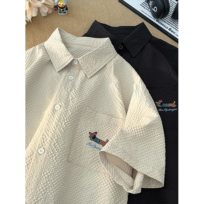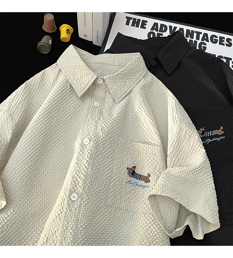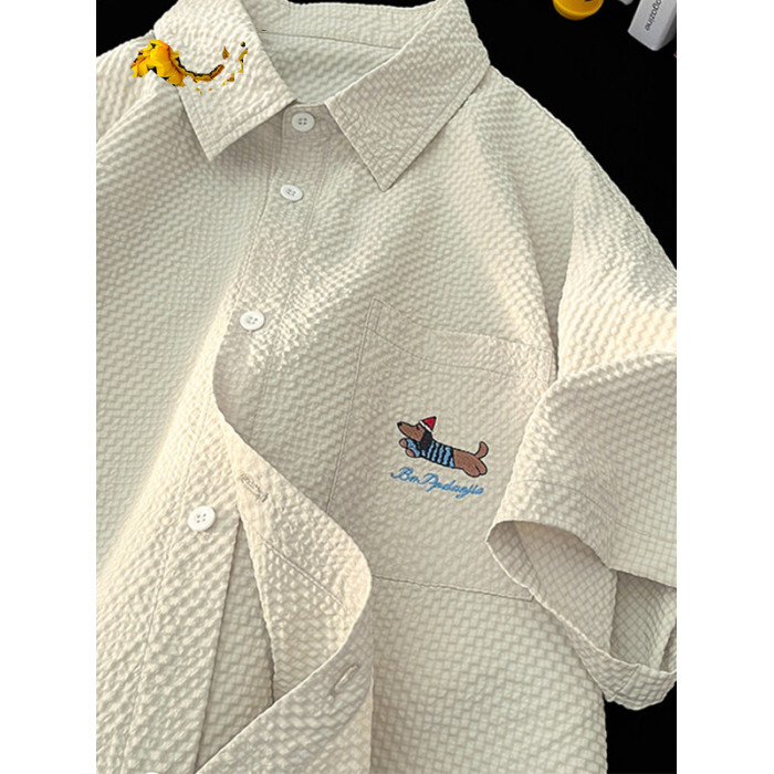 夏季港風復古短袖襯衫女胖mm大碼寬鬆顯瘦學生休閒百搭襯衣外套潮