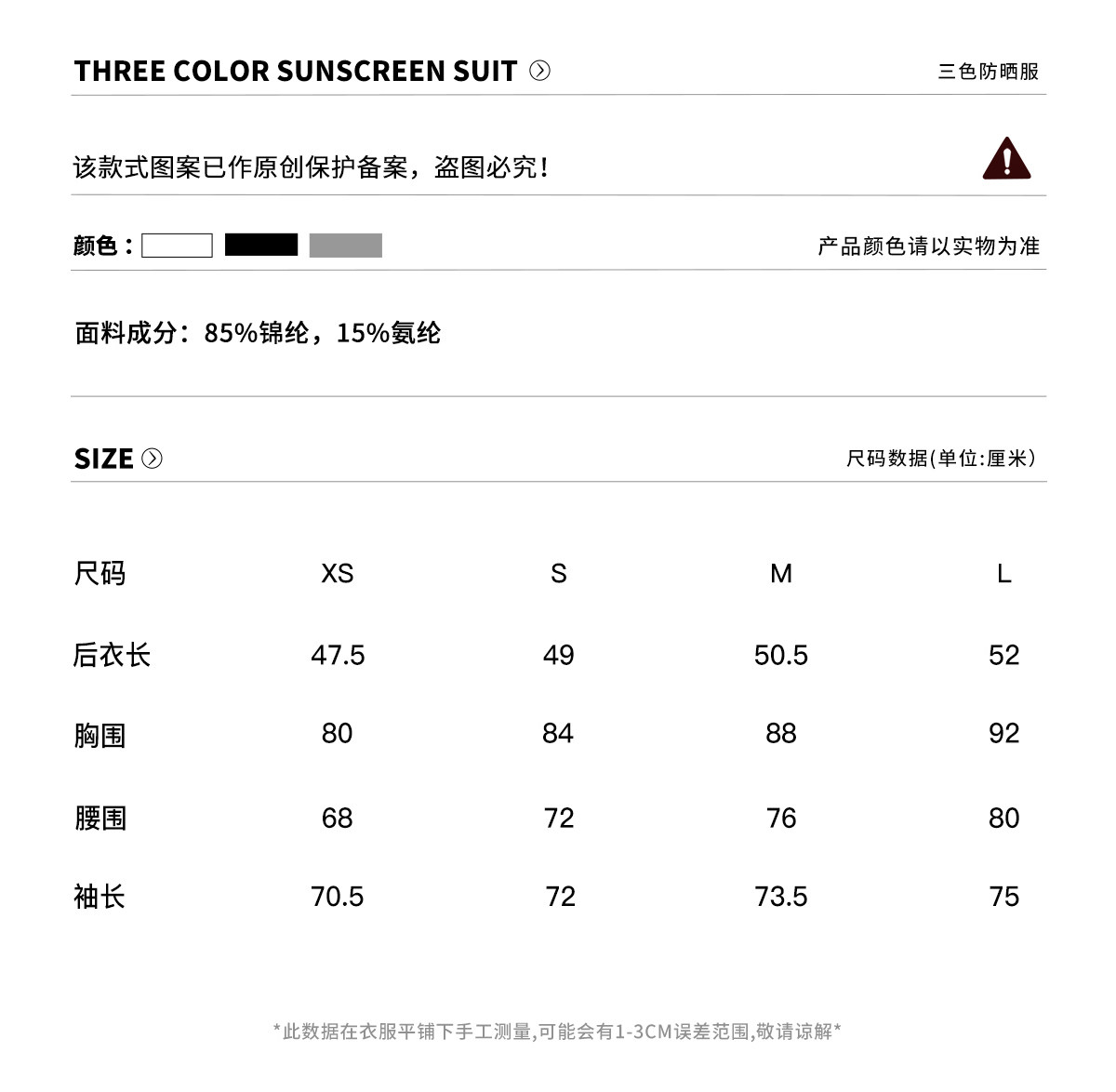 | UPF值 | UPF50+ |