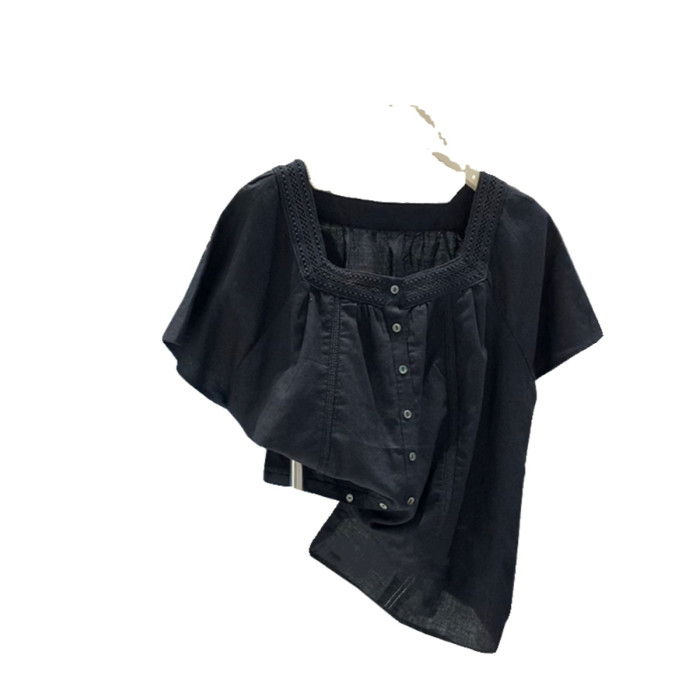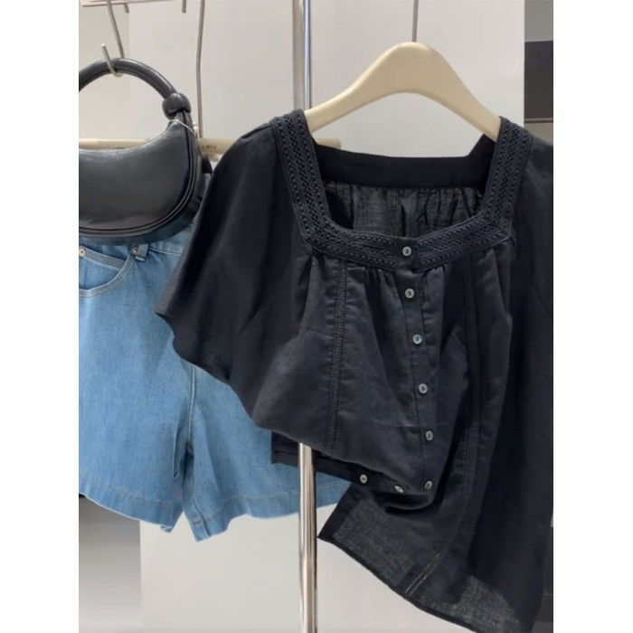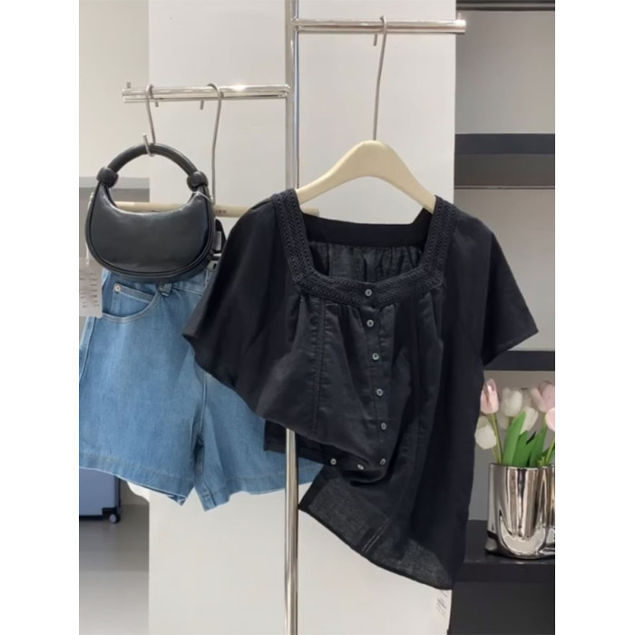 牛X貨 巨炸裂!輕奢時尚方領短袖襯衫女2024夏季新款洋氣別致上衣
