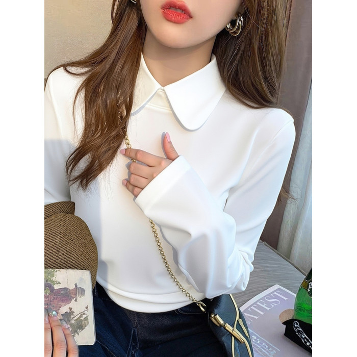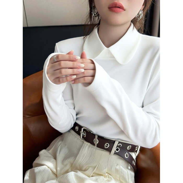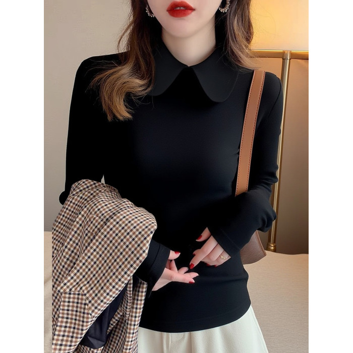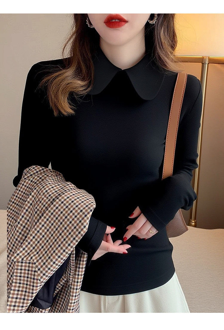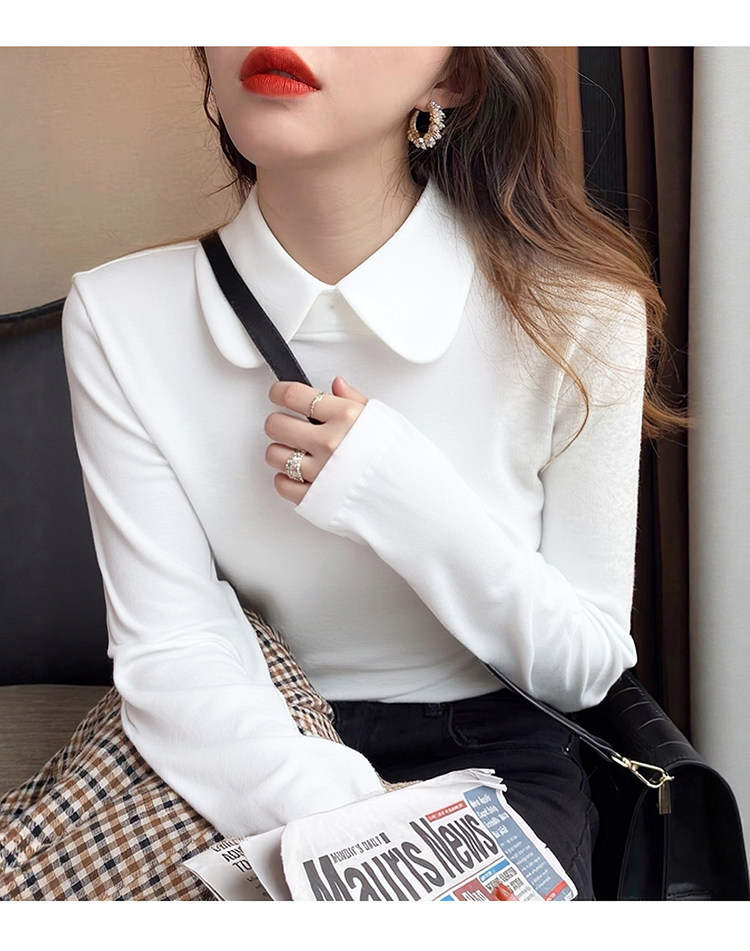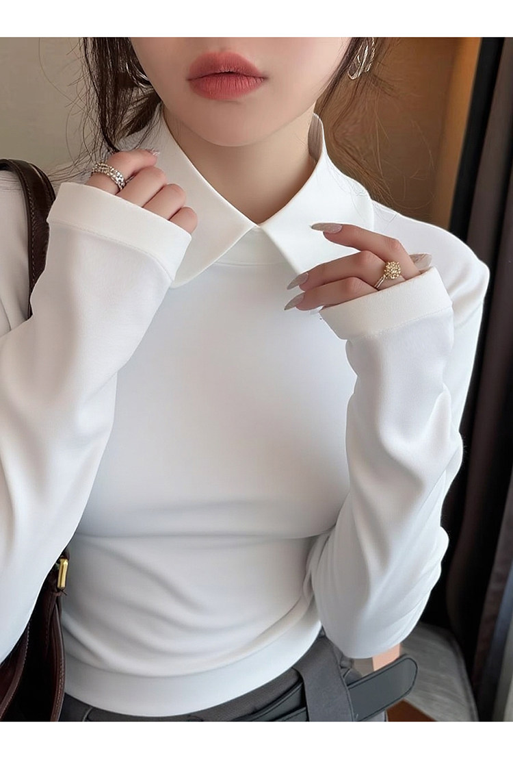 加厚襯衫弧形領淑女雙面德絨打底衫磨毛加厚T恤內搭曡穿繙領襯衣
