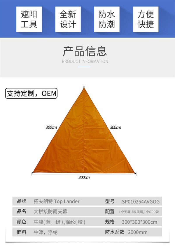 | 貨號 | 防雨三角天幕 |