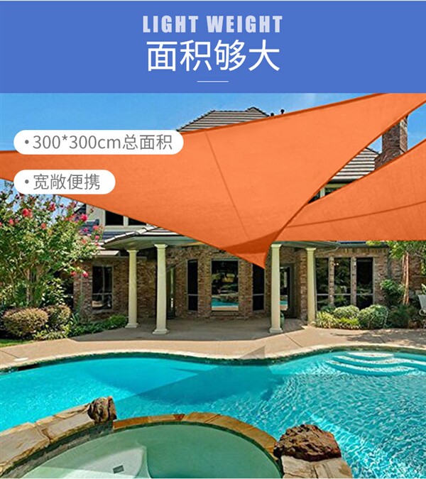 三角3米塗銀隔熱天幕布 戶外防曬可攜式野營帳篷防雨水遊泳池遮陽篷