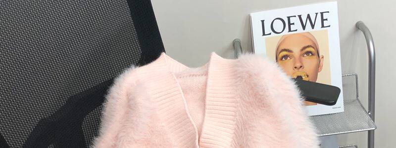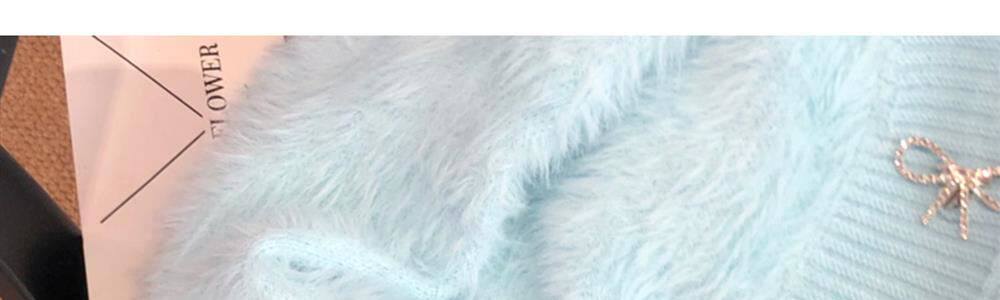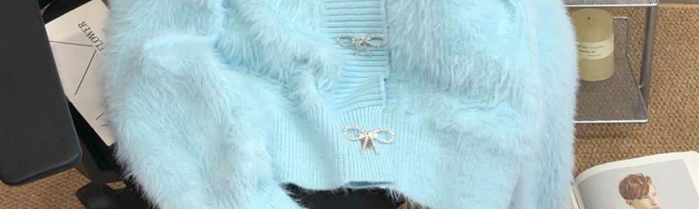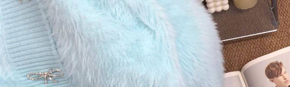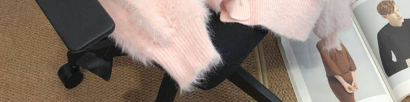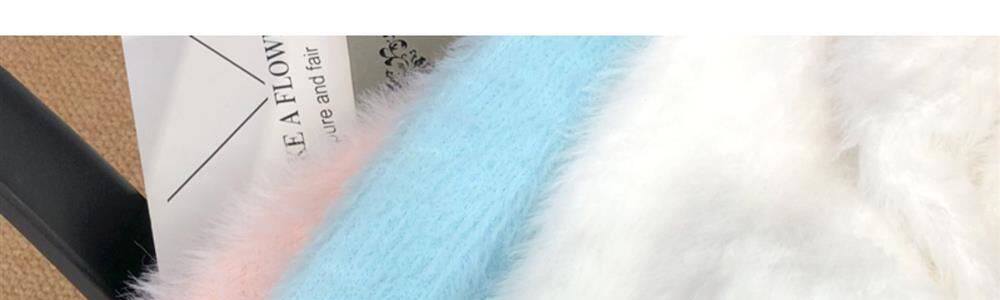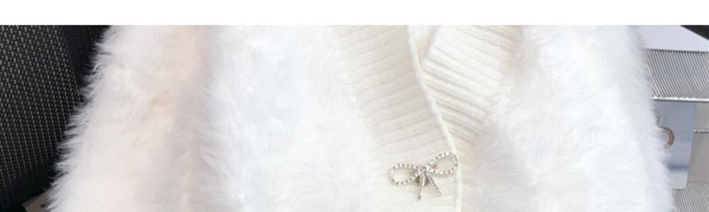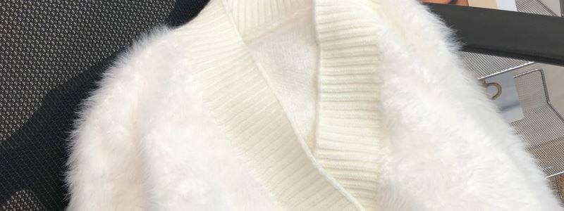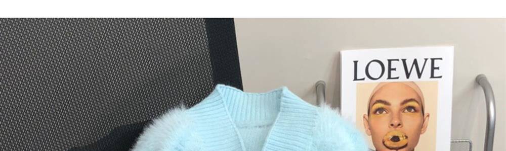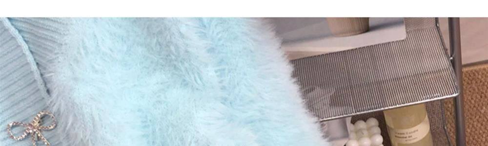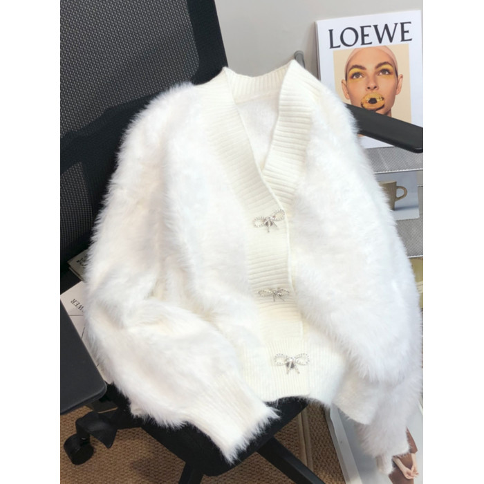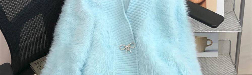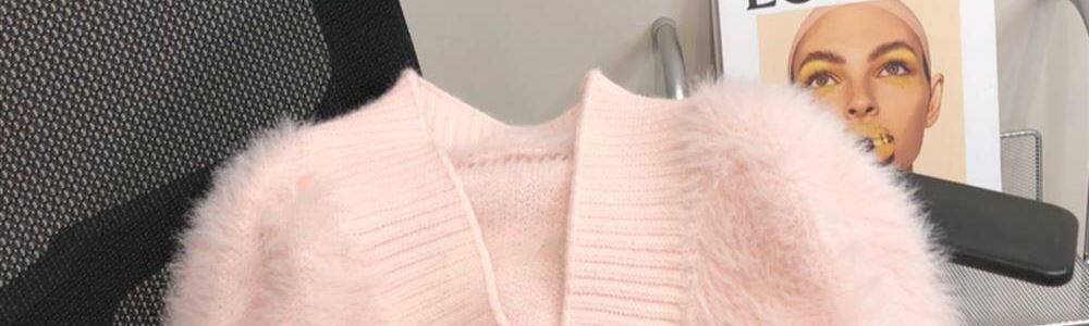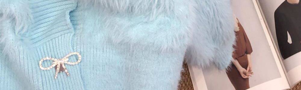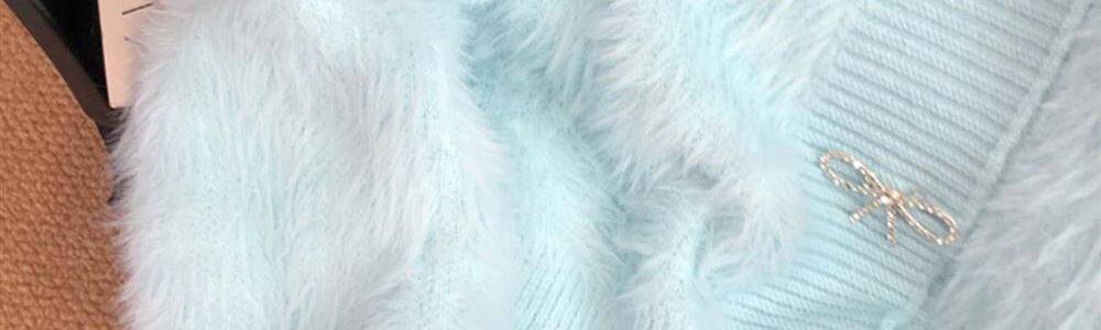 專櫃撤廻剪標粉色仿貂絨V領針織開衫女秋冬新款寬鬆軟糯毛衣外套