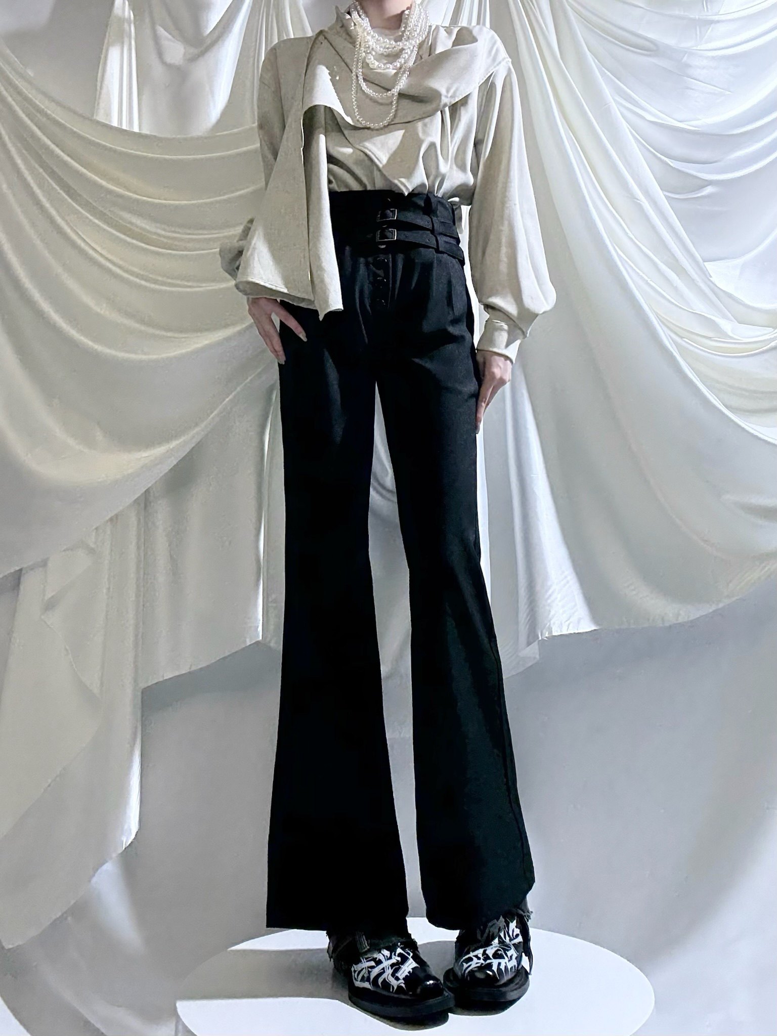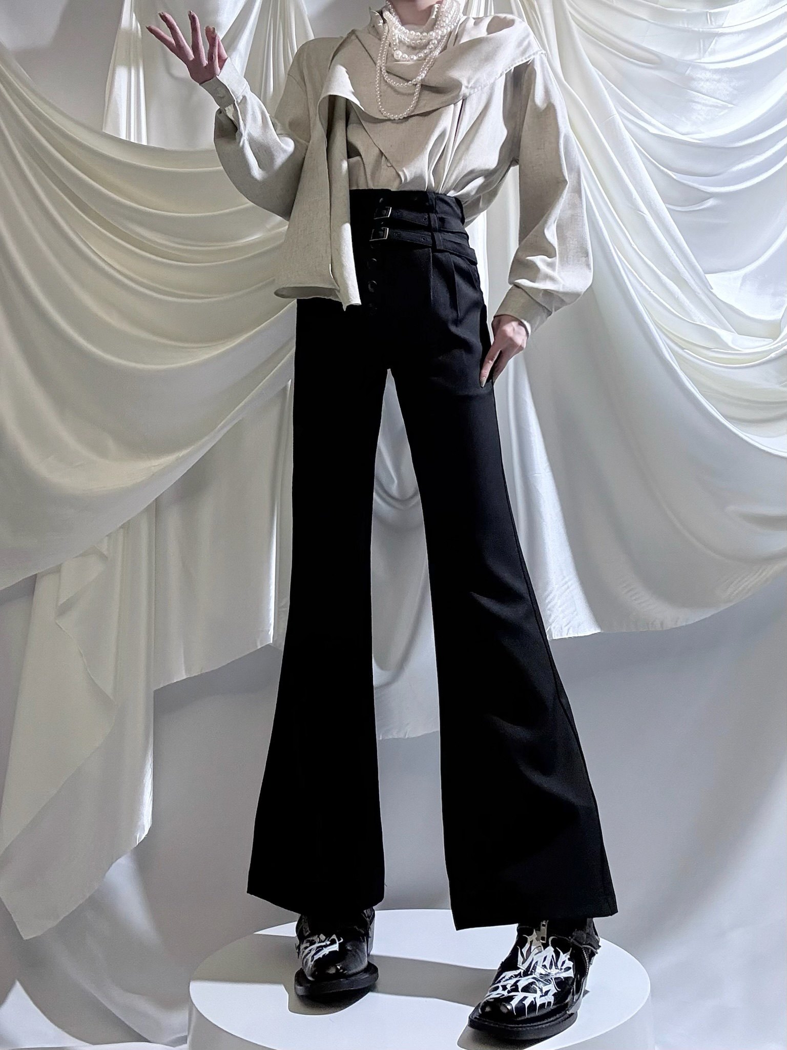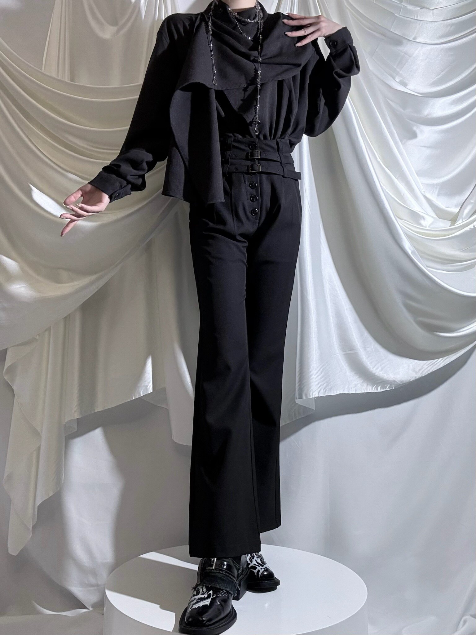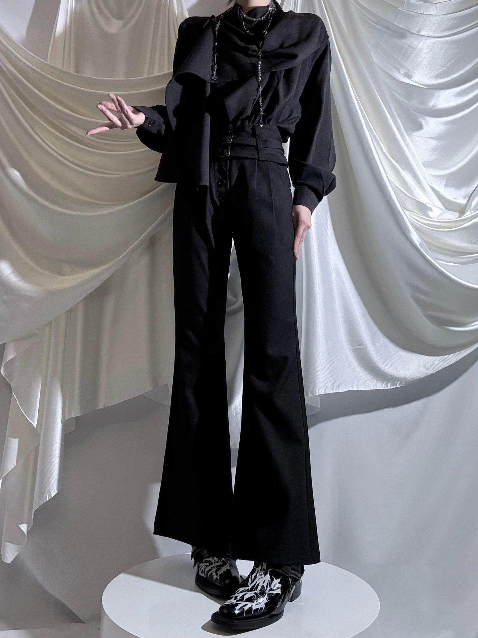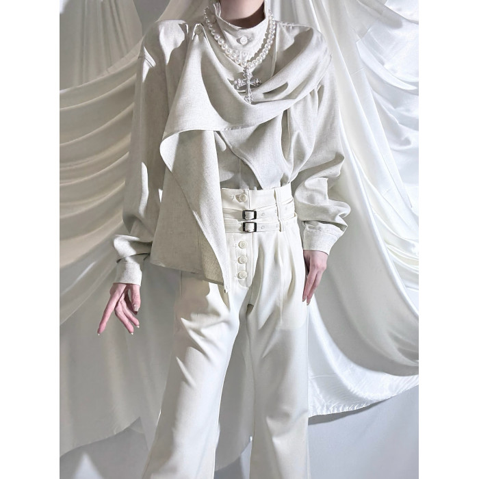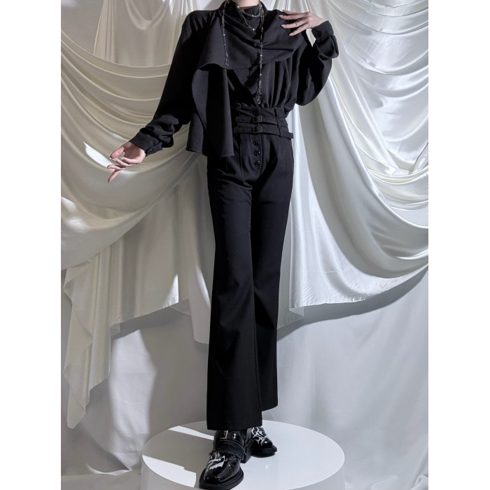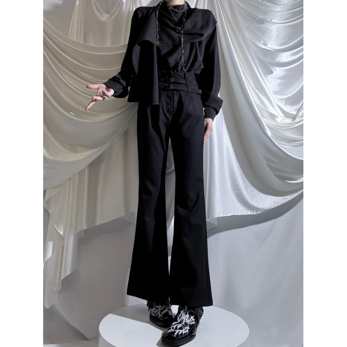 Aont【秋冬加絨版】雙生子套裝原創設計感襯衫高級感雙腰帶騎士褲